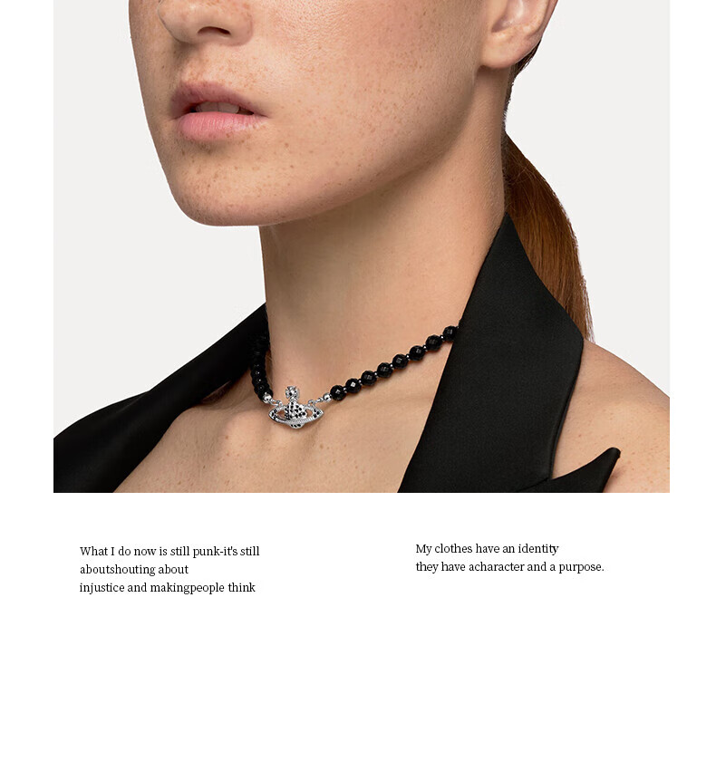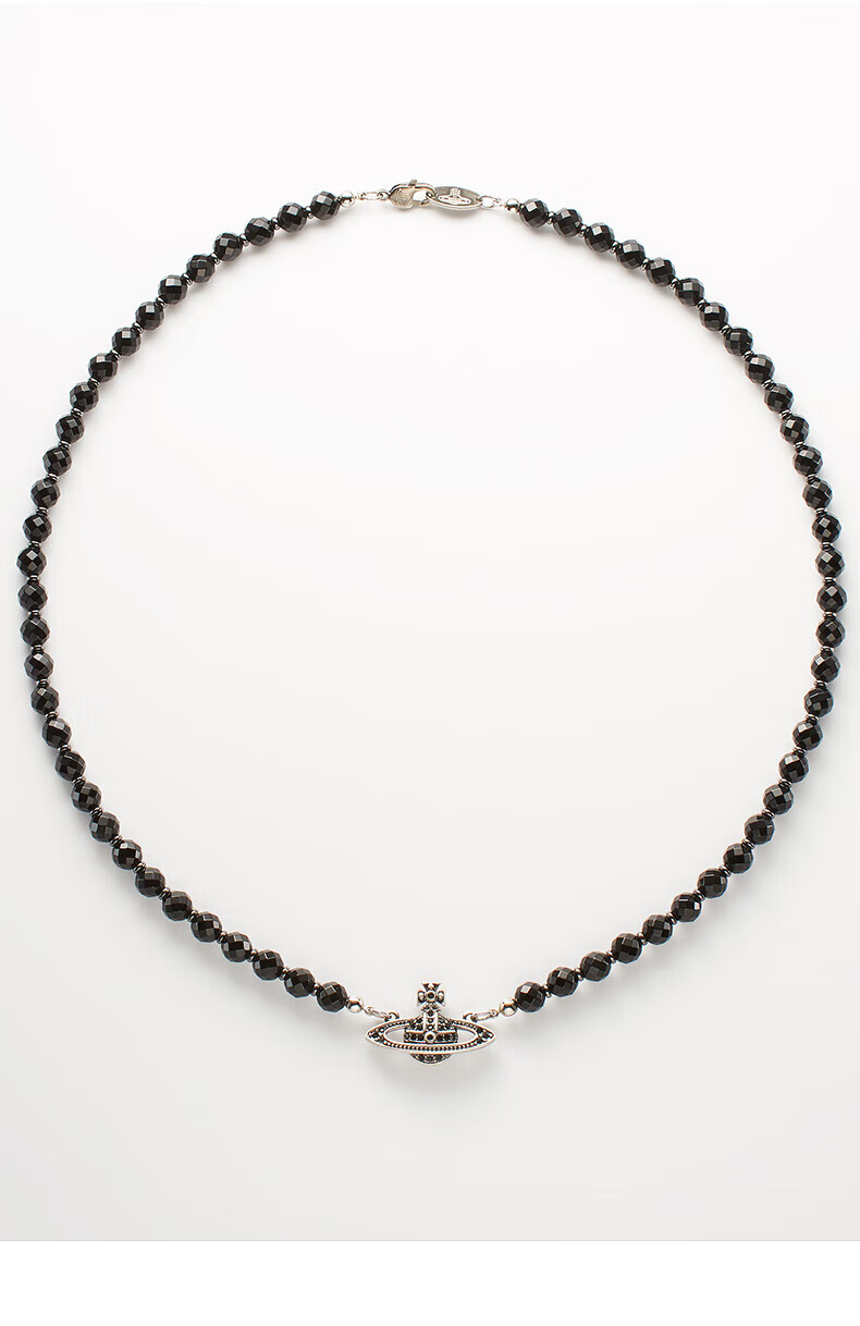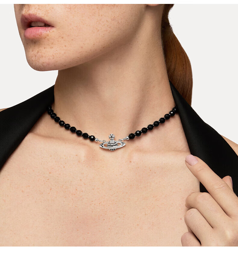 Vivienne Westwood Queen Mother Black Agate Single Layer Necklace Black Necklace for Girlfriend Birthday Gift Genuine Women