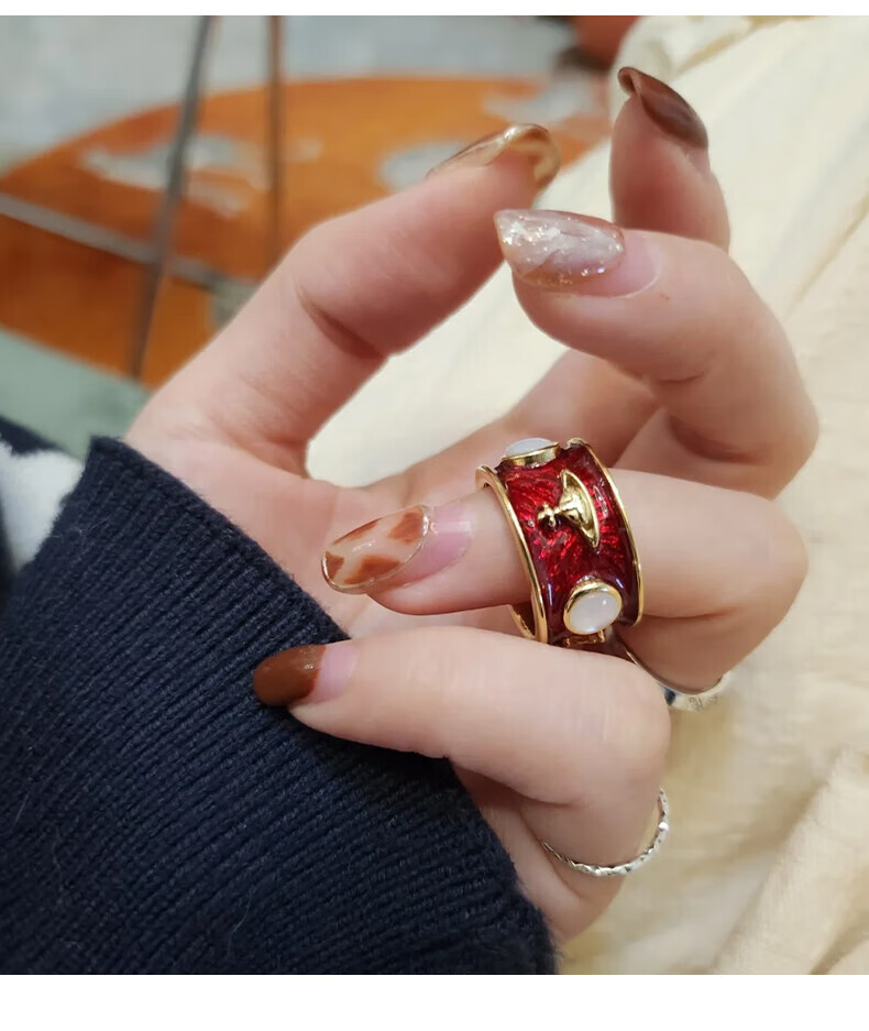 Vivienne Westwood Queen Mother West Authentic Wide Version Saturn Ring Queen Mother King Ring Red S