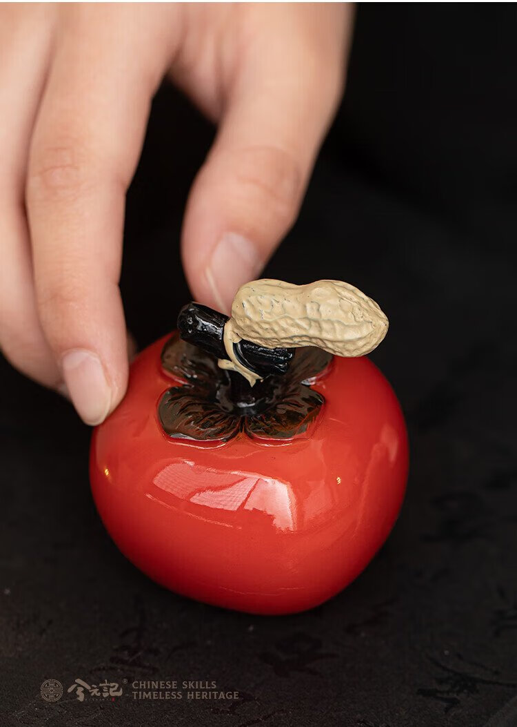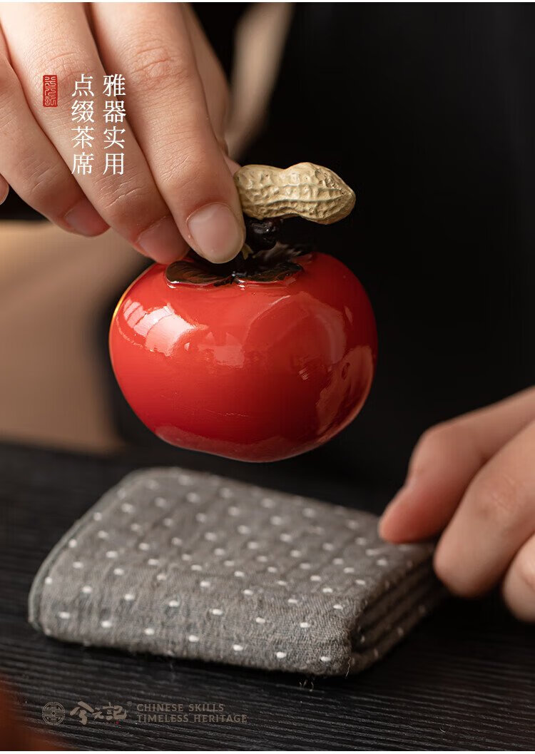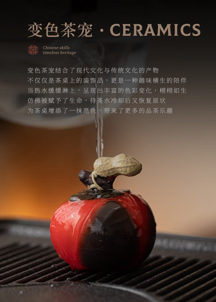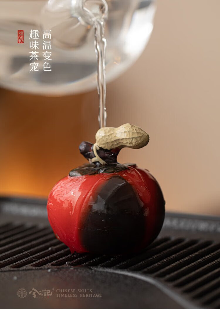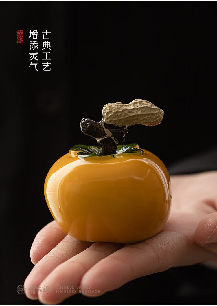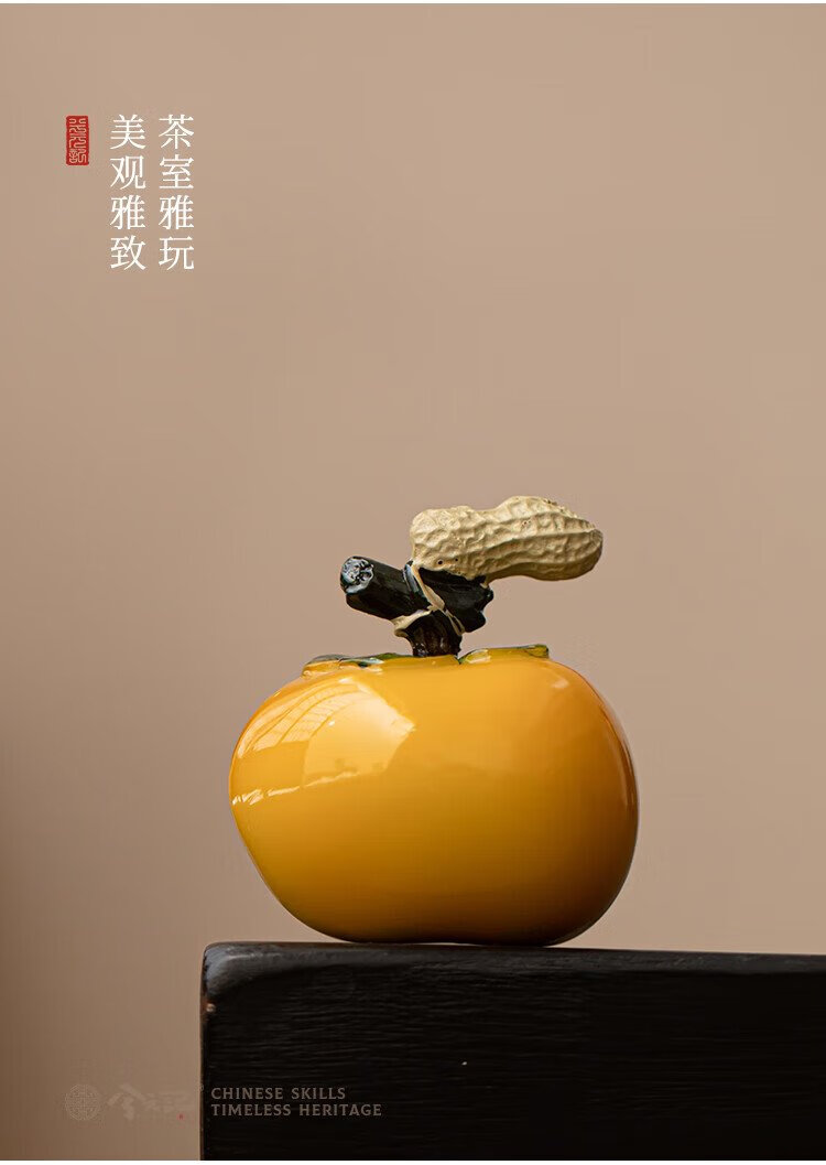 Xiyuanji Good Things Happen Peanut Persimmon Tea Pet Can Raise Color-Changing High-end Tea Toy Ornament Boutique Simulation Fruit Tea Ceremony Tea Set Good Things Happen Tea Pet (Black Model)