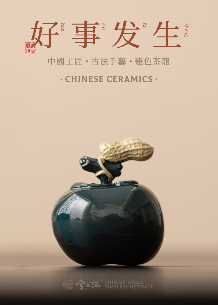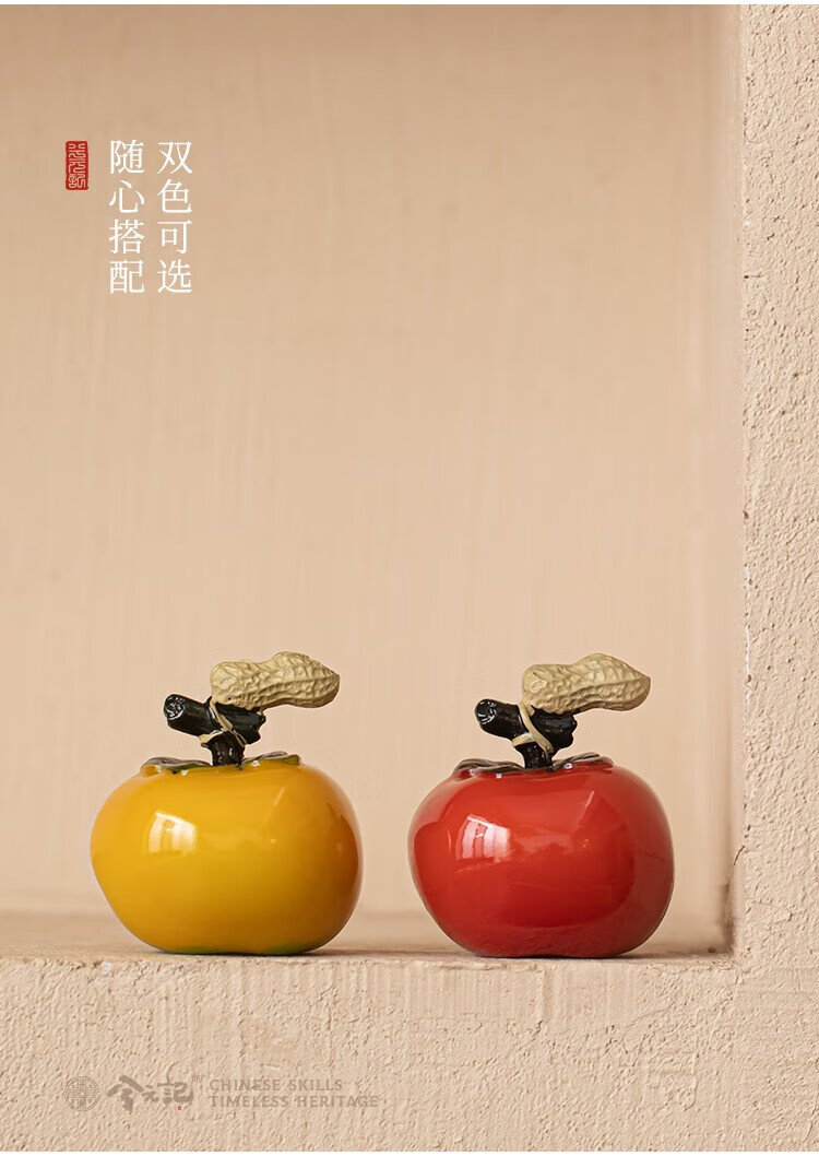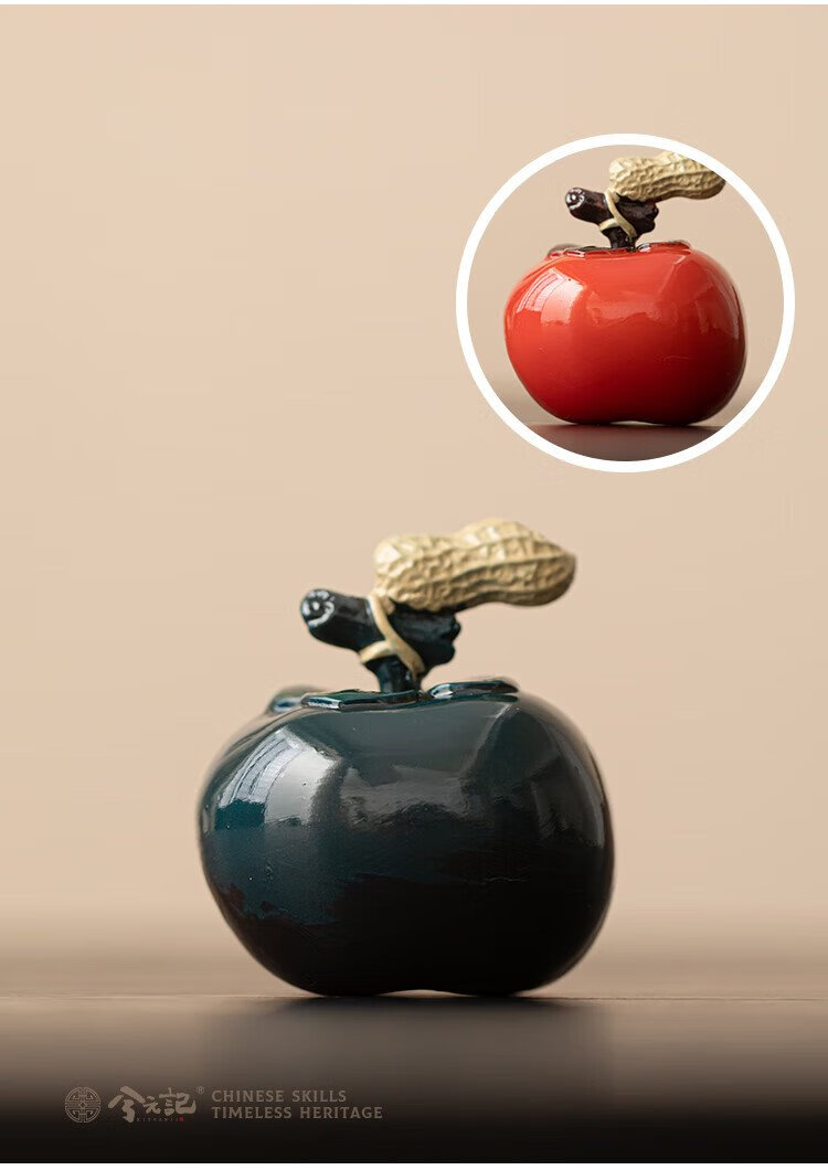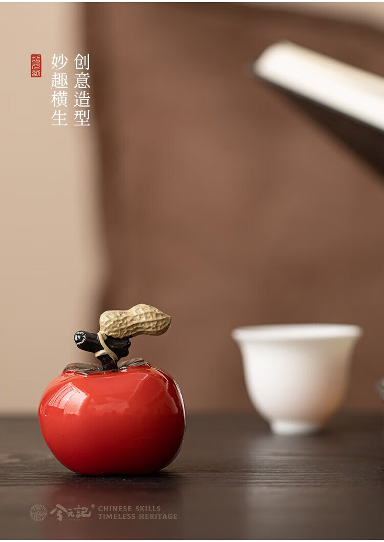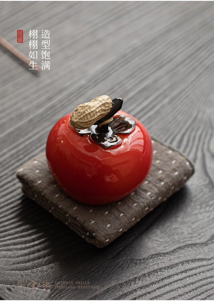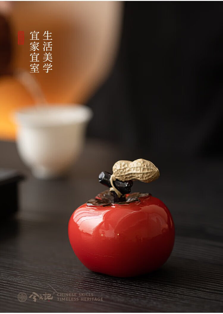 Xiyuanji Good Things Happen Peanut Persimmon Tea Pet Can Raise Color-Changing High-end Tea Toy Ornament Boutique Simulation Fruit Tea Ceremony Tea Set Good Things Happen Tea Pet (Black Model)