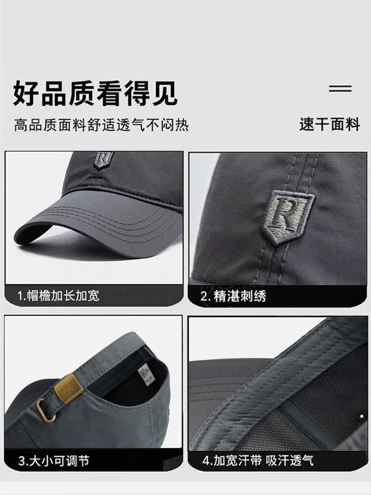 Muchiston Hat Men's Summer Thin Quick-Drying Peaked Cap Outdoor Sun Protection Travel Sun Hat Leisure Fishing Sunshade Baseball Cap Women's Quick-Drying R Baseball Cap-Dark Gray One Size 57-62cm