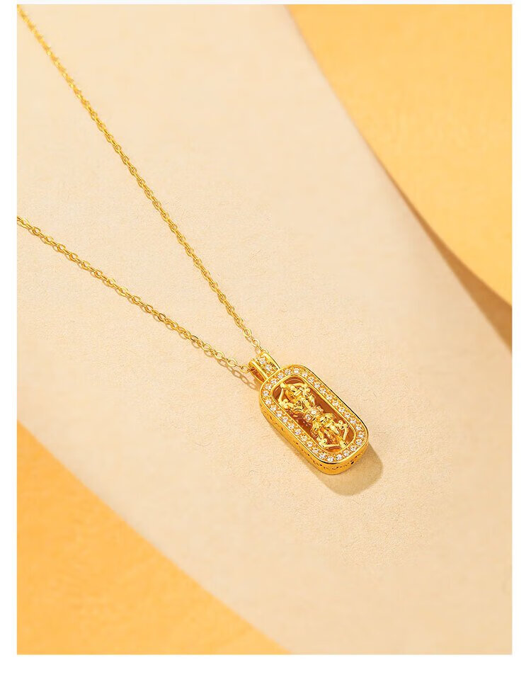 Saphire 18K gold pendant for women, glittering Vajra pendant, Vajra pendant for birthday gift, pendant + 18K gold O-shaped chain + beloved rose gift box