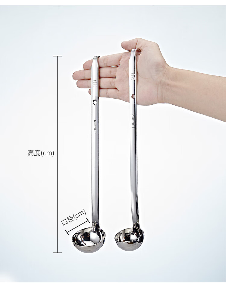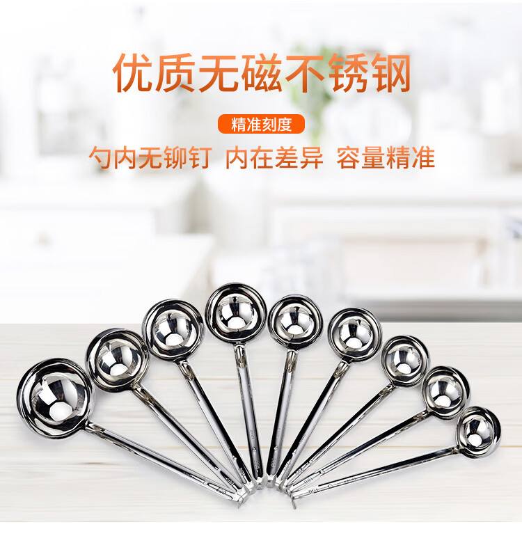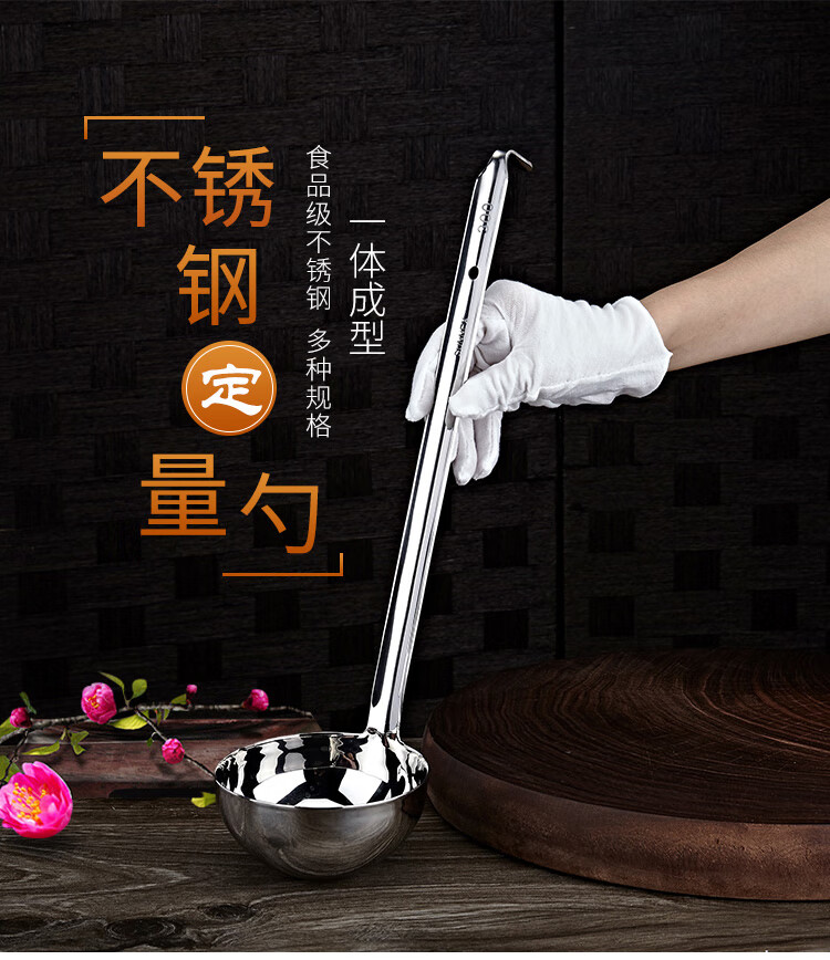 CLCEY commercial stainless steel long-handled measuring spoon grams and spoons sauce flour soup shell baking kitchen 1020g ml set 10g/ml 304 stainless steel one-piece molding