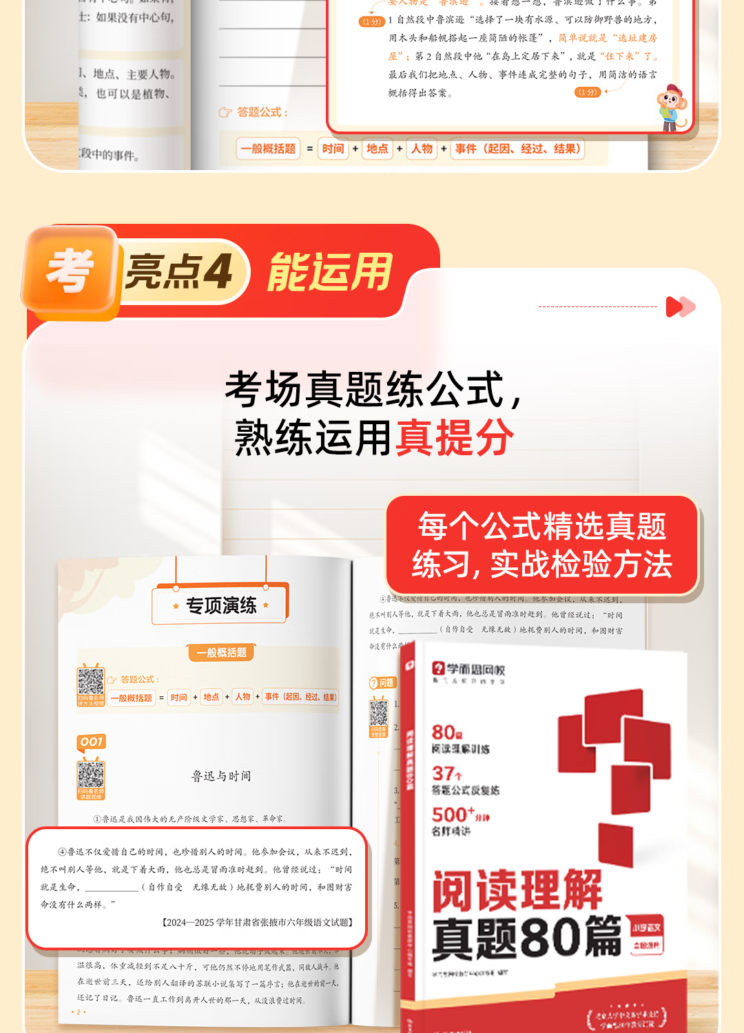 Das Leseverständnis der Xueersi-Grundschule umfasst 80 Formeln und echte Fragen. Ein vollständiges Leseverständnisbuch mit 100 Fragen. Besondere Verbesserung des Leseverständnisses. Lese- und Antwortmethoden für Chinesischtests in der Grundschule. Universelle Antwortformel zum Leseverständnis. Videovortrag eines berühmten Lehrers – WXA, zwei Bände. Das Leseverständnis besteht aus Formeln + 80 echten Fragen.