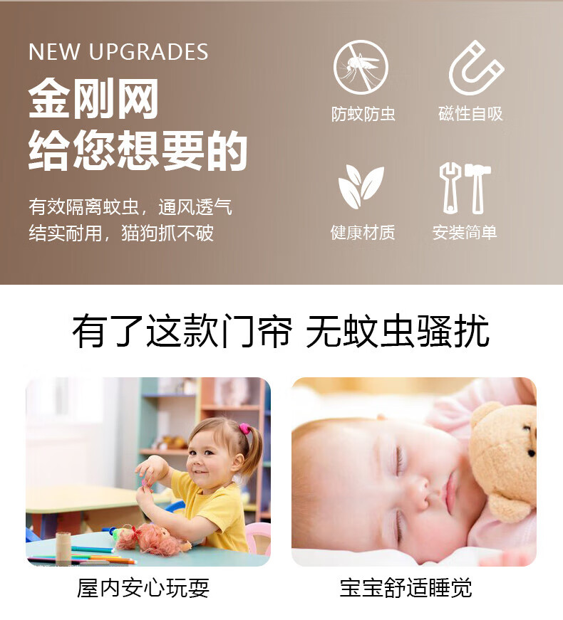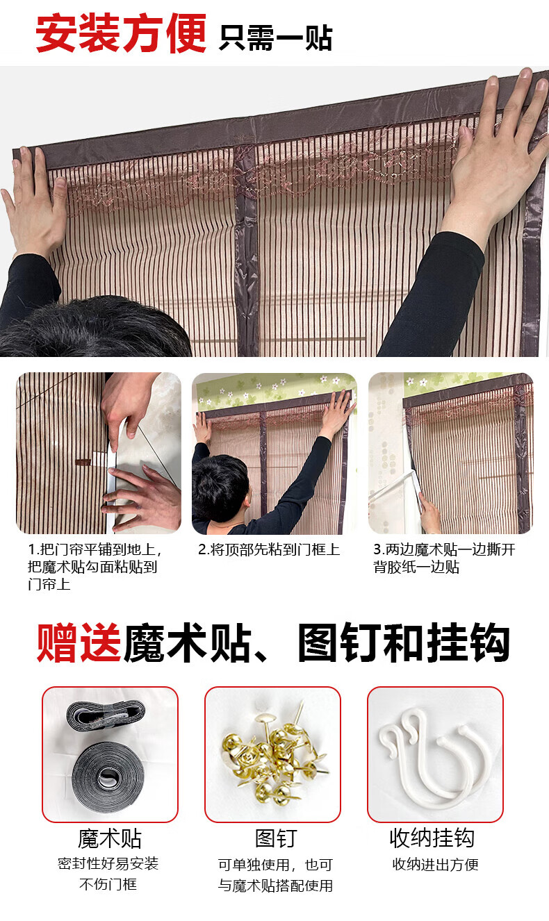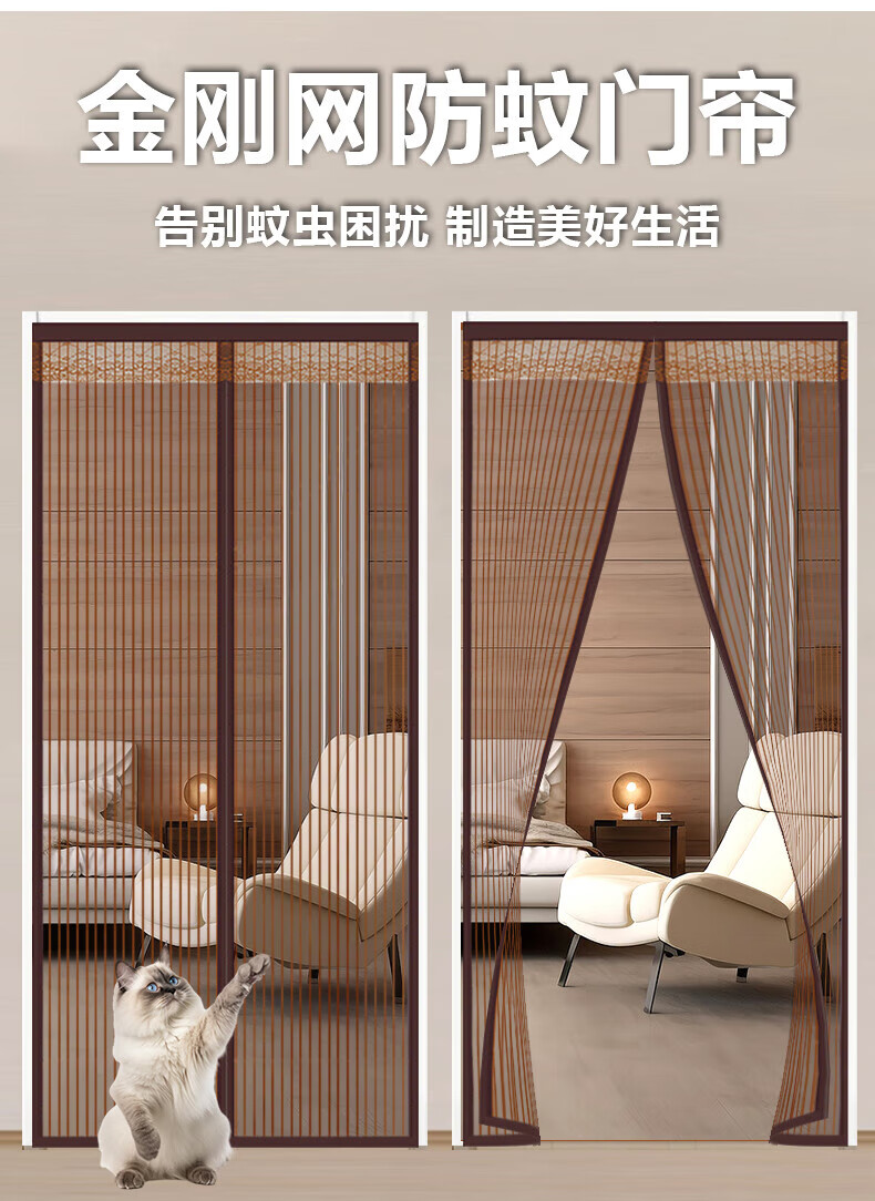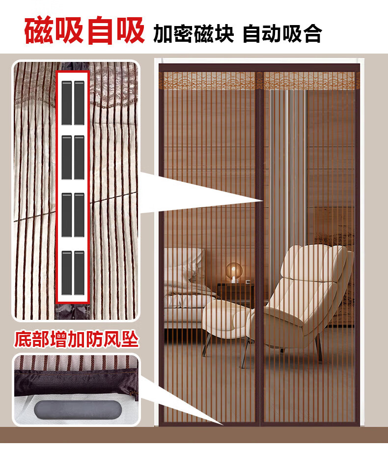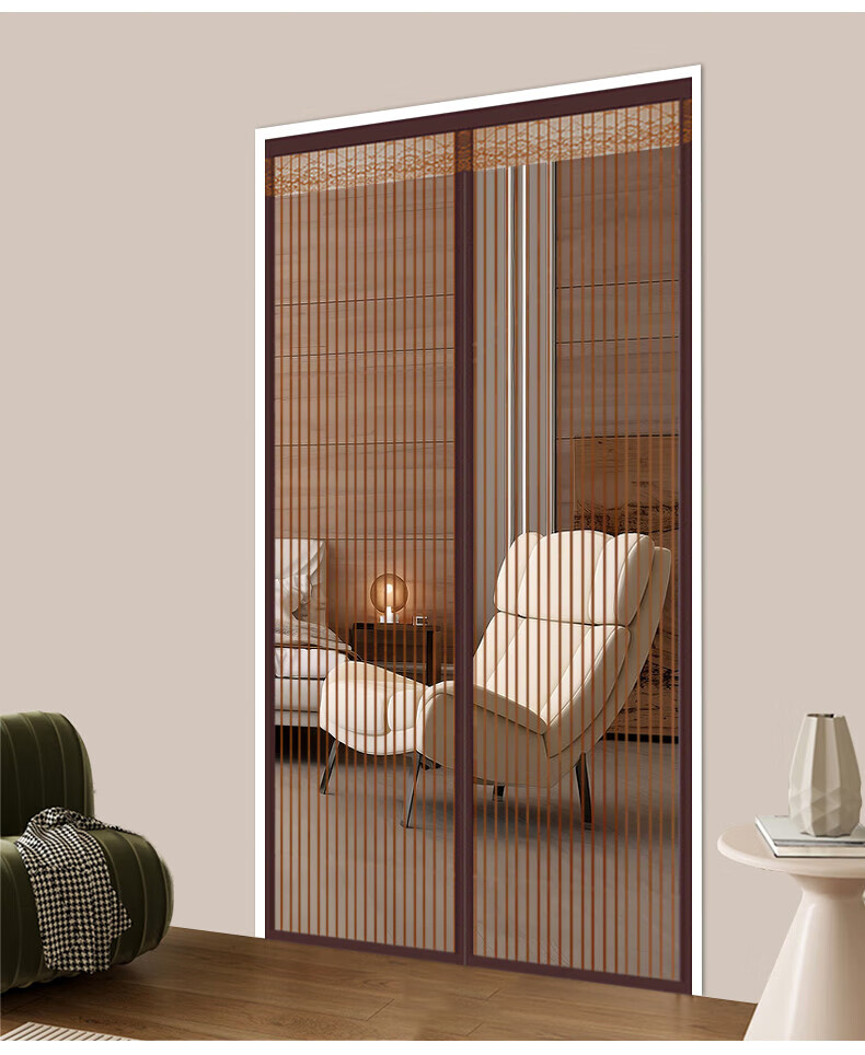 HAOFANJIE anti-mosquito door curtain magnetic door curtain screen door curtain invisible door sand curtain anti-mosquito net entry door screen window net self-installed screen curtain 90*210cm King Kong mesh striped coffee color