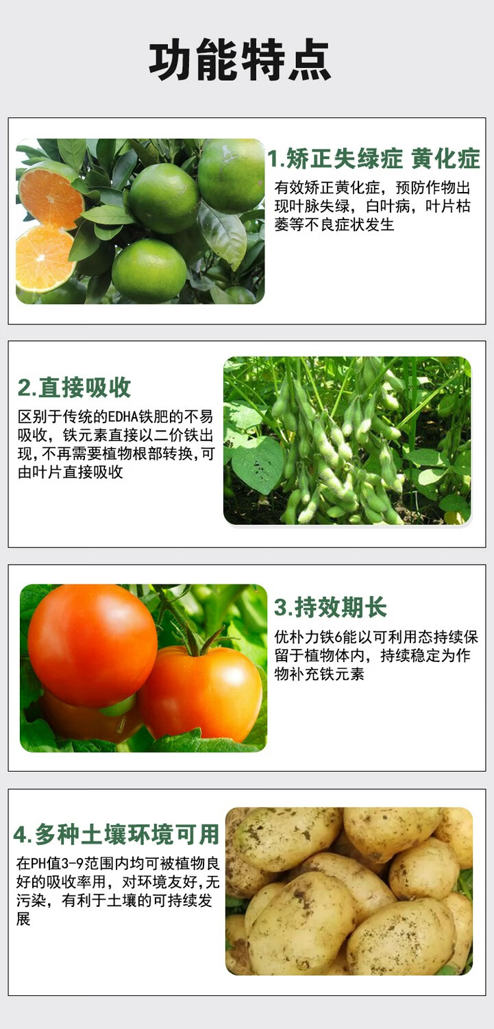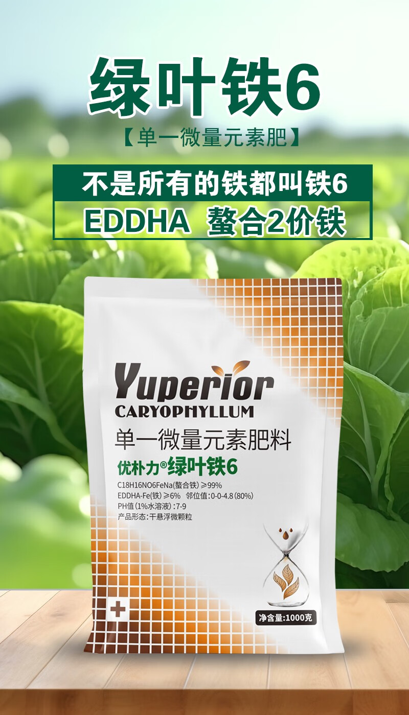 EDDHA-FE6 Fertilizante con hierro quelado Fertilizante foliar Árboles frutales y hortalizas Amarillamiento de los cítricos Hojas amarillas Enfermedad de las hojas blancas Suplemento de hierro Fertilizante soluble en agua EDDHA-Hierro quelado Caja completa 24 Jin Jin equivalente a 0,5 kg