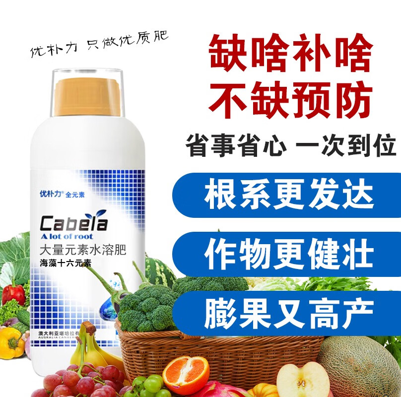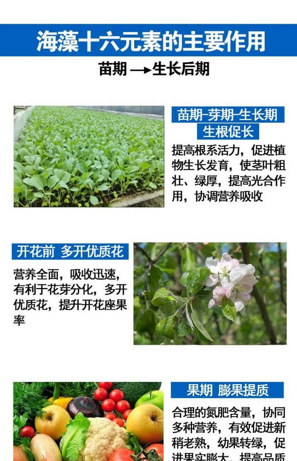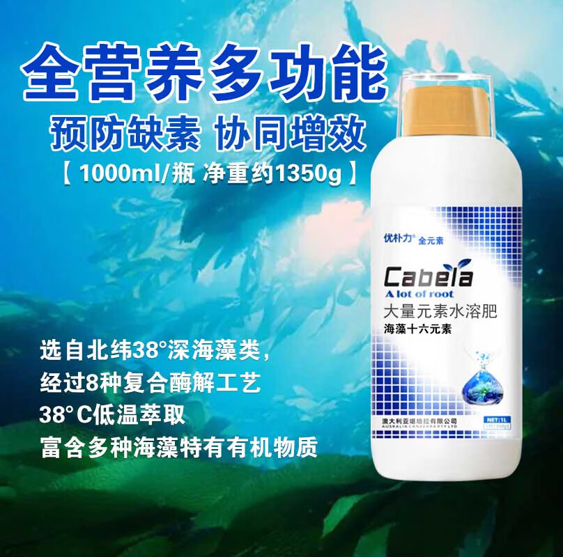 Seaweed sixteen-element foliar fertilizer for fruit trees, vegetables and flowers to take root, strengthen seedlings and expand fruit, nitrogen, phosphorus, potassium, boron, zinc, iron, water-soluble fertilizer, Australian brand 1350g*12 bottles