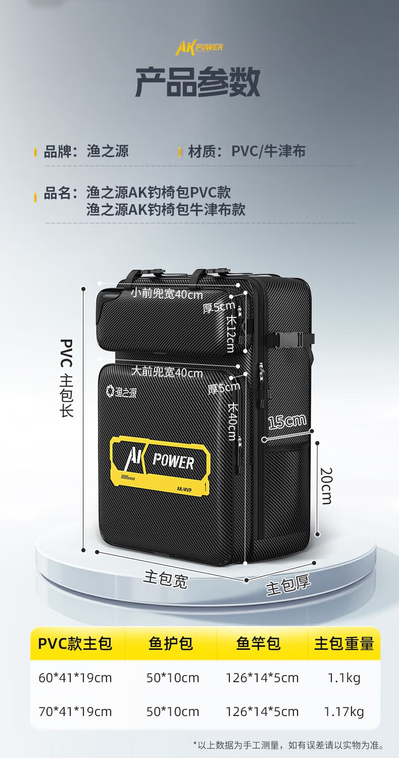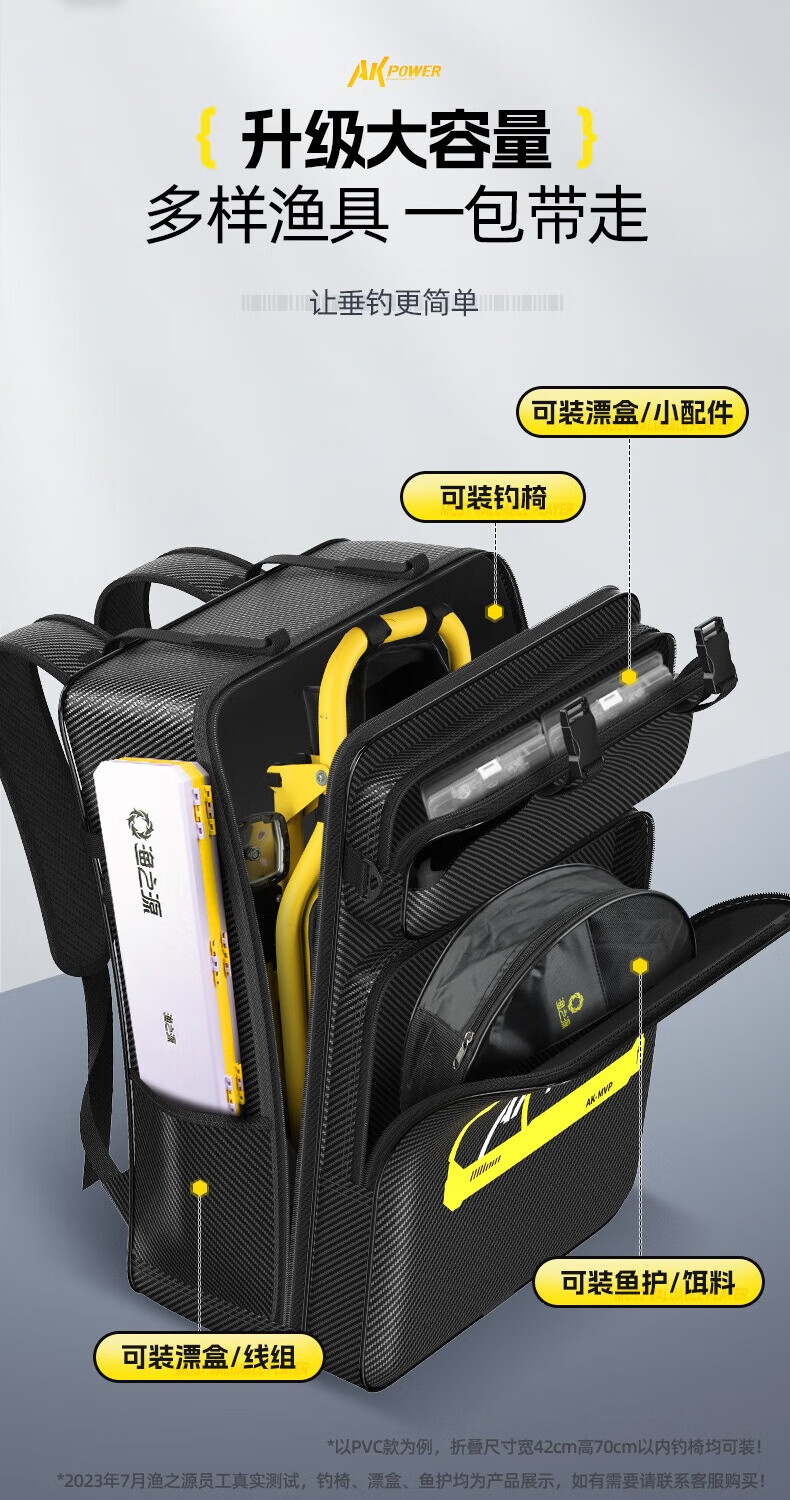 Fishing source fishing chair bag backpack fishing chair backpack fishing rod bag fishing storage bag fishing backpack fishing chair storage special bag nano 900D leather film khaki main bag 60cm three-piece set