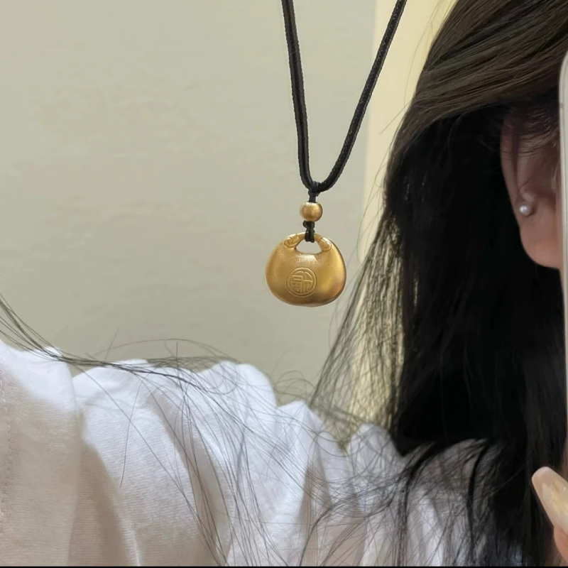 Bo Naling Little Fatty Pendant Necklace for Women New Chinese Fashion Light Luxury Niche Clavicle Chain High-end Necklace for Girlfriend Gift Little Fatty Pendant Necklace Black Rope