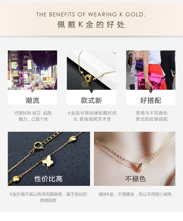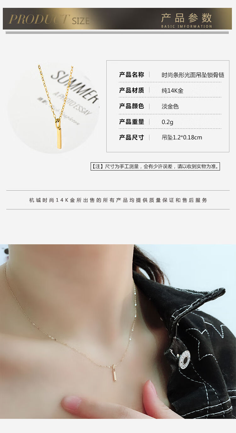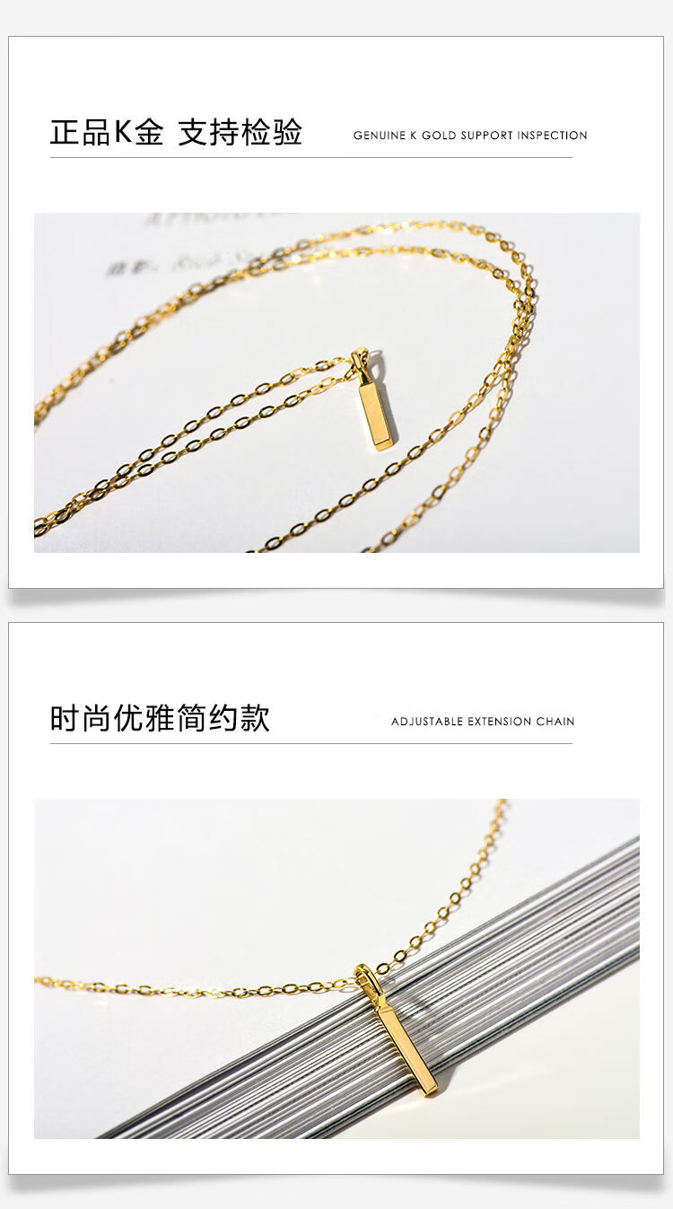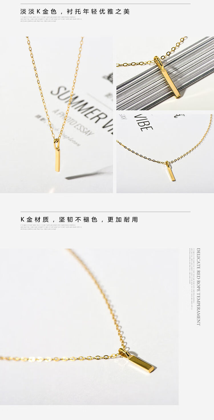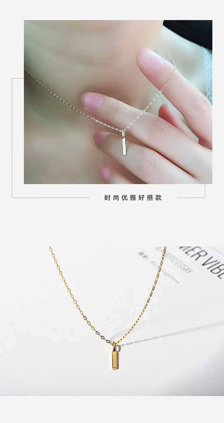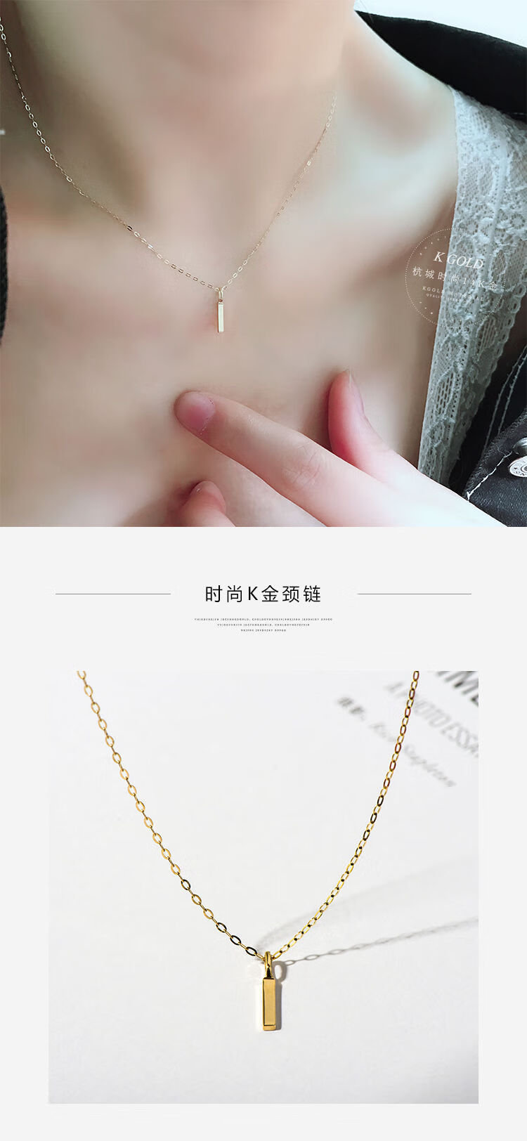 Shiyi high-end Korean popular Korean 14K gold necklace women's simple fashion strip glossy pendant clavicle chain set chain pendant