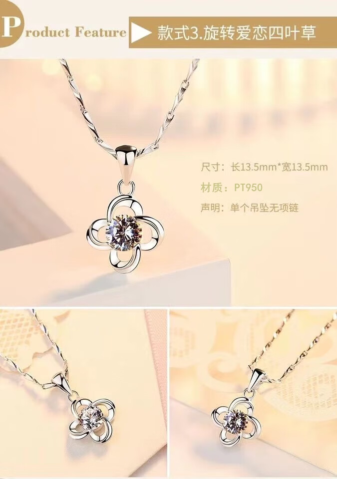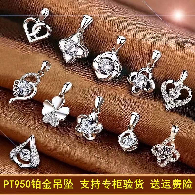 Shiyi single pendant Pt950 pure platinum, non-fading, non-allergenic, moissanite diamond 18k pure white gold single pendant without chain for children, masonry small waist