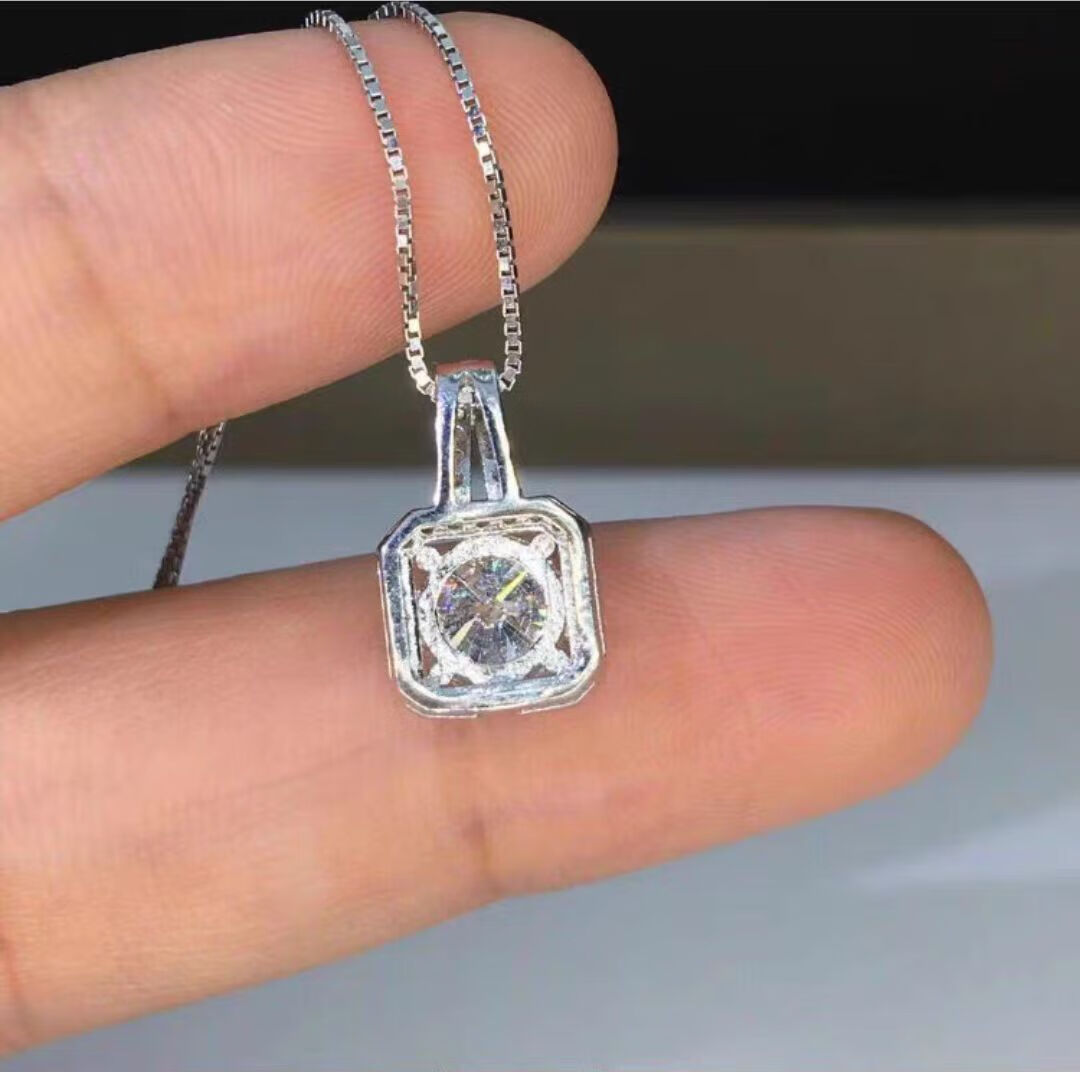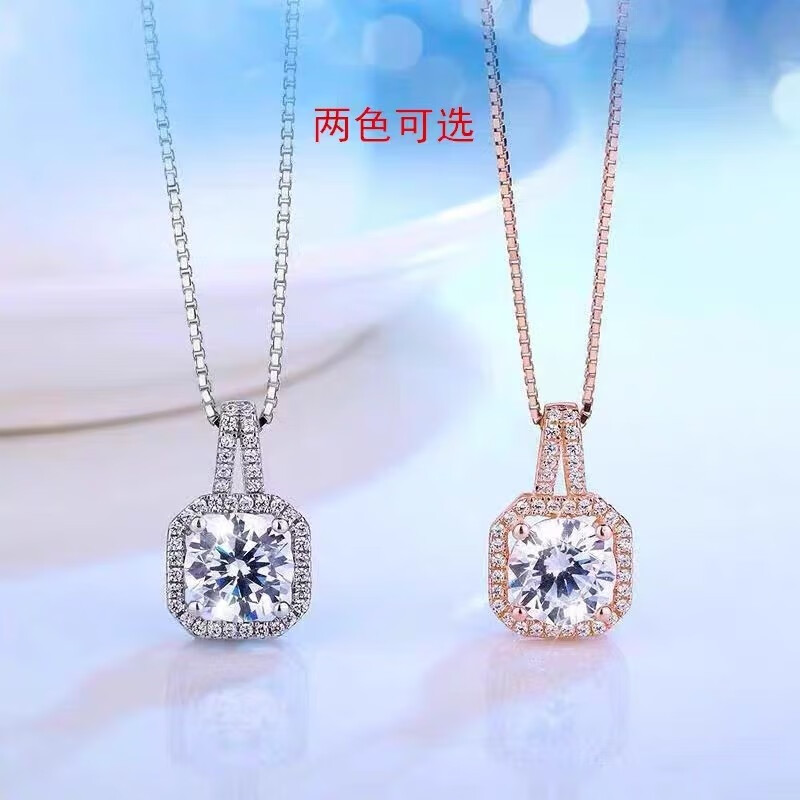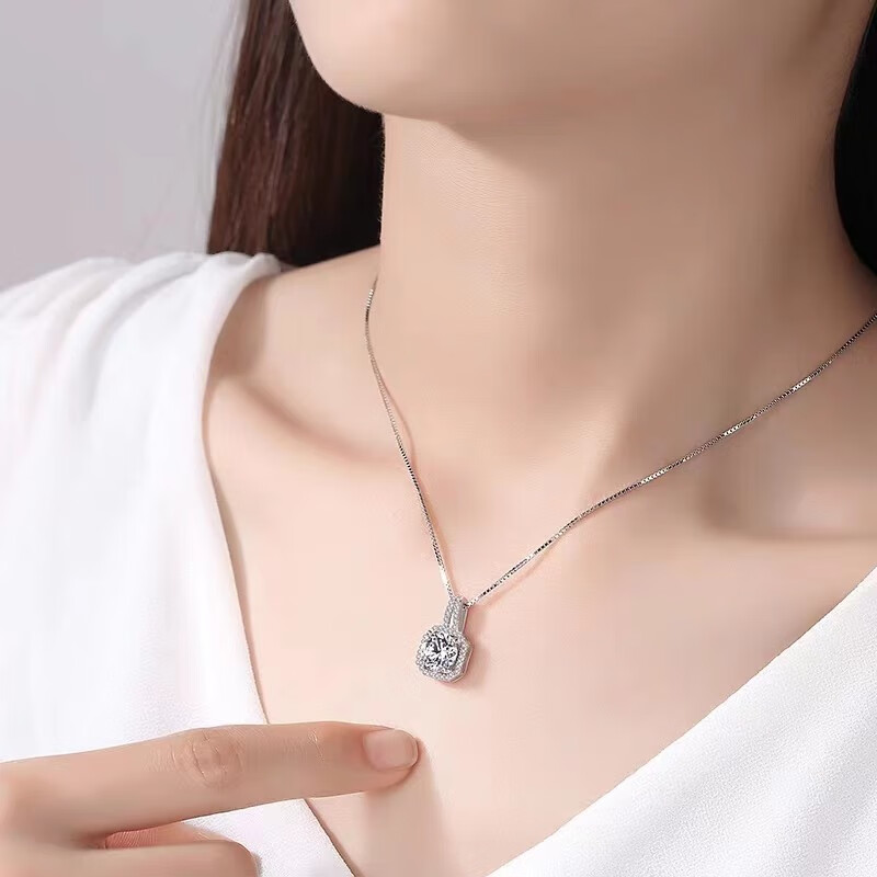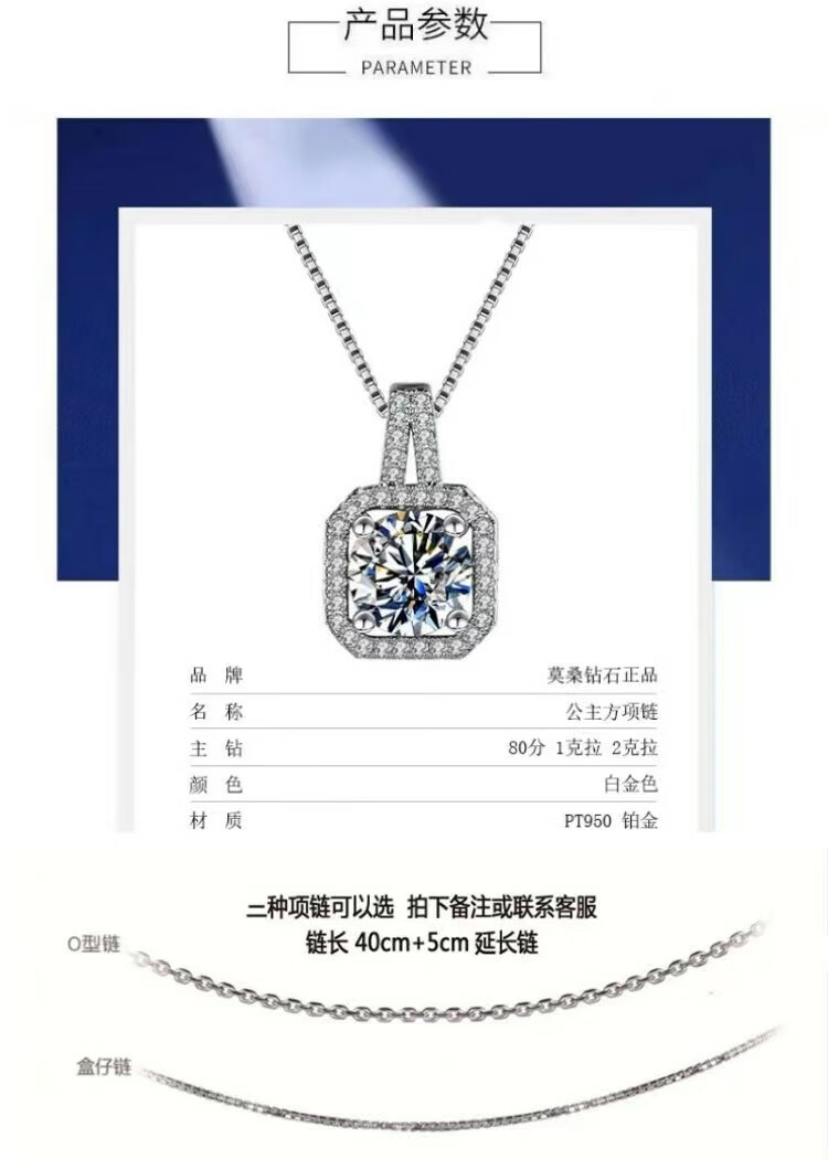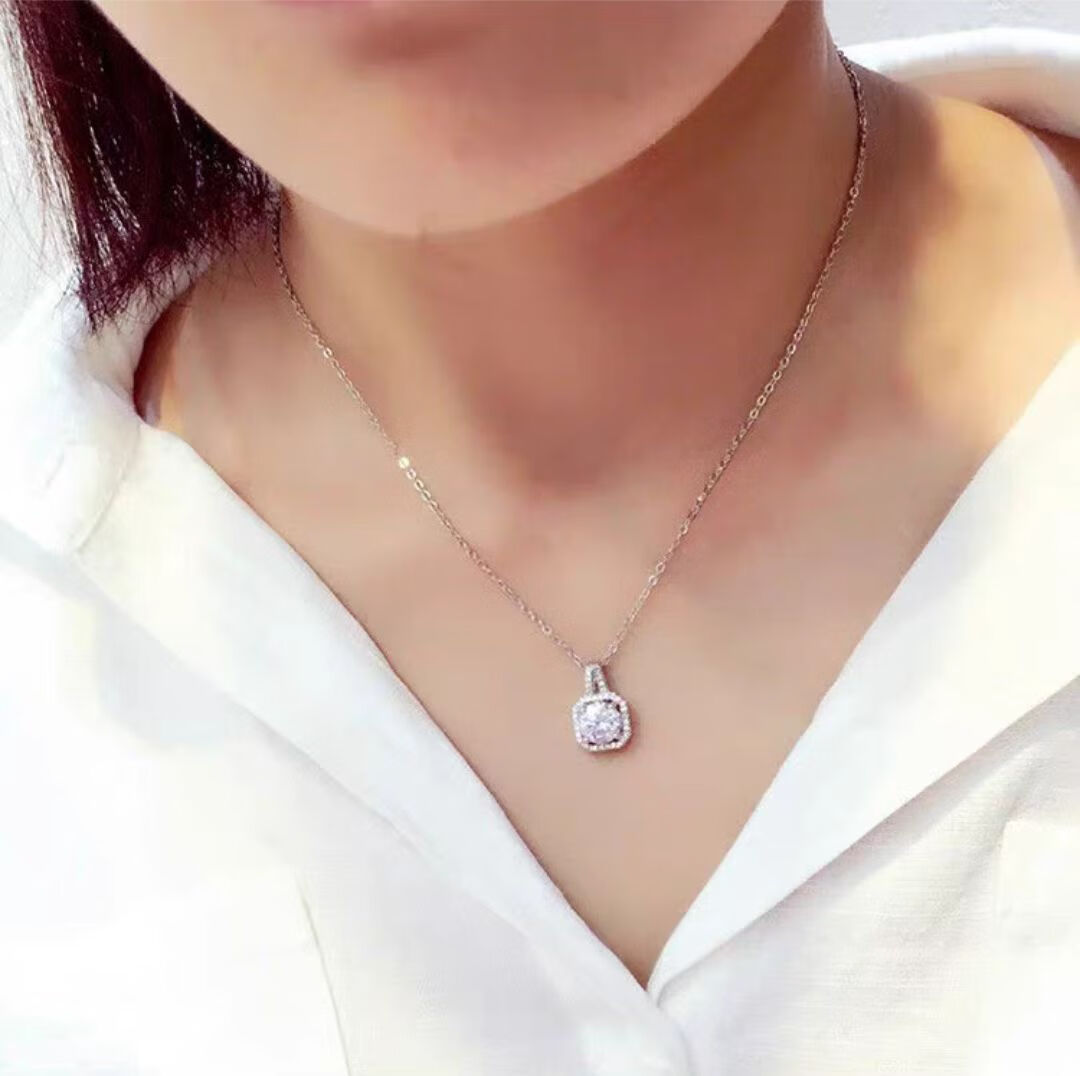 Shiyi PT950 pure platinum inlaid with moissanite imported from the United States, four-claw princess clavicle chain single pendant for women, trendy platinum square 80-cent single pendant