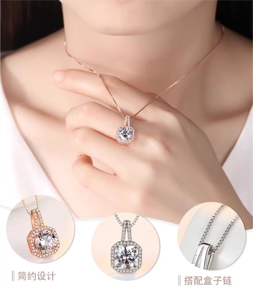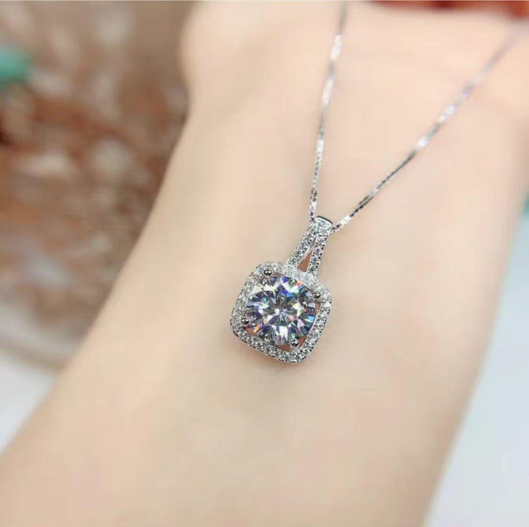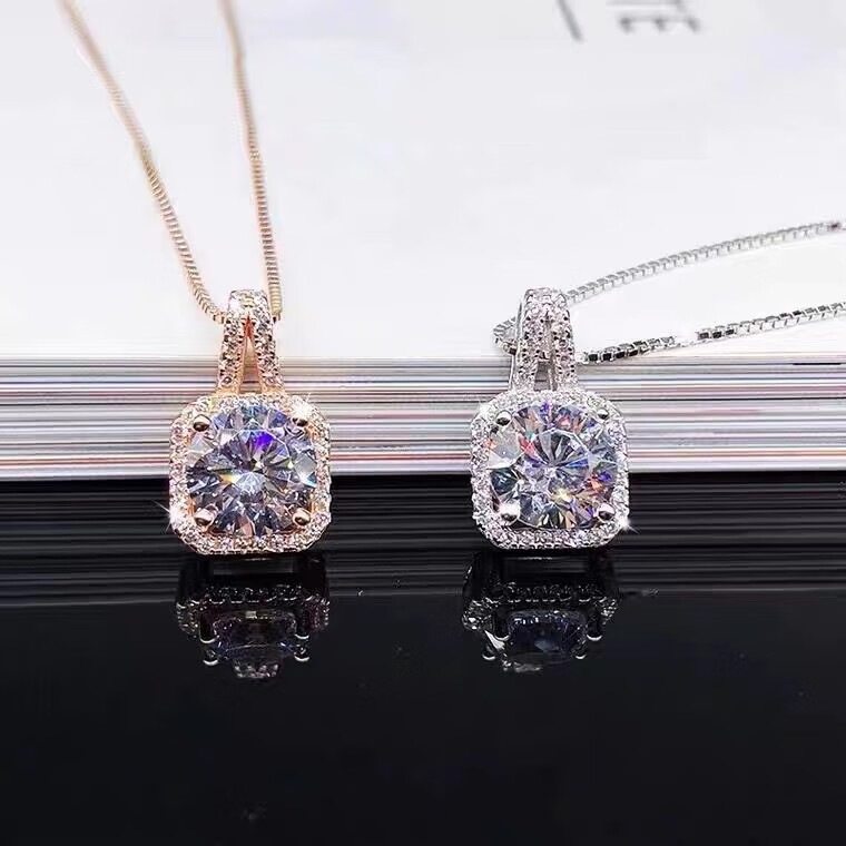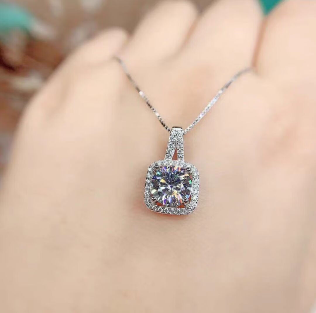 Shiyi PT950 pure platinum inlaid with moissanite imported from the United States, four-claw princess clavicle chain single pendant for women, trendy platinum square 80-cent single pendant