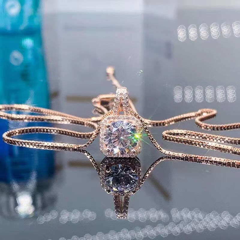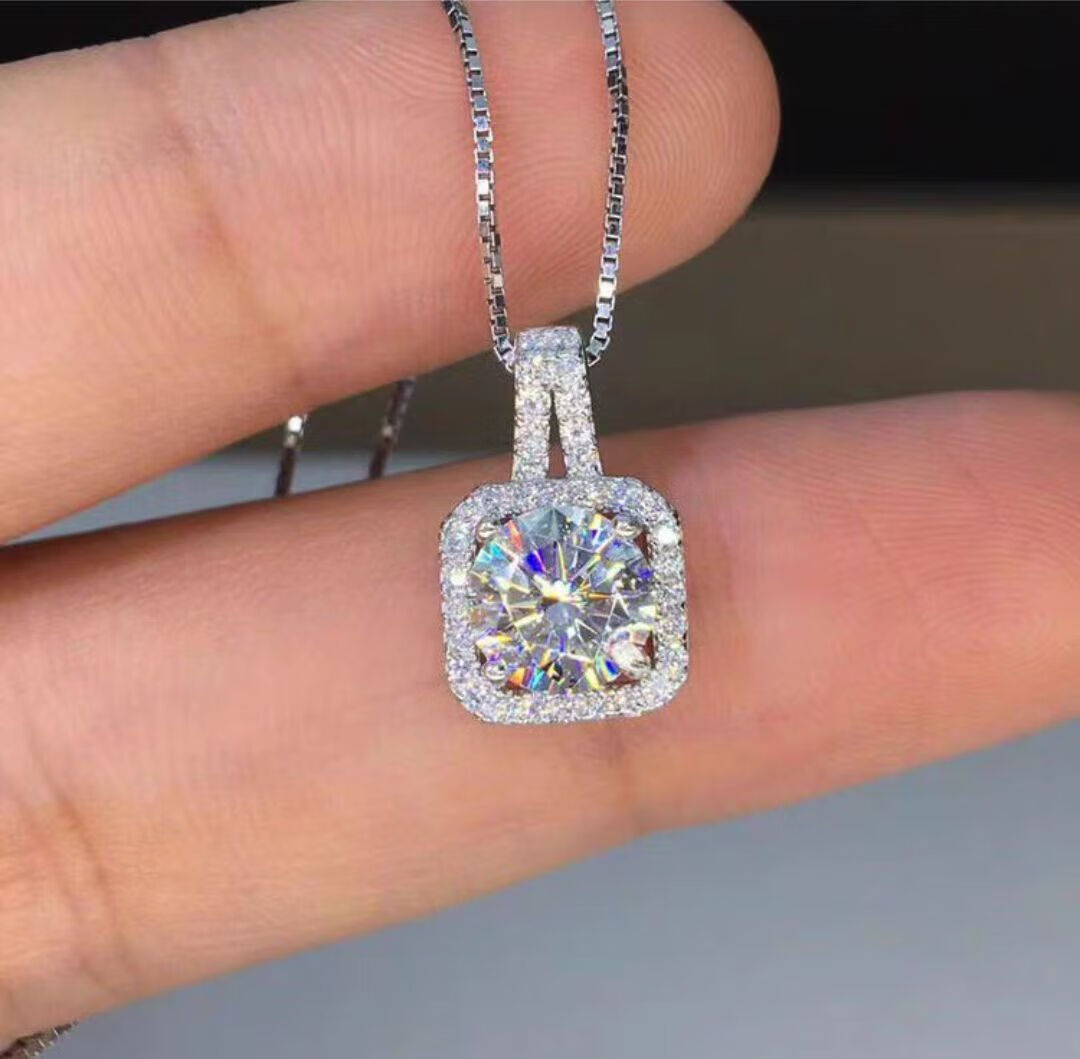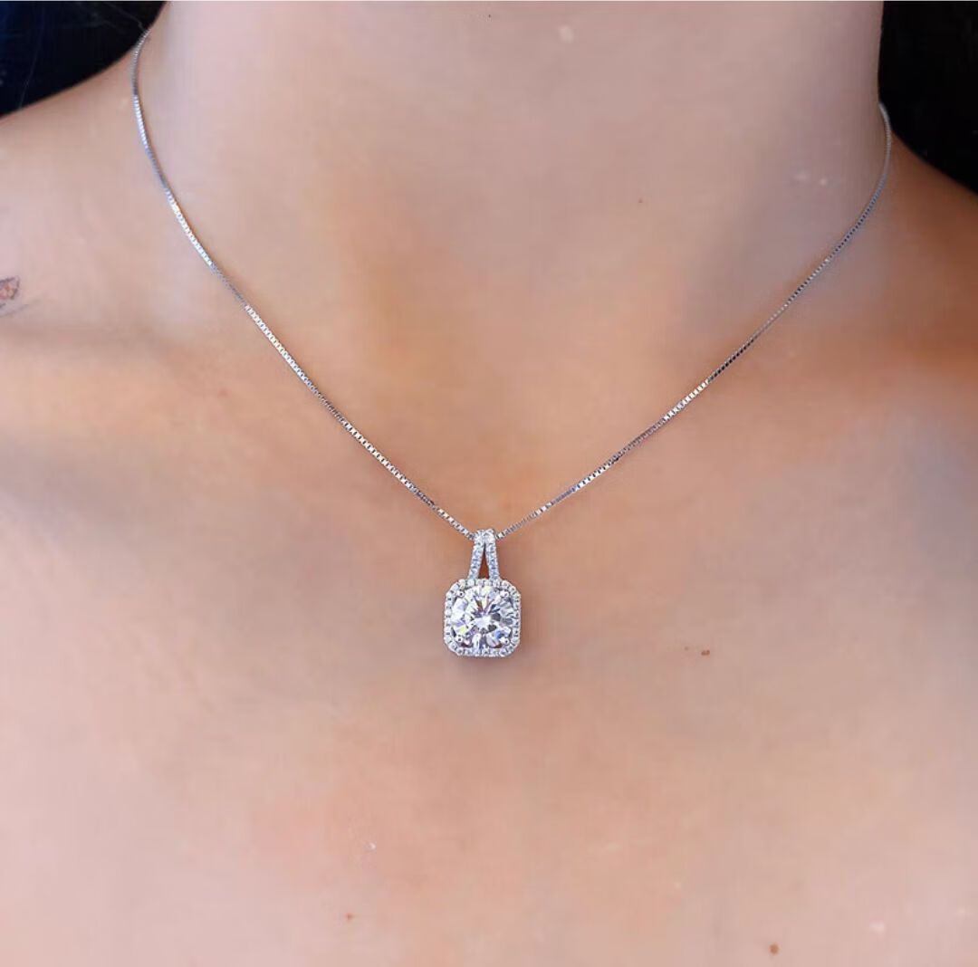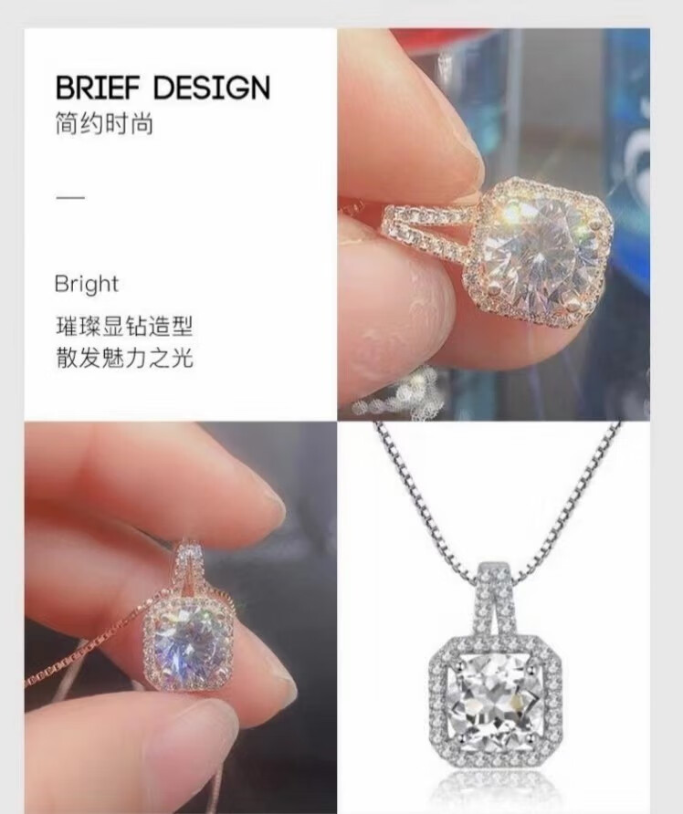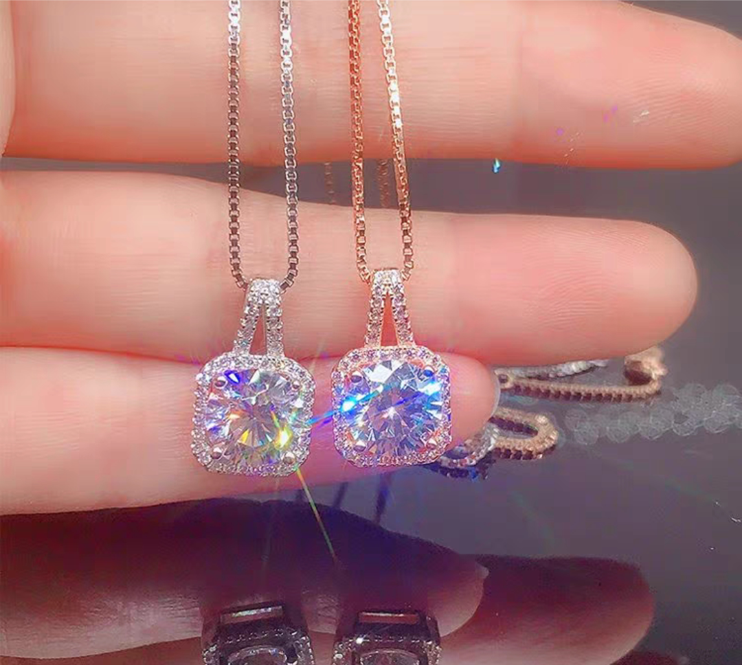 Shiyi PT950 pure platinum inlaid with moissanite imported from the United States, four-claw princess clavicle chain single pendant for women, trendy platinum square 80-cent single pendant