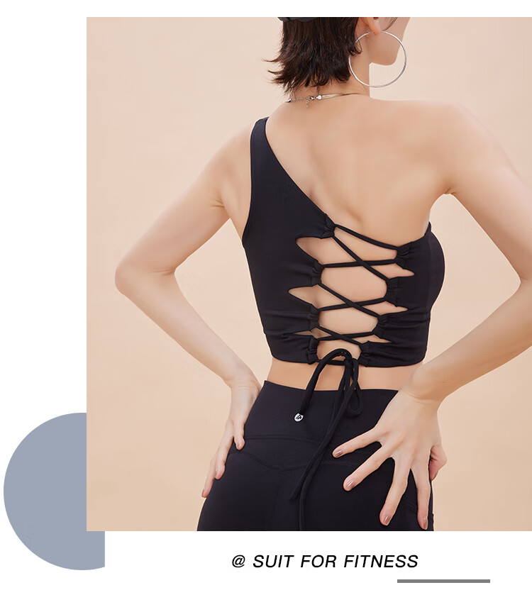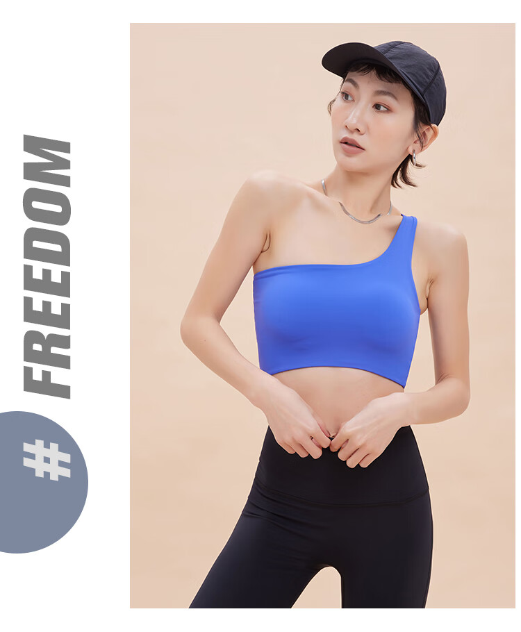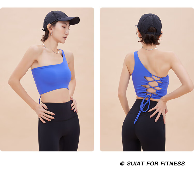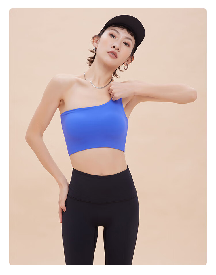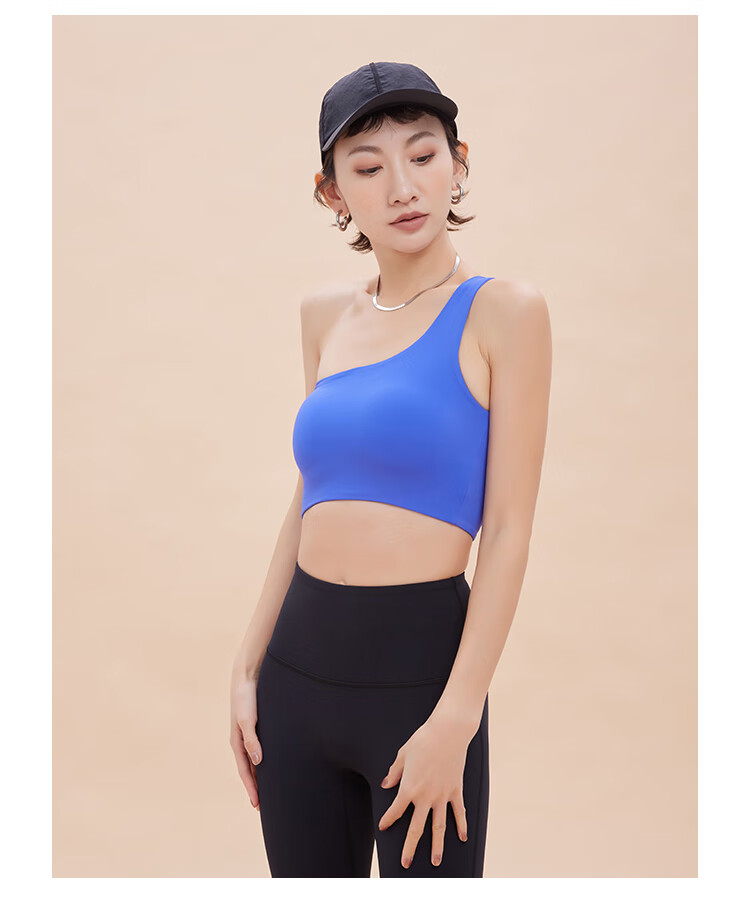 ANNERUN one-shoulder sports bra, yoga back, wearable, all-in-one anti-sagging Pilates bra, fitness top, blue M