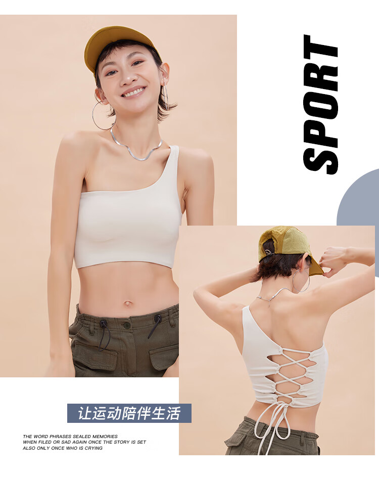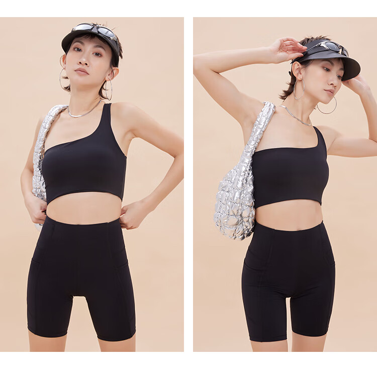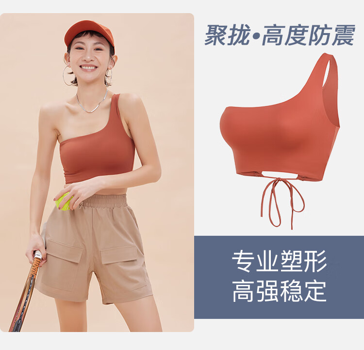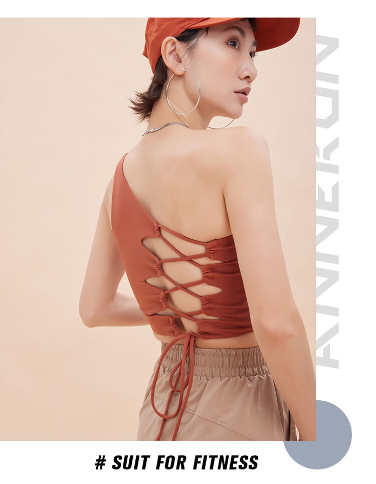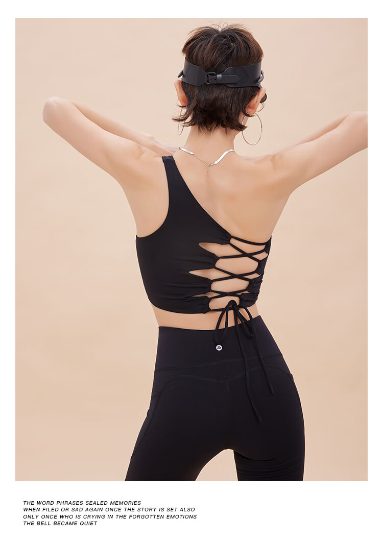 ANNERUN one-shoulder sports bra, yoga back, wearable, all-in-one anti-sagging Pilates bra, fitness top, blue M