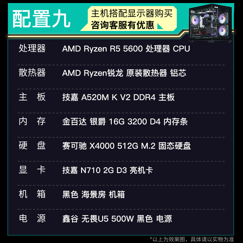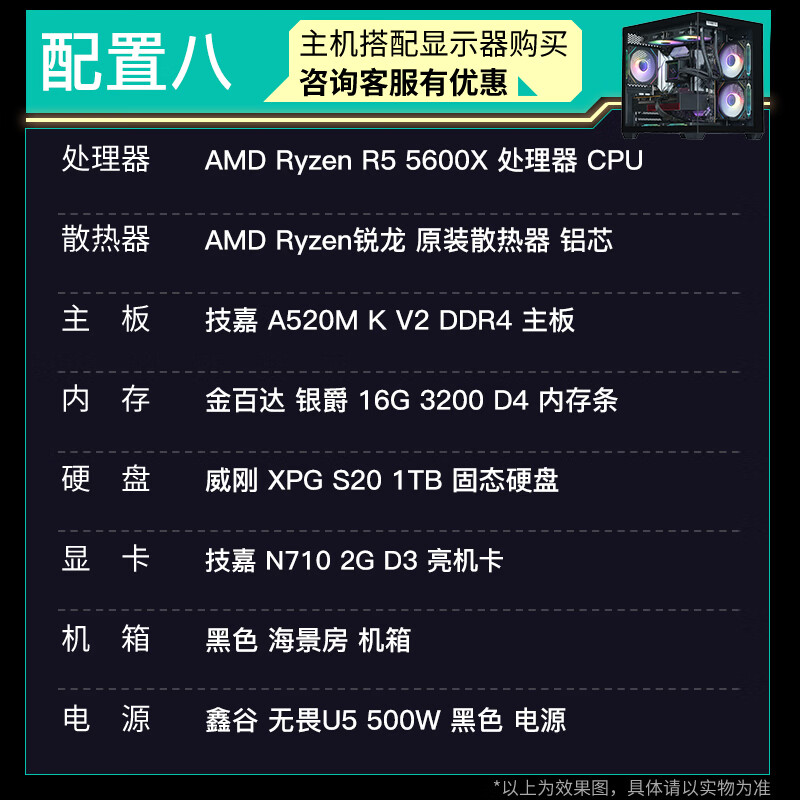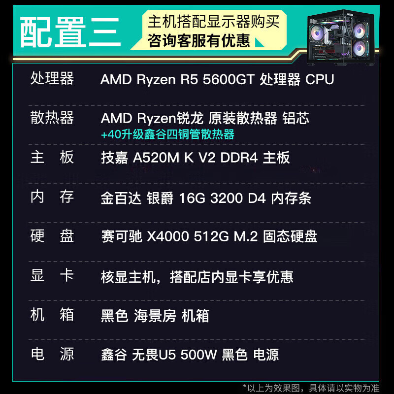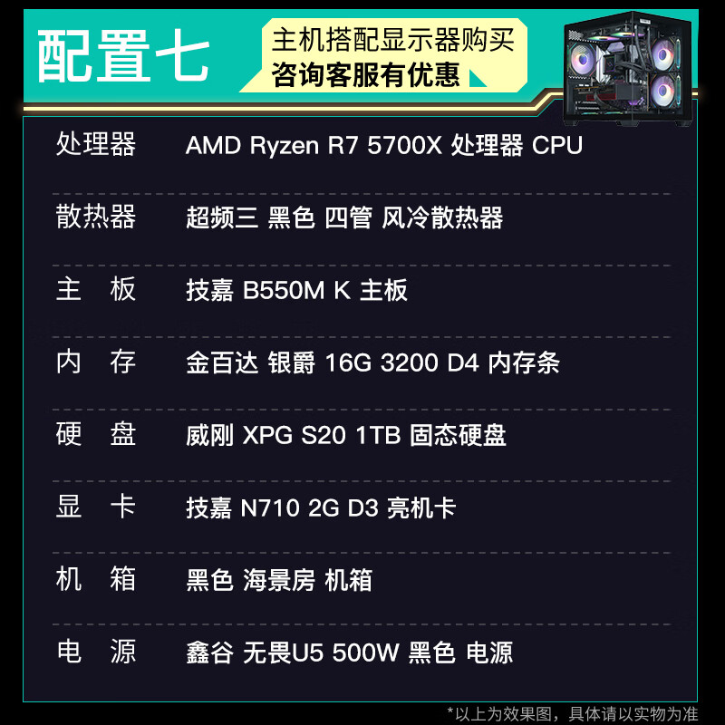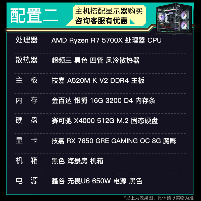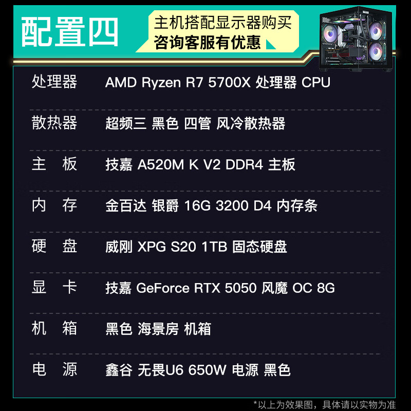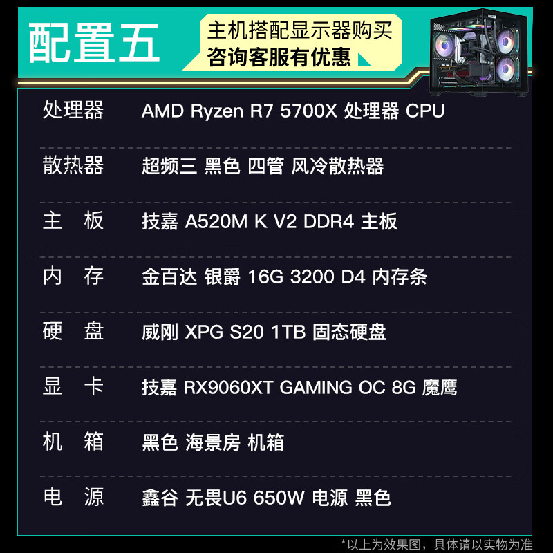GIGABYTE AMD host 5700X/5600X/5600GT/RX7650GRE/9060XT computer desktop complete game e-sports office design DIY assembly machine with six R7 5700X+RTX5060