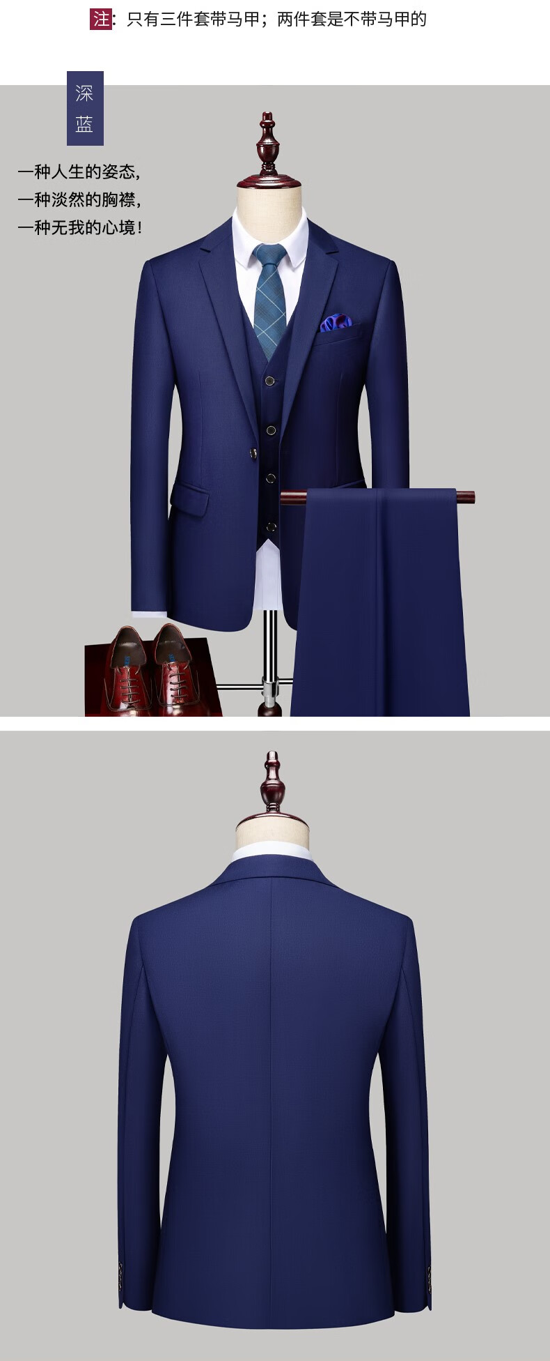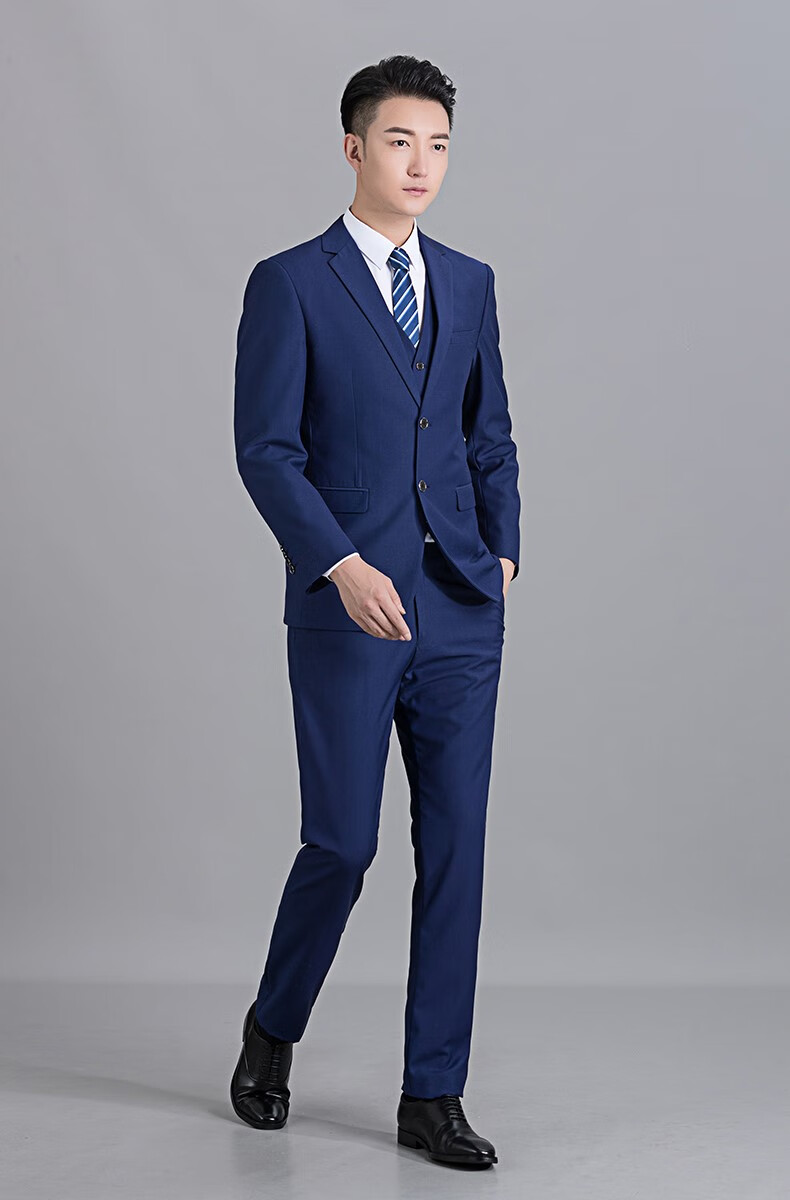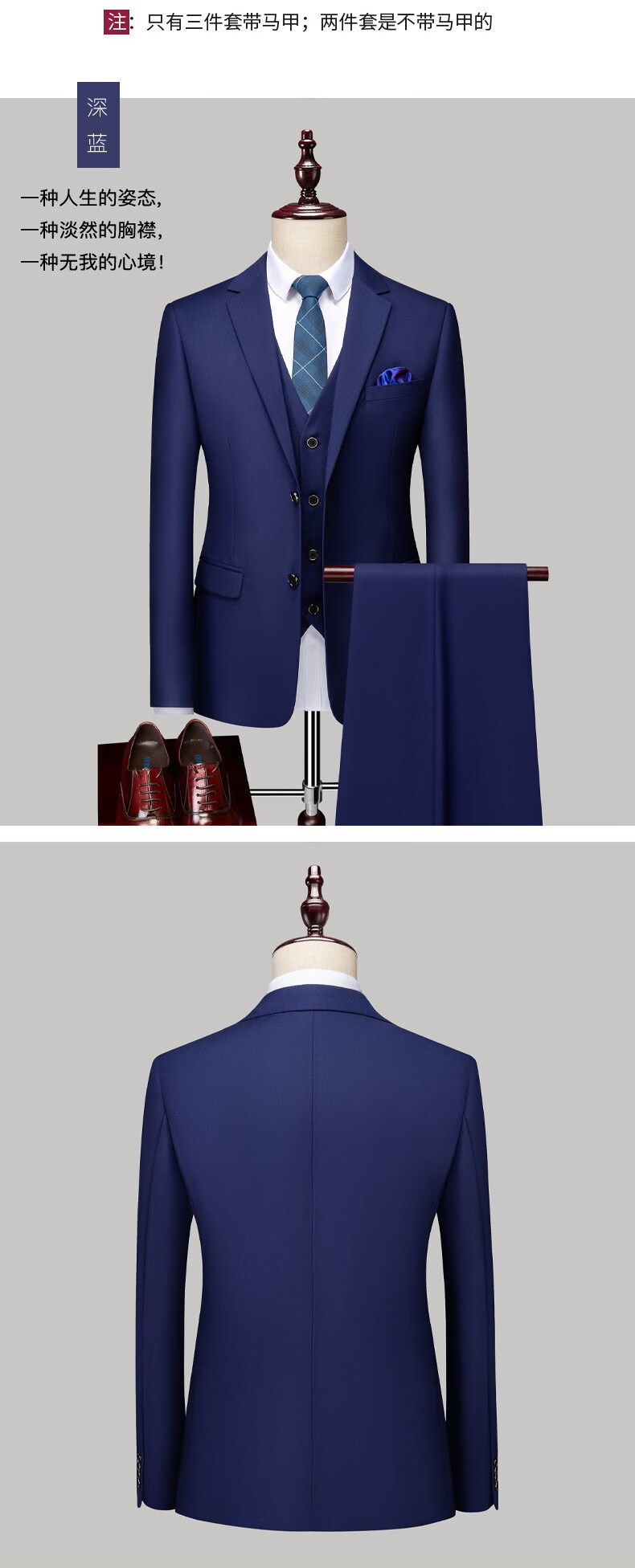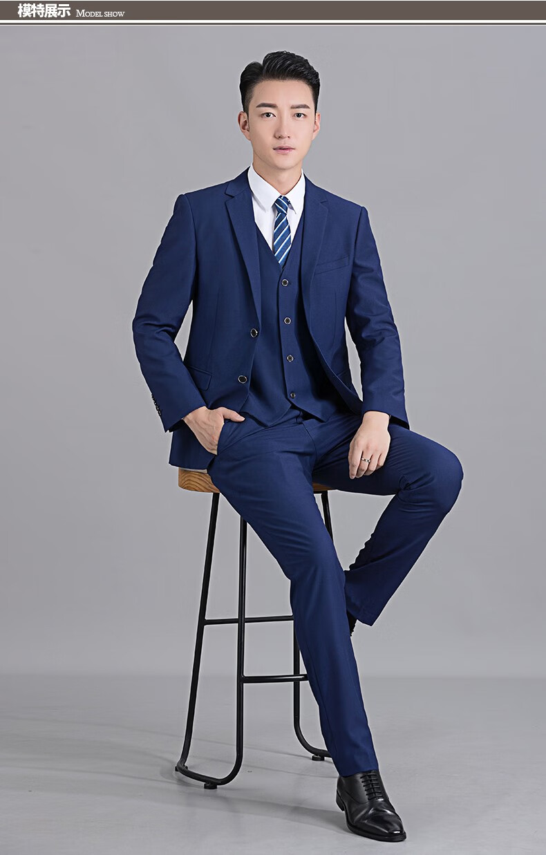 Announcement Bird Suit Men's Business Casual Slim Groom Wedding Dress Professional Formal Host Groomsman Suit 882 Dark Blue Two-piece Set Two Buttons No Slits 3XL 185/Suitable for Weight 145-160 Jin Jin is equal to 0.5 kg
