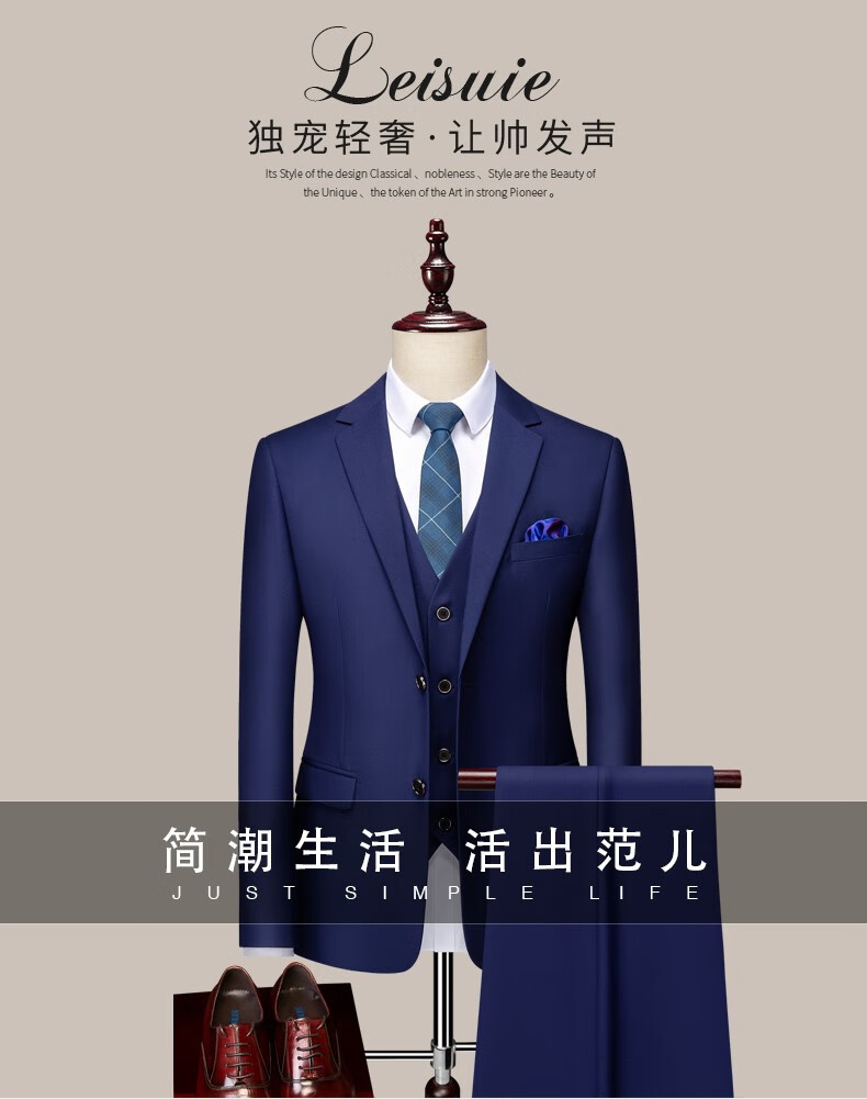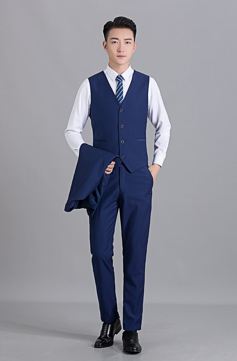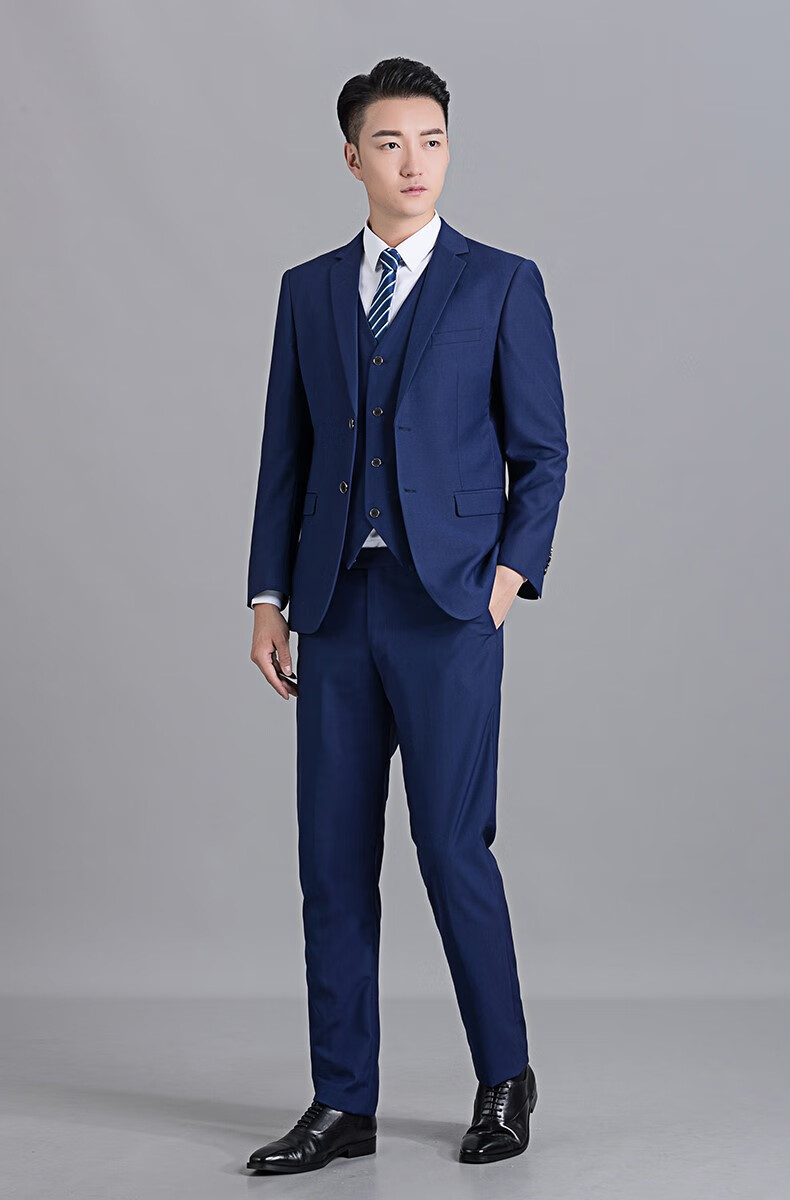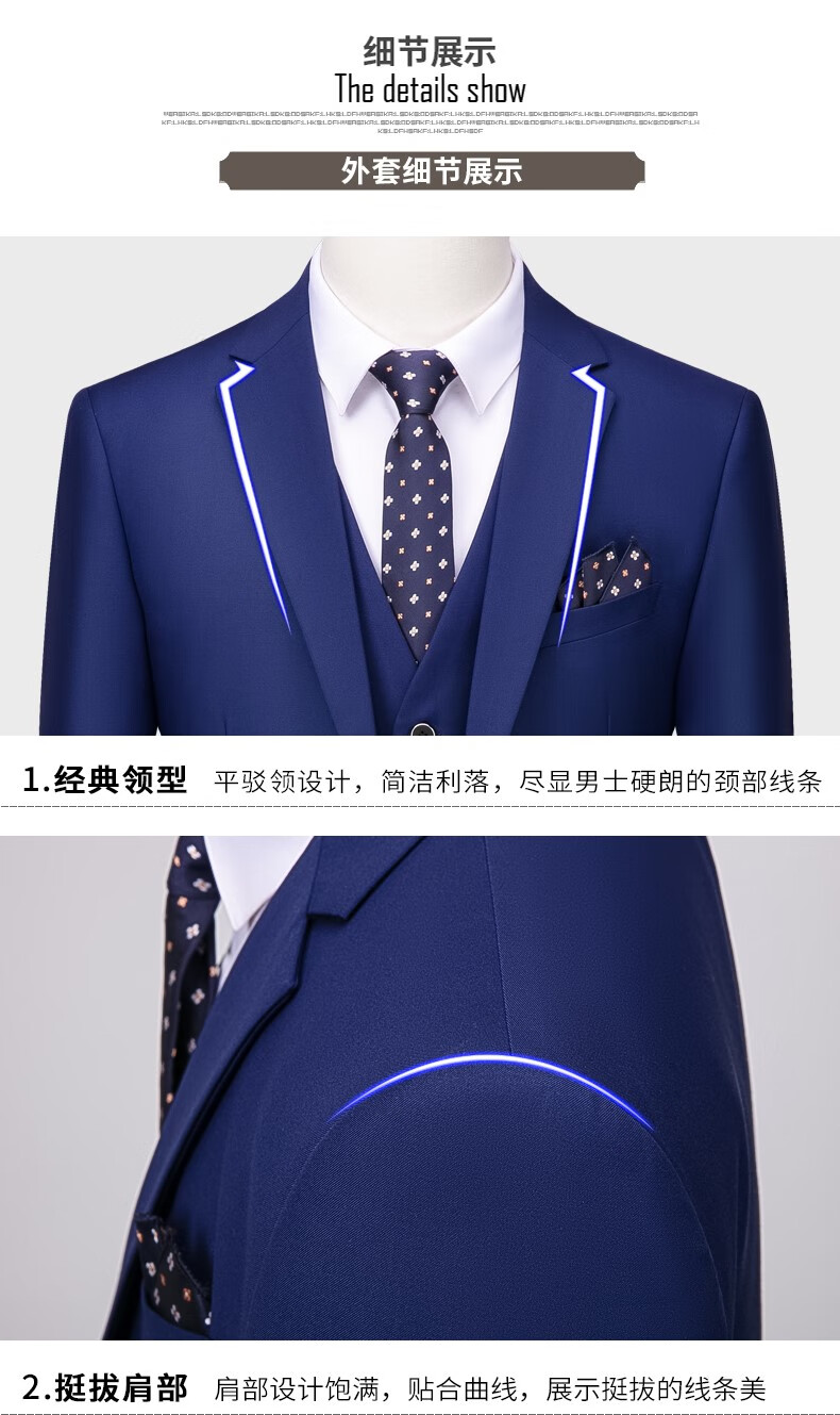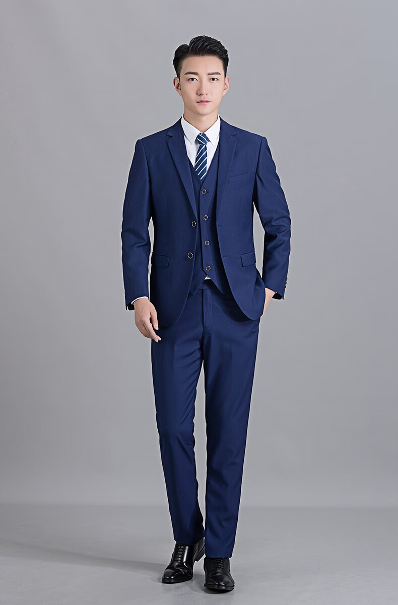 Announcement Bird Suit Men's Business Casual Slim Groom Wedding Dress Professional Formal Host Groomsman Suit 882 Dark Blue Two-piece Set Two Buttons No Slits 3XL 185/Suitable for Weight 145-160 Jin Jin is equal to 0.5 kg