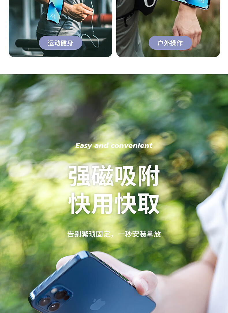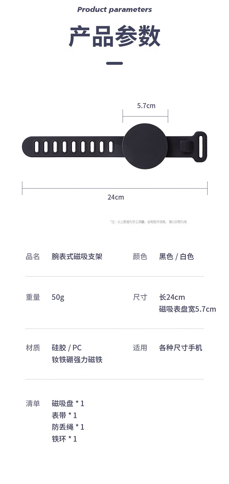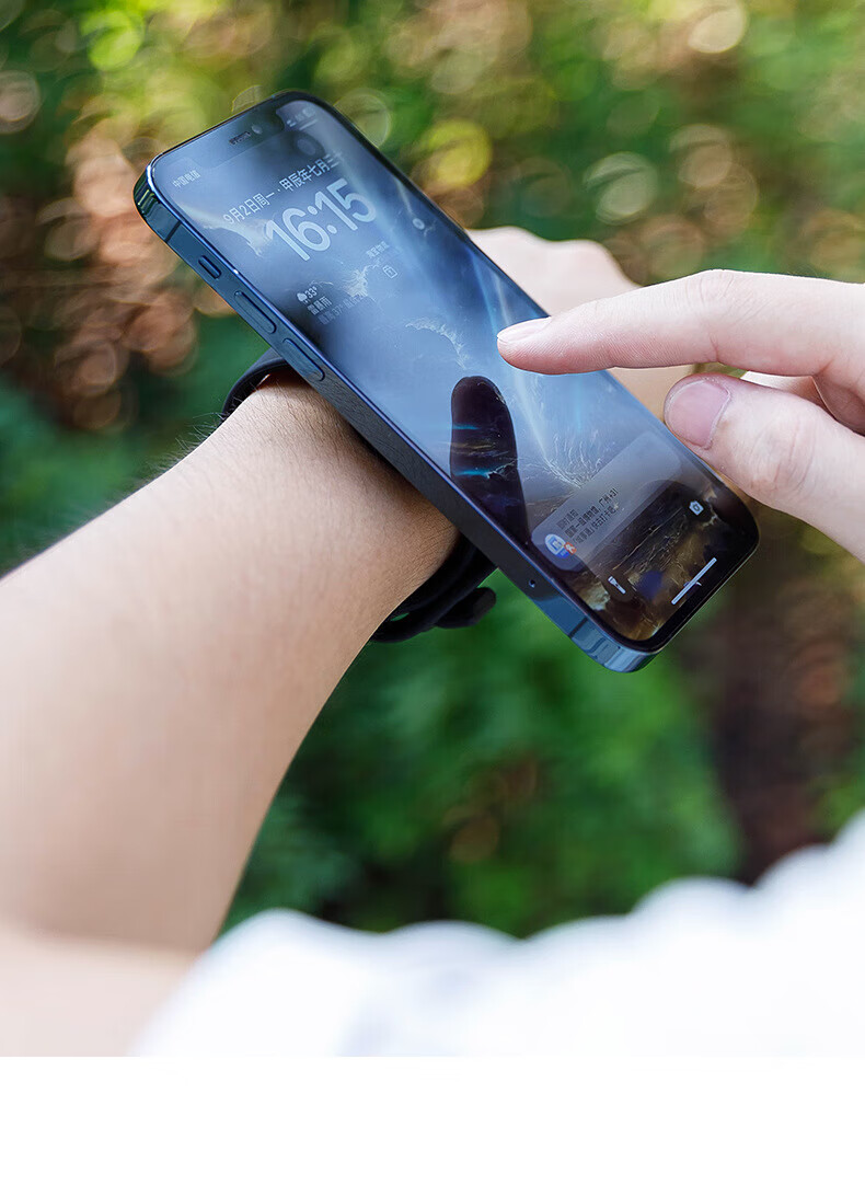 Magnetic holder for outdoor cycling and driving, wrist strap, portable fitness live streaming arm phone, black (applicable to wrist circumference within 17cm)