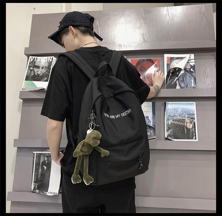 School bag female Korean version Harajuku ulzzang high school student backpack male ins junior high school student college student versatile backpack black