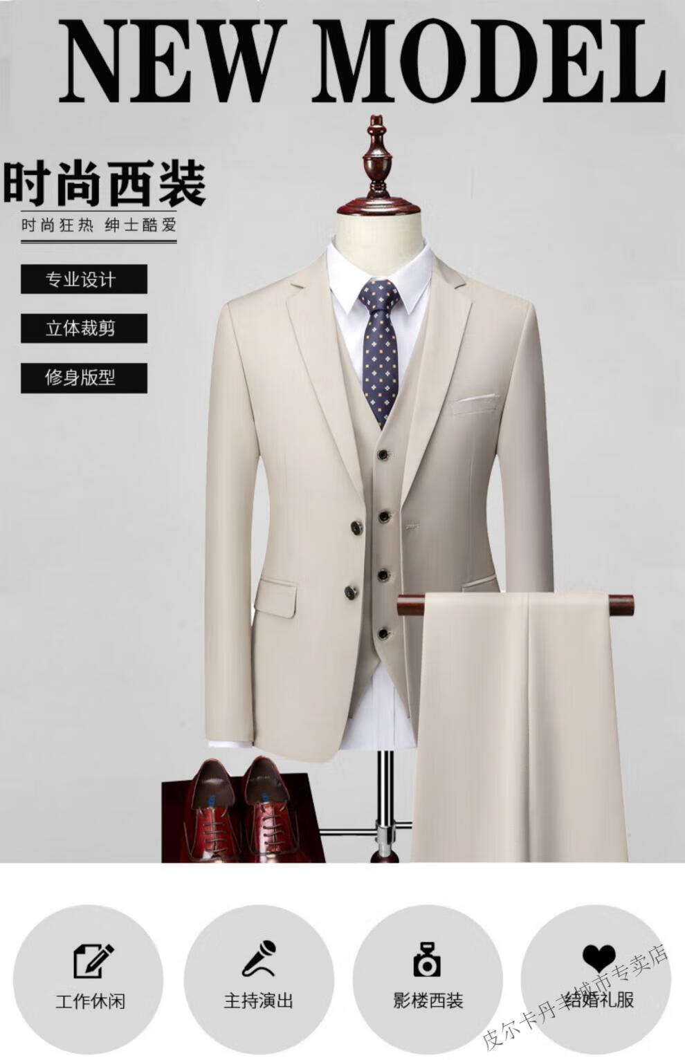 Pierre Cardin men's high-end suit business formal business casual slim fit groom wedding dress groomsmen suit white suit + trousers XL recommended 120-135 Jin Jin equals about 0.5 kg