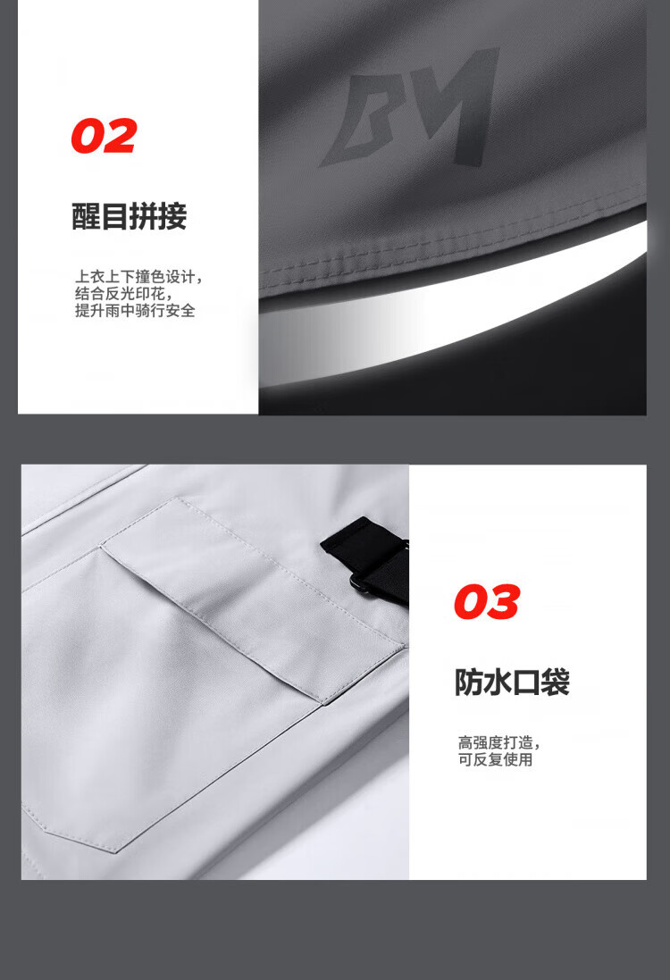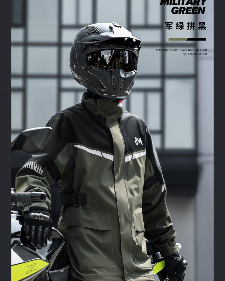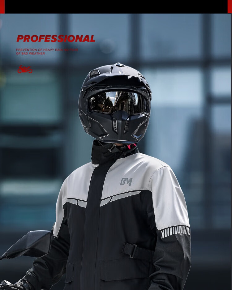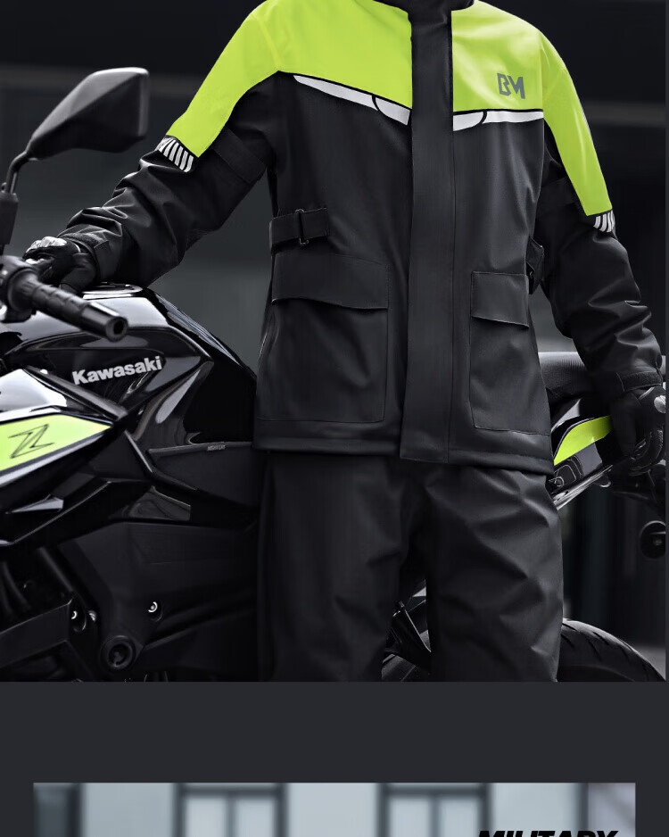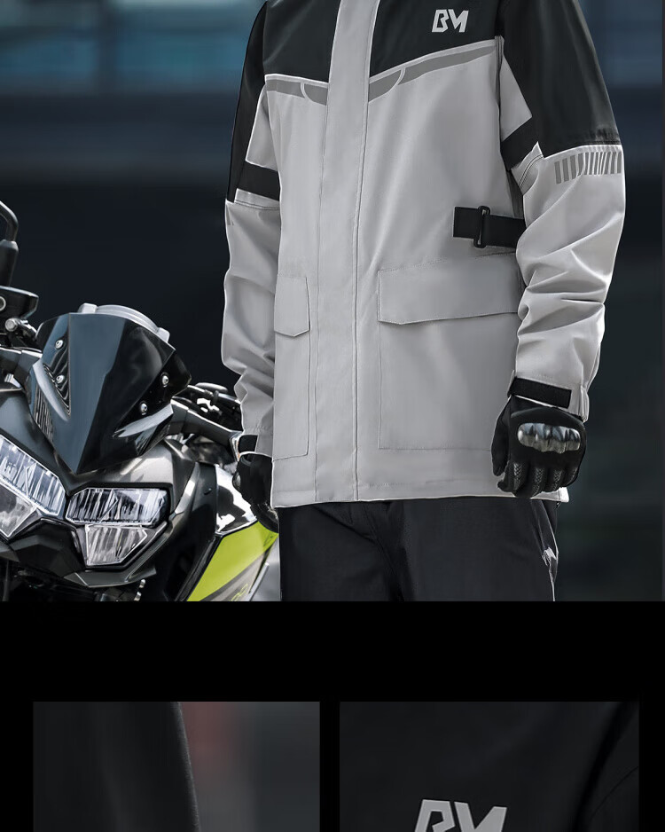 Beimei Motorcycle Raincoat and Rain Pants Set Men's Full Body Heavy Rain Split Water Motorcycle Rain Cycling Rain Suit Black and Gray - Top + Pants High-Gloss Reflective + Waistband XL