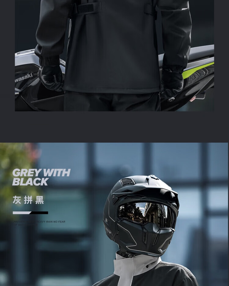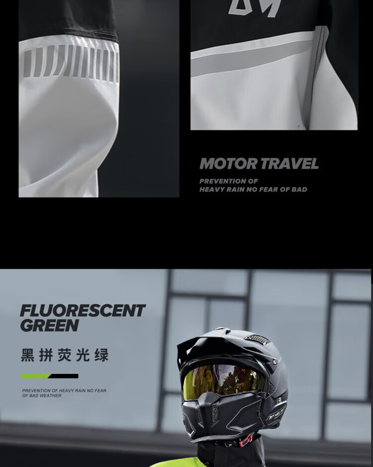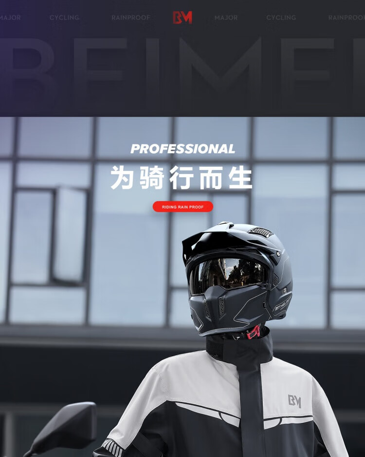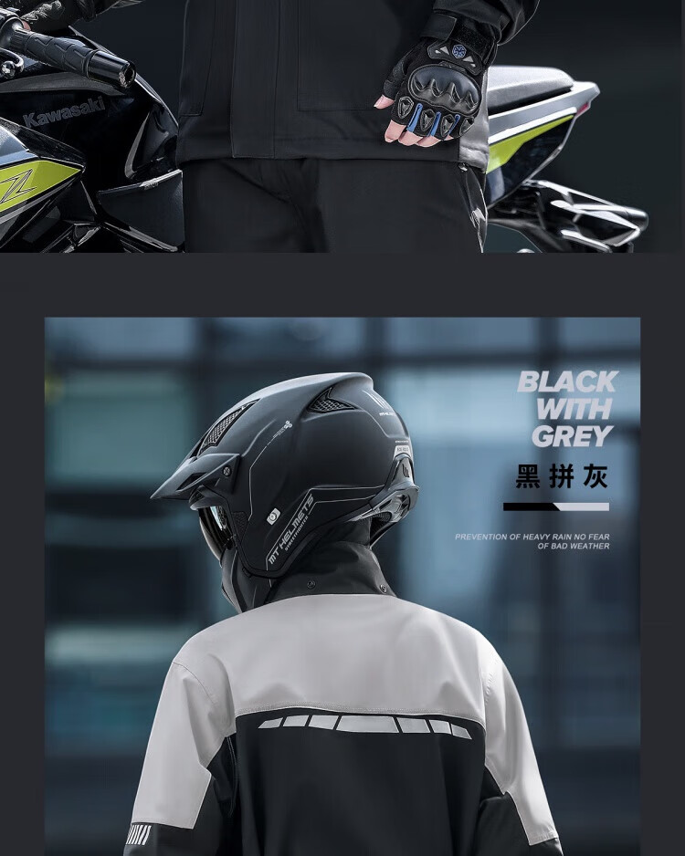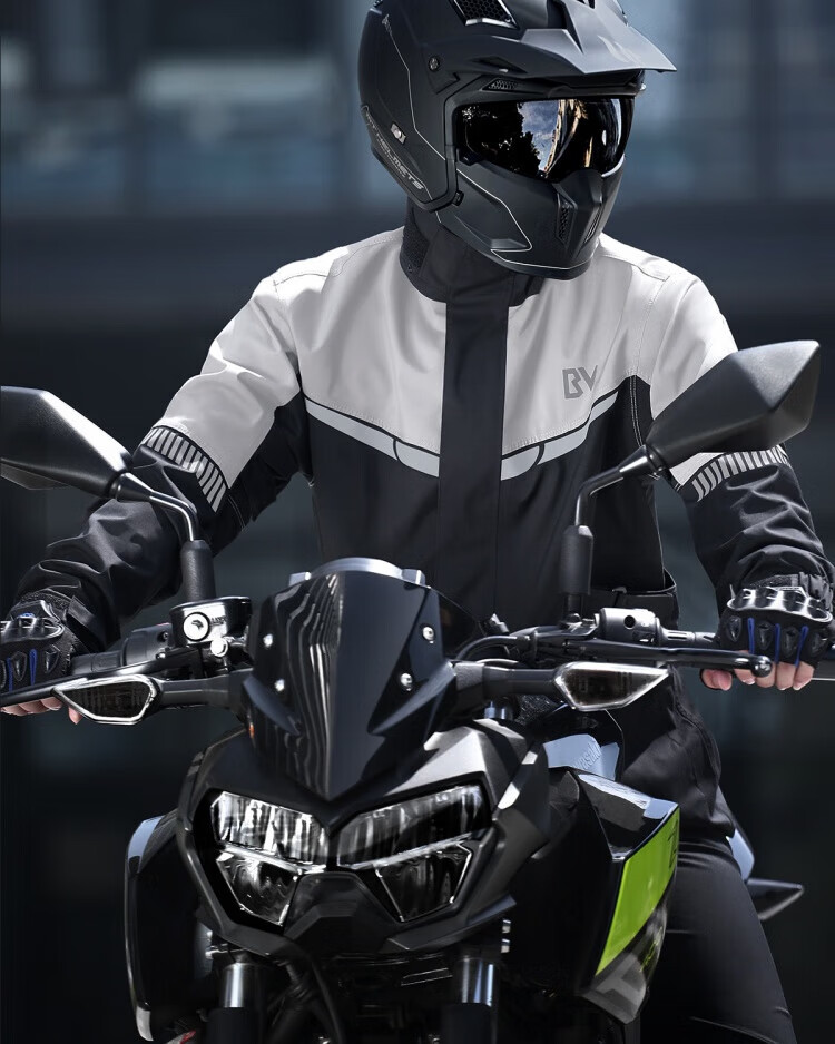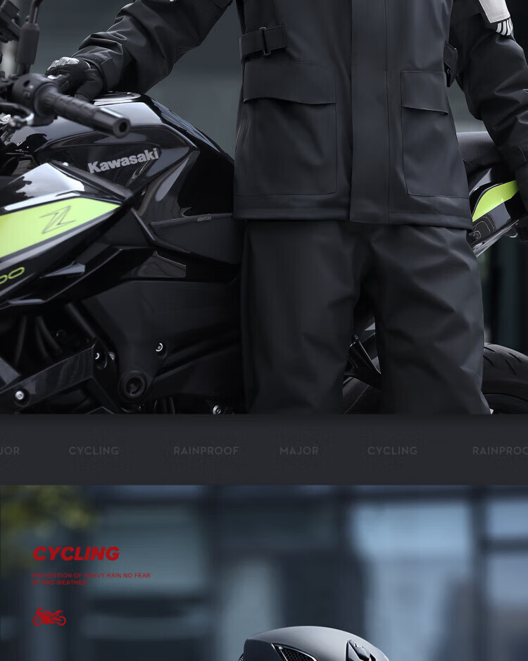 Beimei Motorcycle Raincoat and Rain Pants Set Men's Full Body Heavy Rain Split Water Motorcycle Rain Cycling Rain Suit Black and Gray - Top + Pants High-Gloss Reflective + Waistband XL