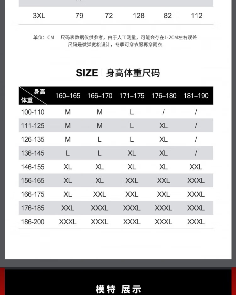 China (cm) 165 / 88-90 170 / 96-98 175 / 108-110 180 / 118-122 185 / 126-130