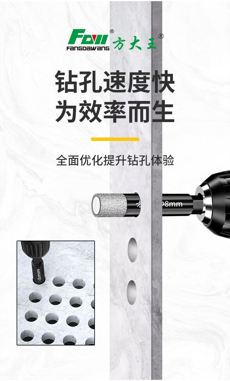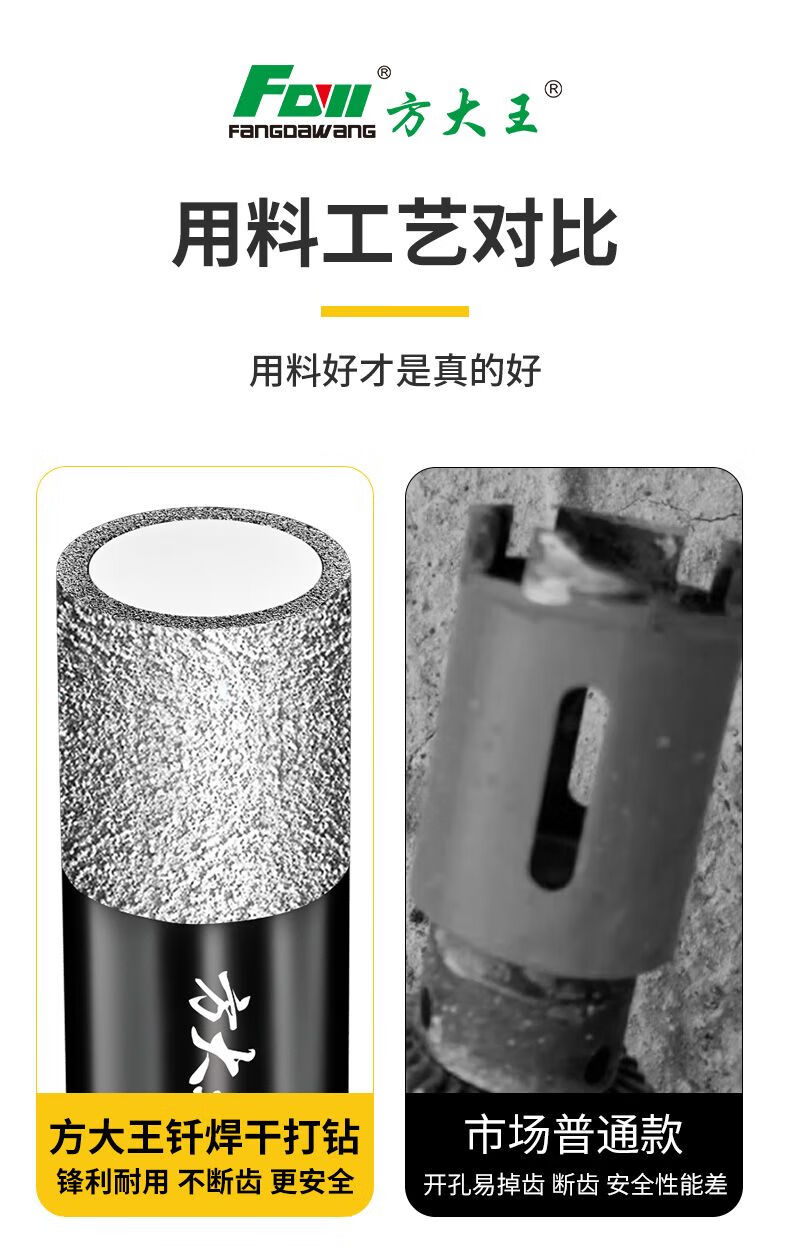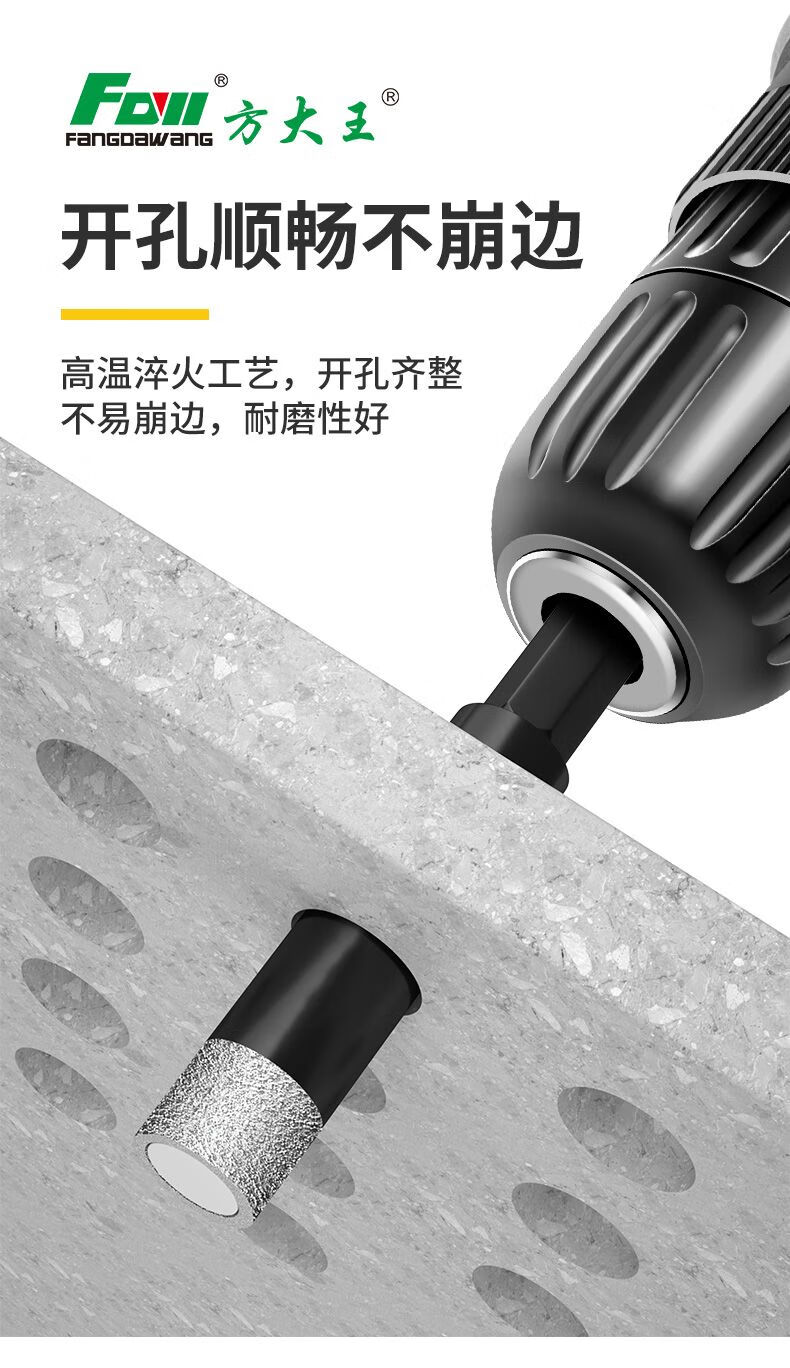 Fang Dawang dry-drilling tile drilling bit all-ceramic floor vitrified tiles marble round hole hand drill special drilling industrial-grade dry drilling 12mm five-pack