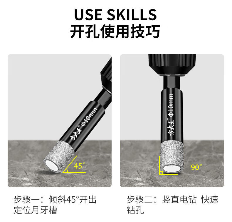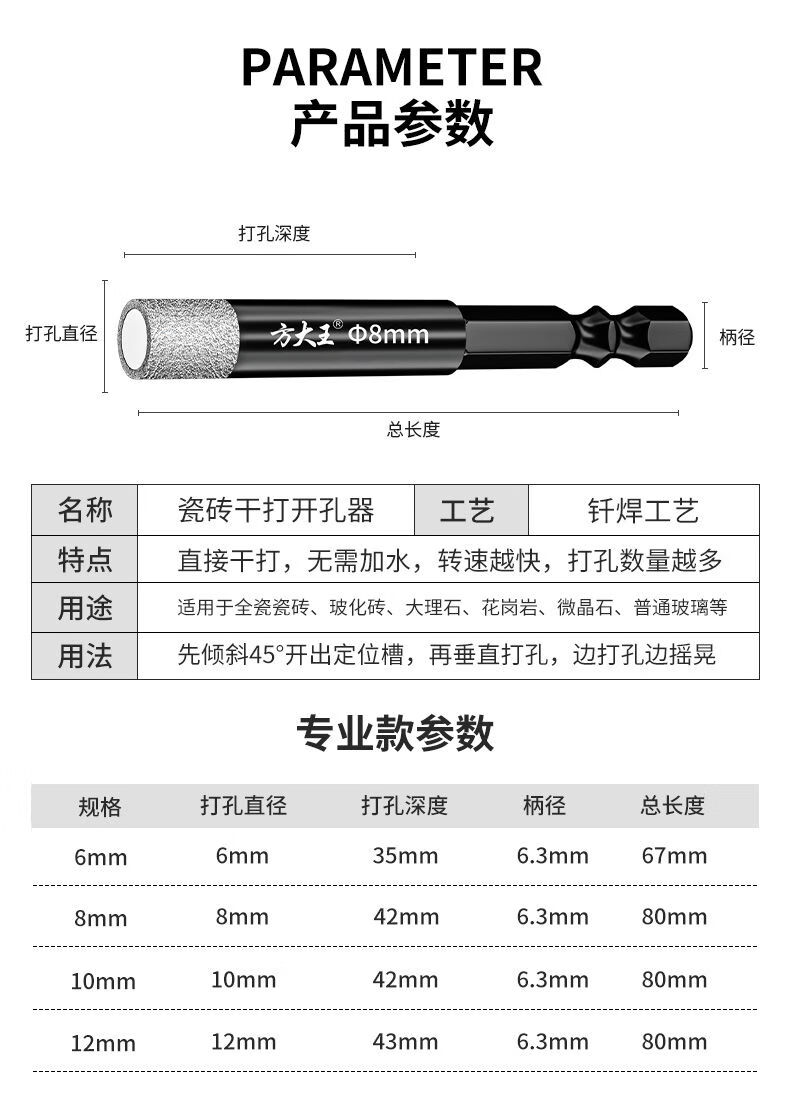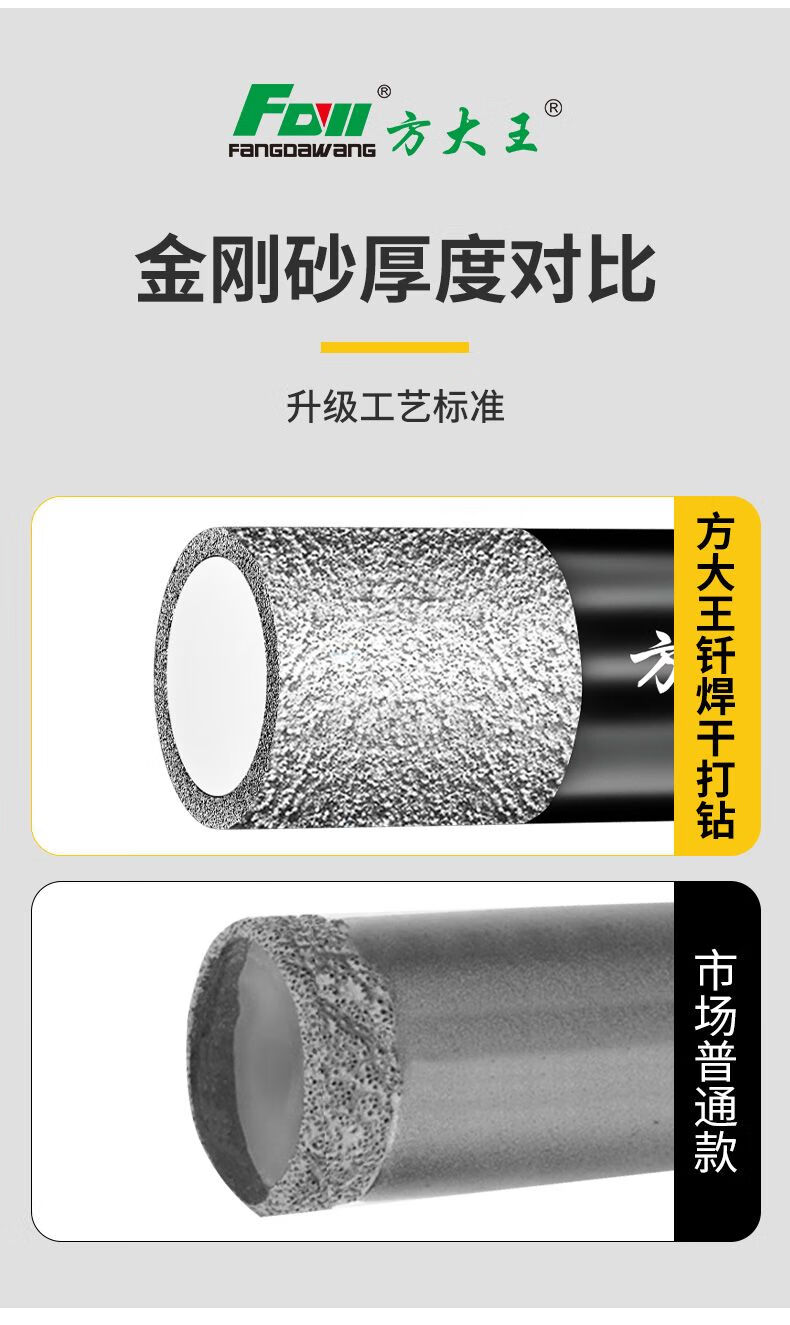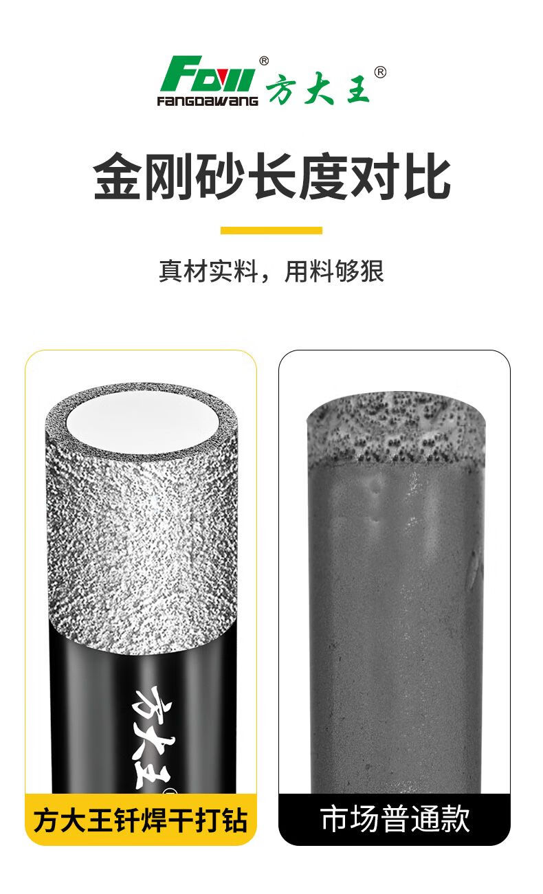 Fang Dawang dry-drilling tile drilling bit all-ceramic floor vitrified tiles marble round hole hand drill special drilling industrial-grade dry drilling 12mm five-pack