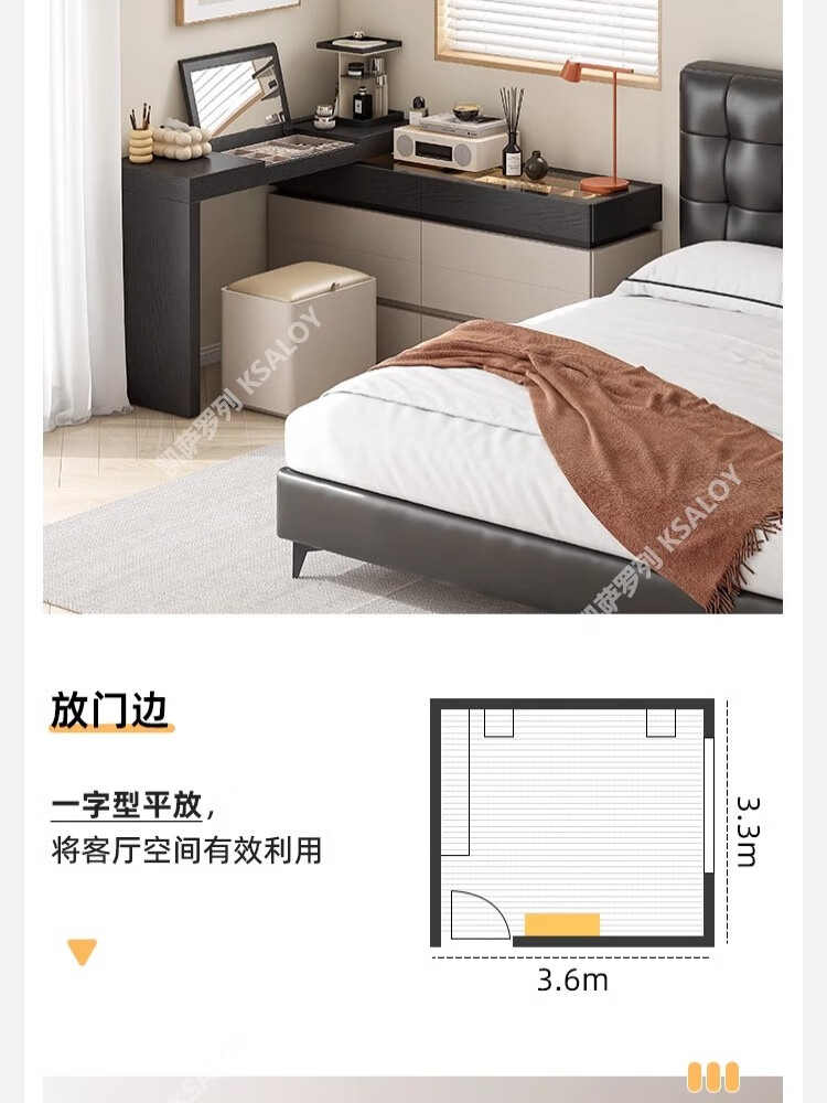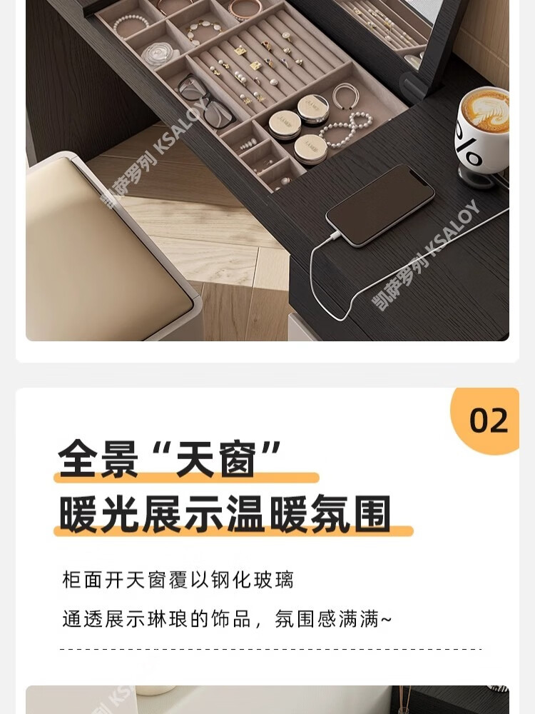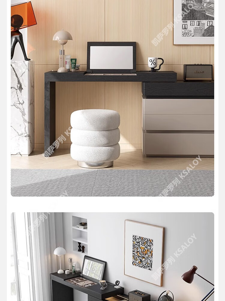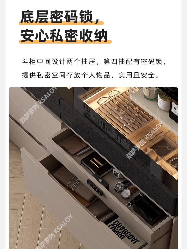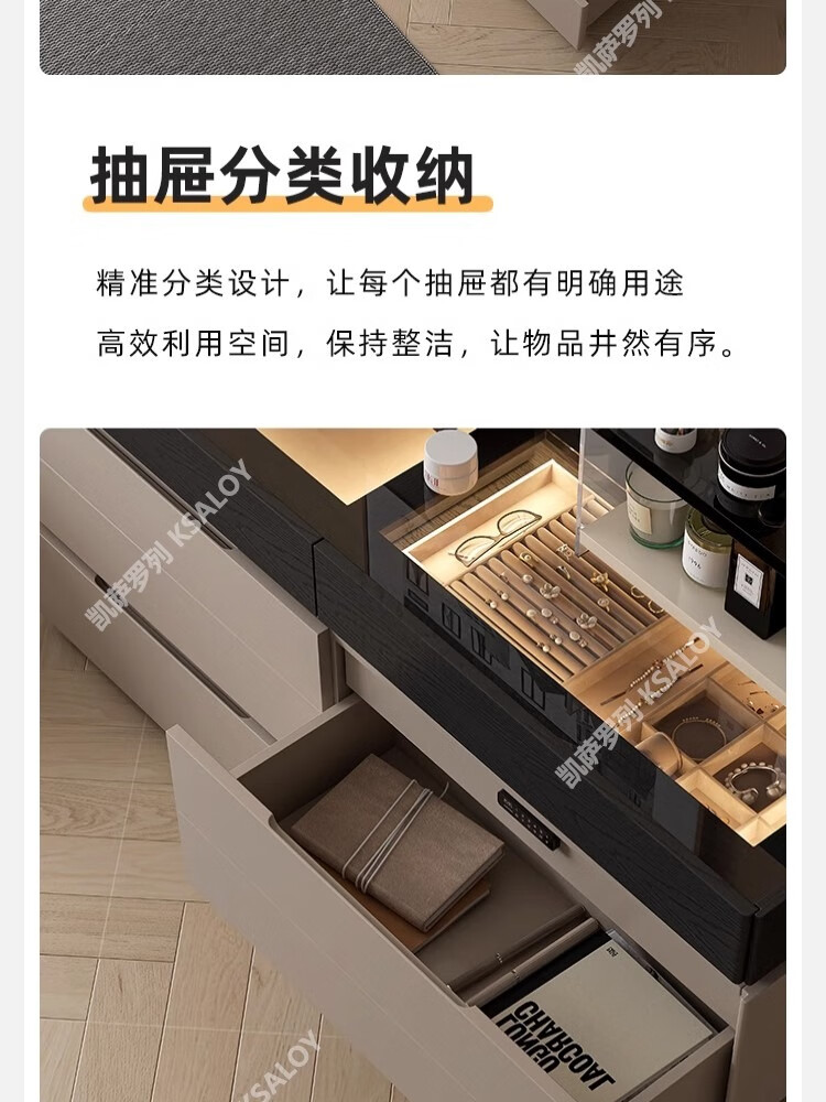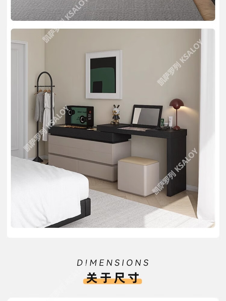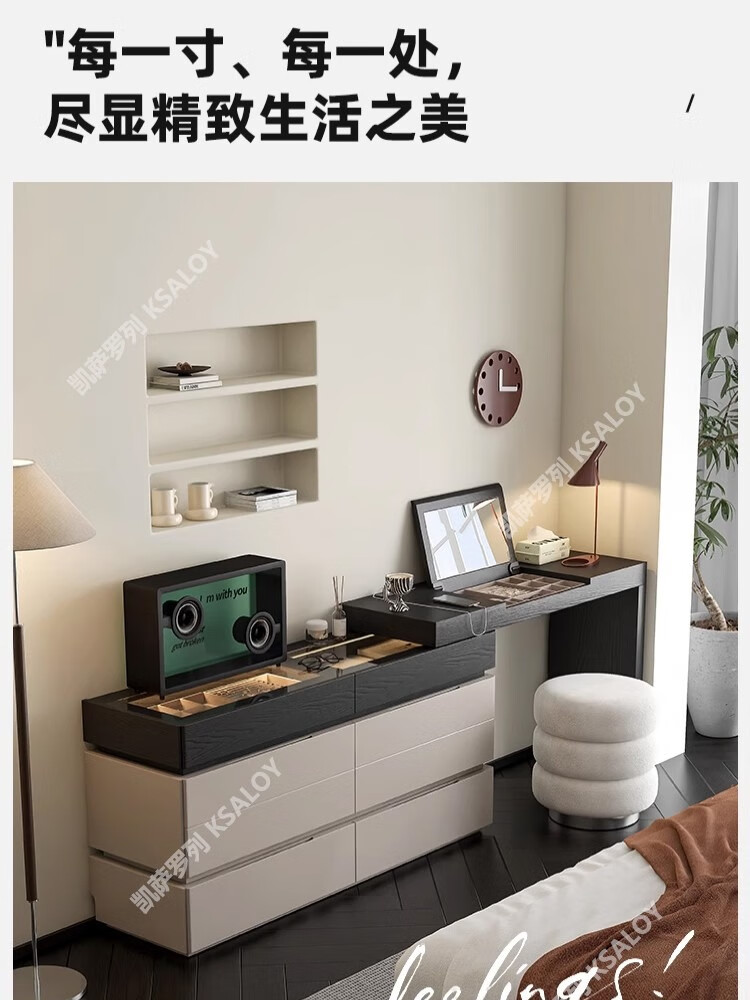 KSALOY Italian-style dresser with flip cover for small apartment bedroom dresser with drawer and integrated cabinet retractable bedside jewelry storage cabinet with flip cover dresser + 1.2M cupboard + round stool 120cm flip dresser with password lock drawer