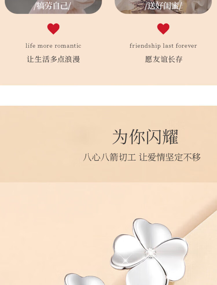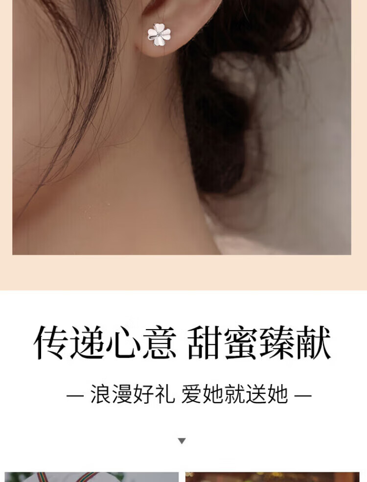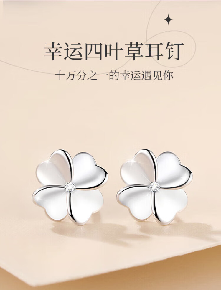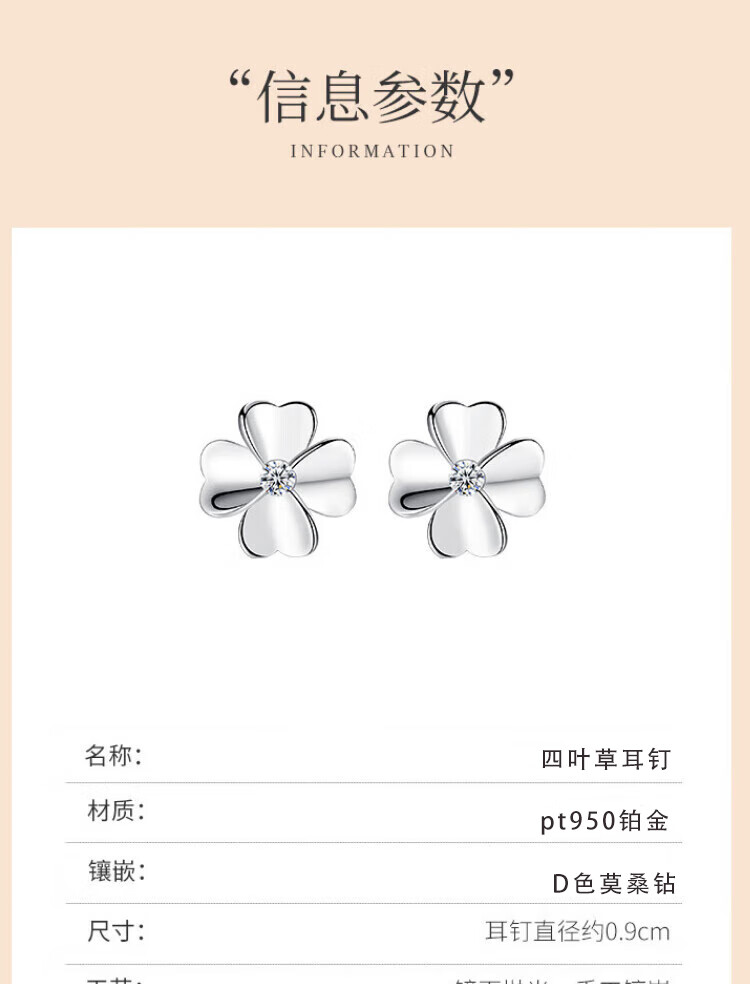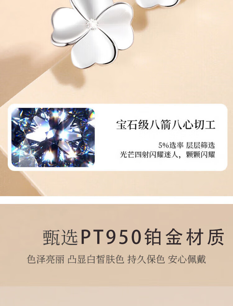 Grace GirlPt950 platinum four-leaf clover earrings for women, fashionable and atmospheric earrings, practical birthday gifts for girlfriends and wives, platinum diamond four-leaf clover earrings