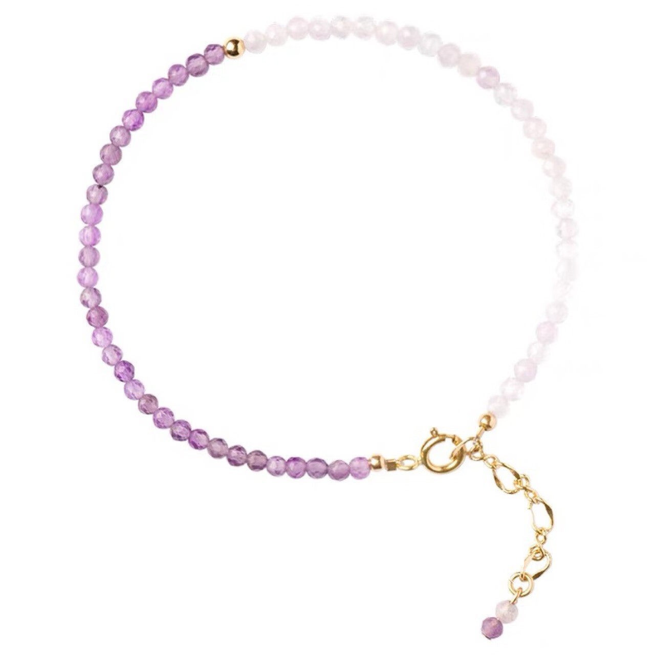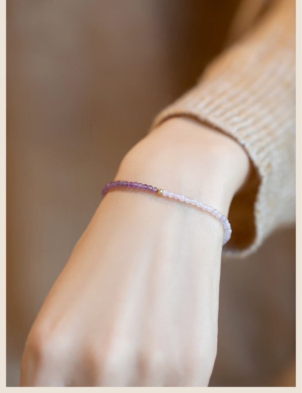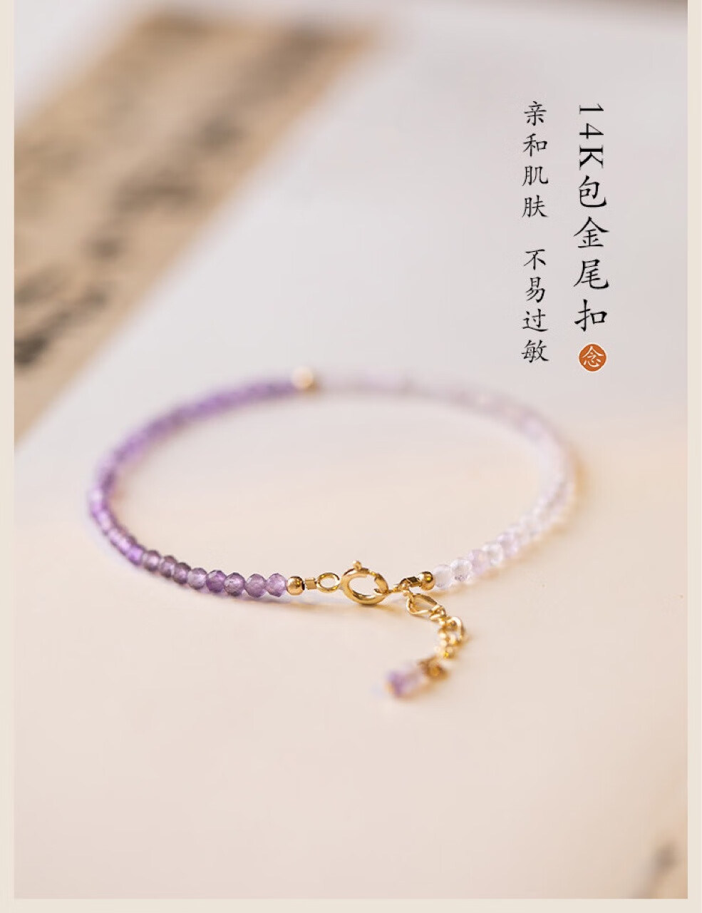 Successfully landed natural lavender amethyst bracelet extremely fine 2mm 14k gold beads lucky retro style gift for women 3MM round beads 16cm plus extension chain