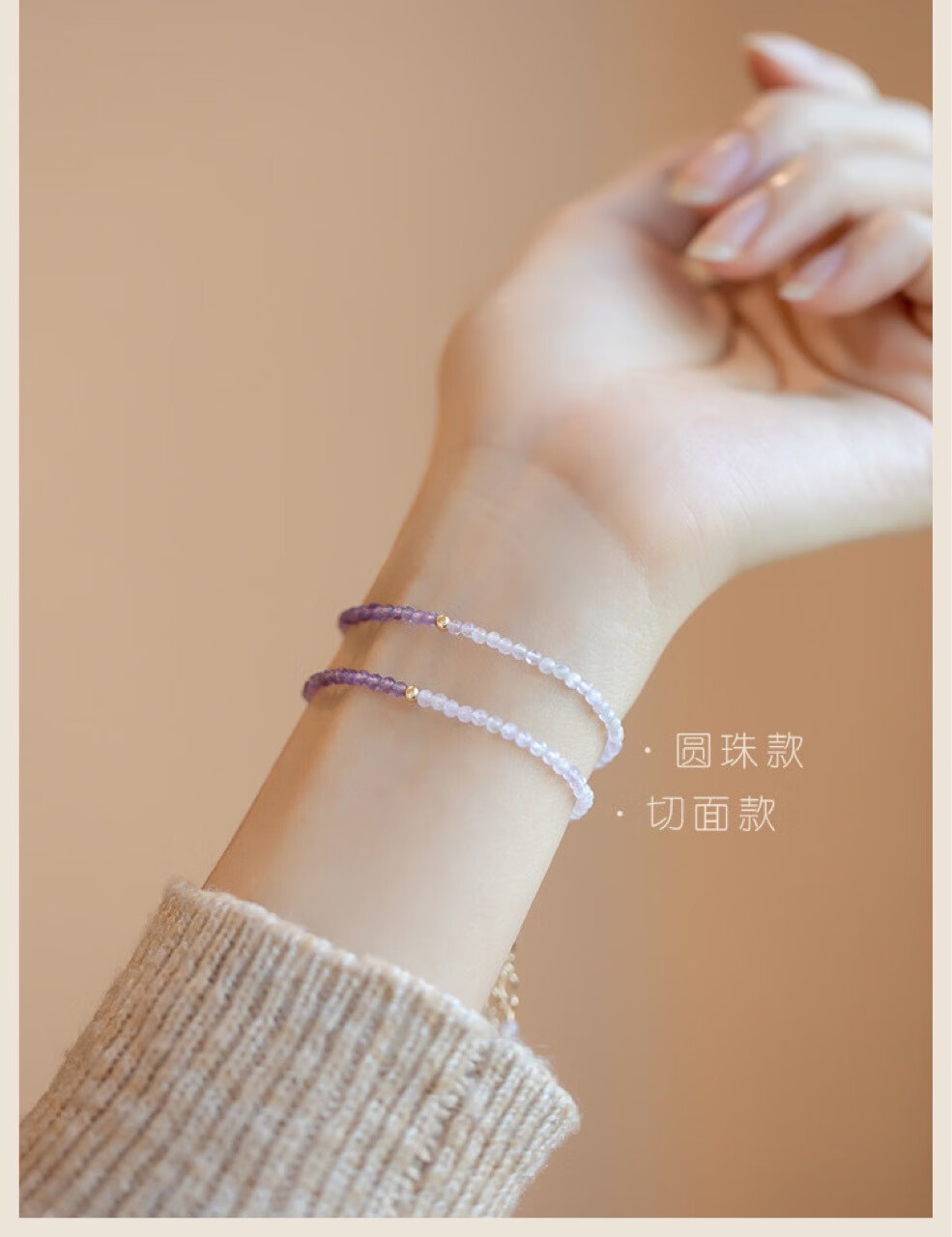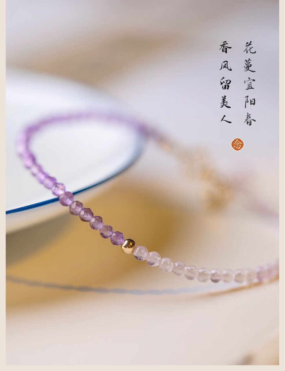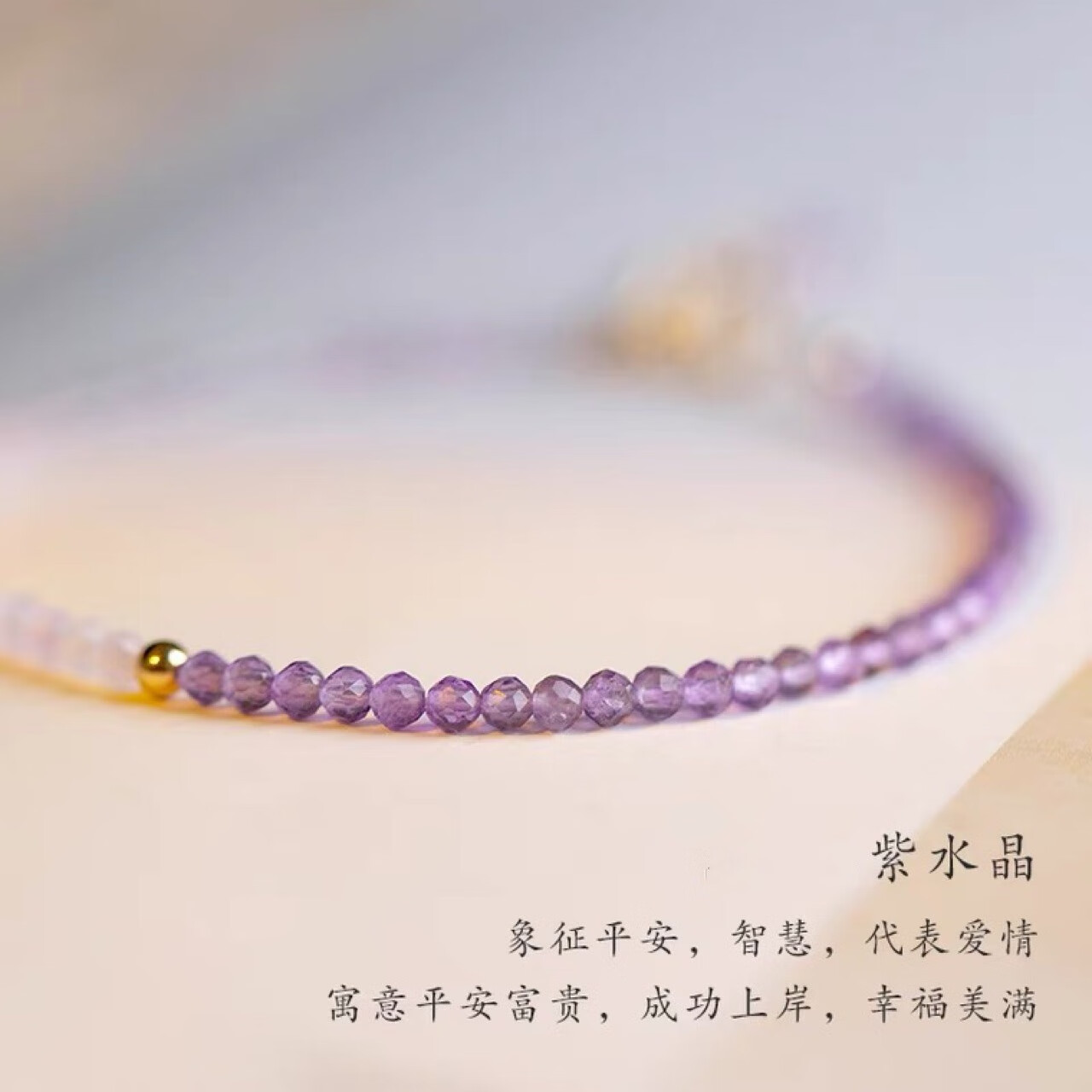 Successfully landed natural lavender amethyst bracelet extremely fine 2mm 14k gold beads lucky retro style gift for women 3MM round beads 16cm plus extension chain