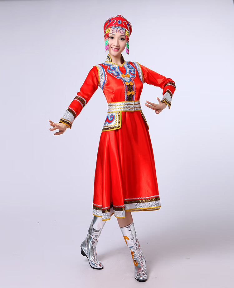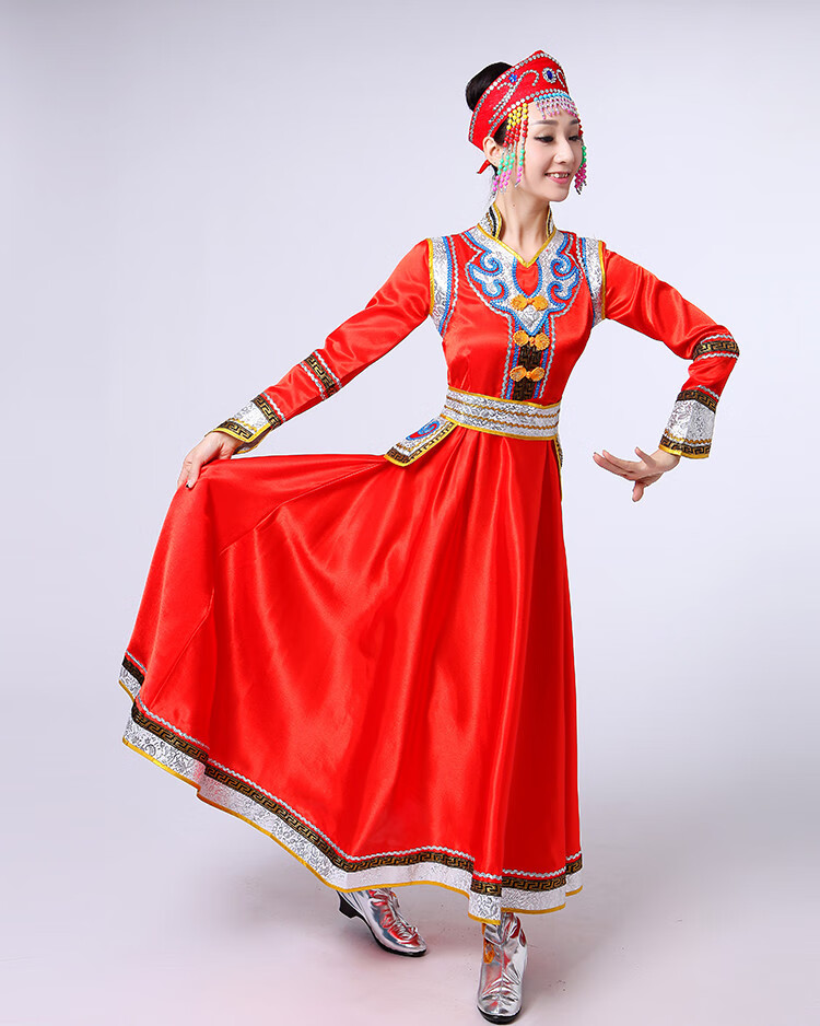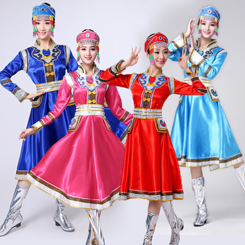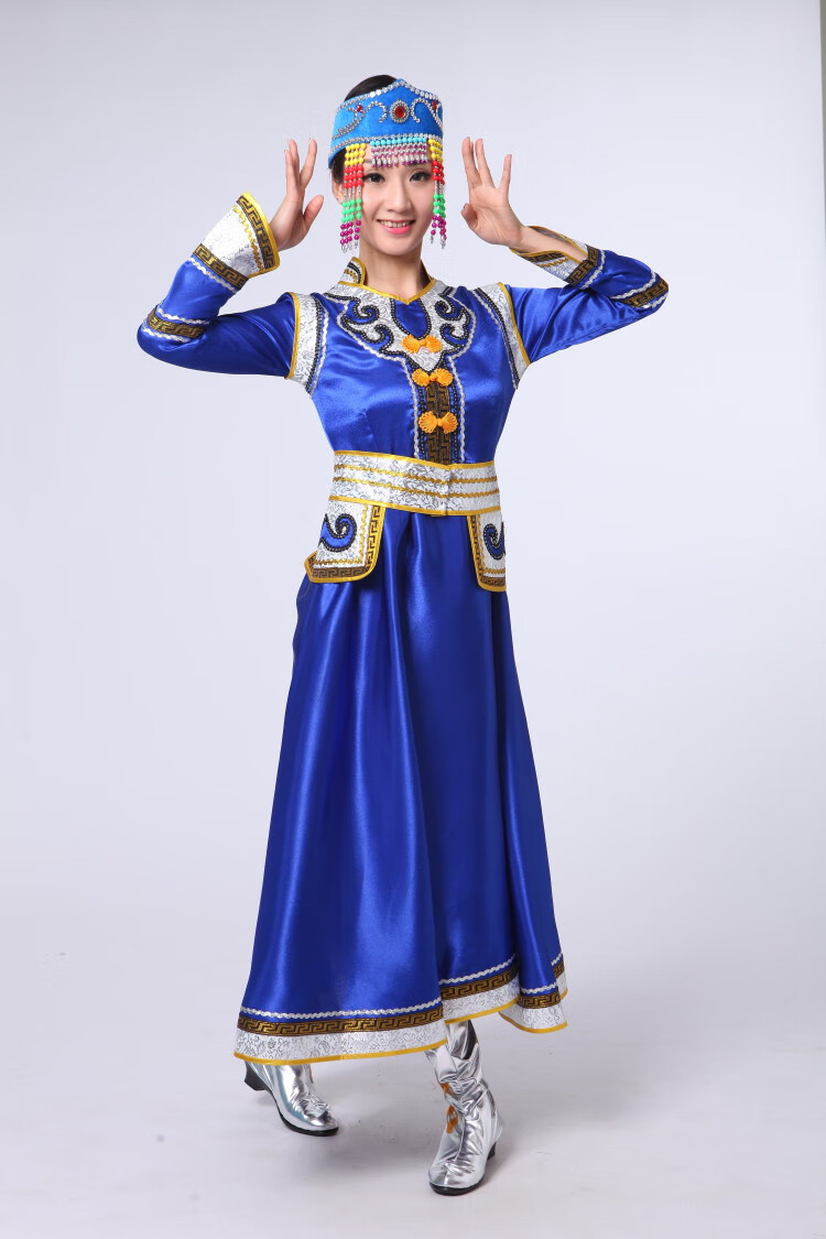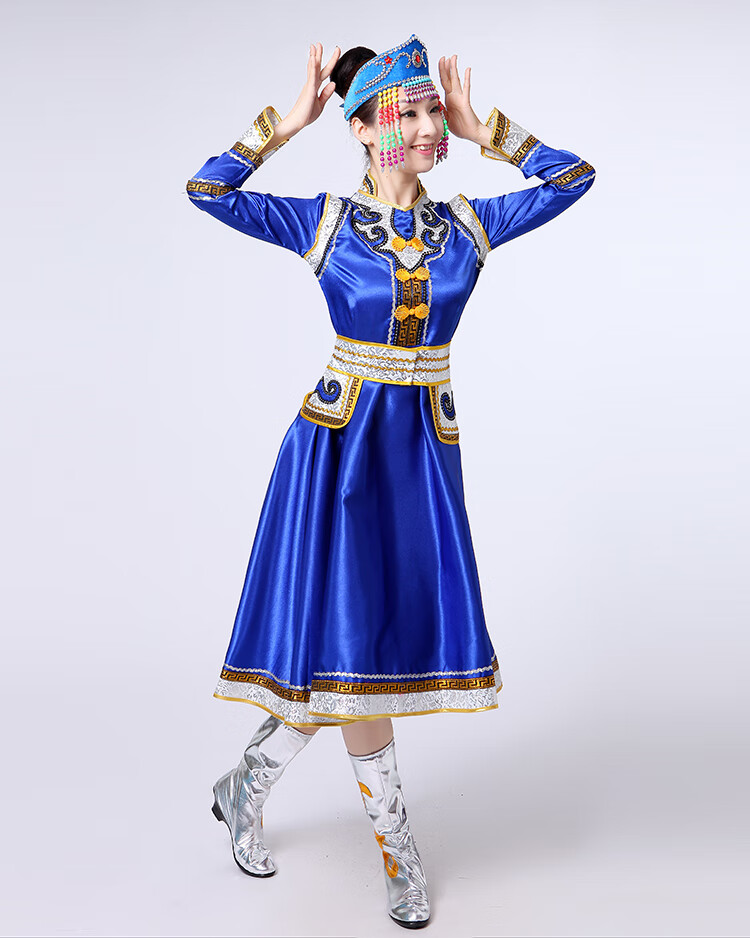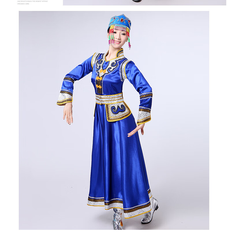 Yinxin Mongolian costume women's performance clothing new ethnic minority Mongolian dance stage performance clothing large swing skirt blue short XL
