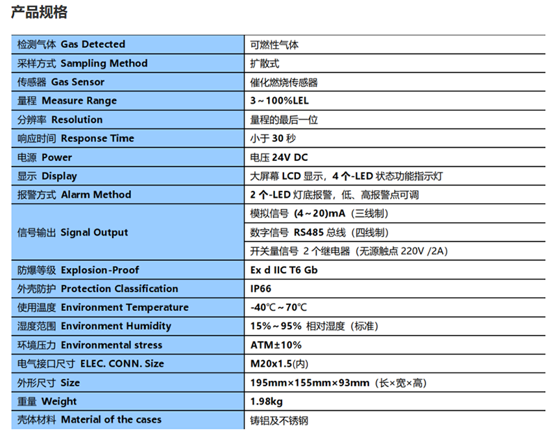 Jihua digital combustible gas detector CGD-I-1EX<unit>