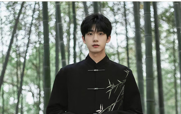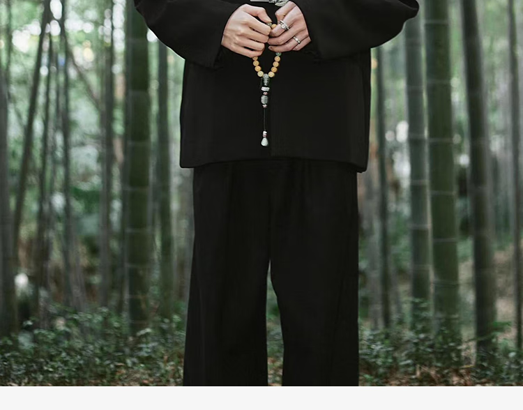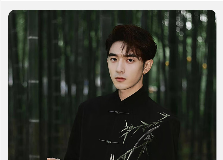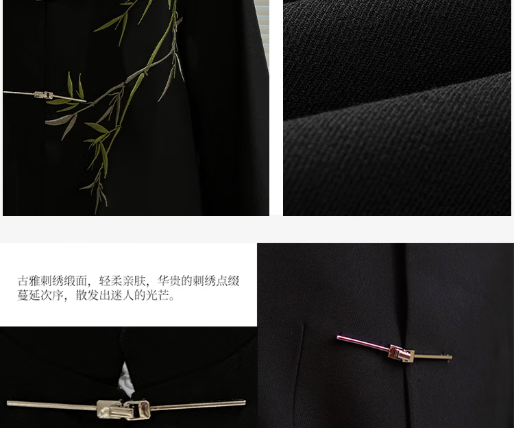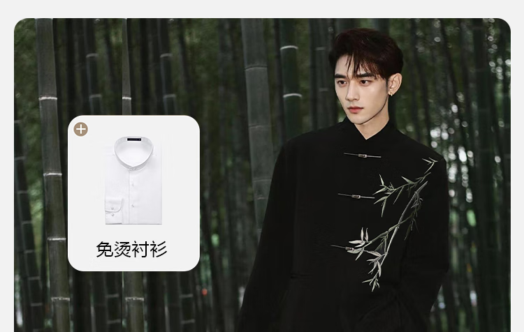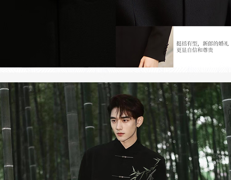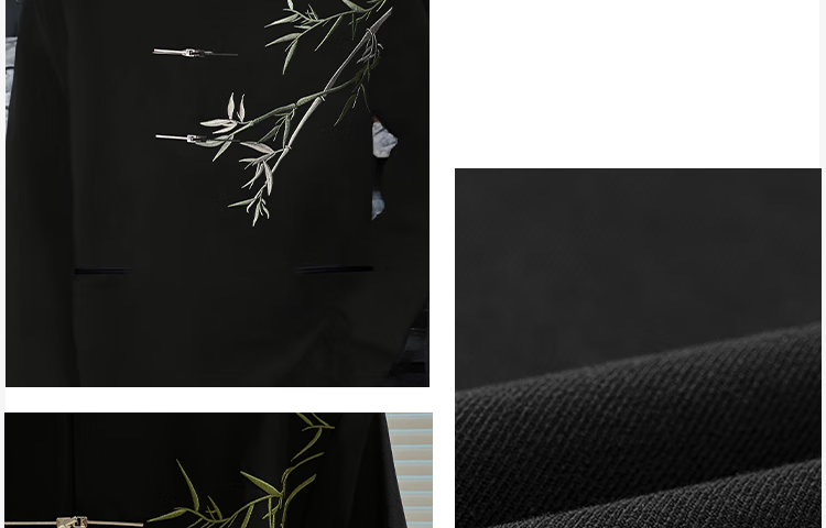 ROMON New Chinese Style Men's Suit Suit Bamboo Aircraft Button Stand Collar Jacket Groom Wedding Embroidered Mao Suit Men Black Embroidery Suit + Pants + Shirt 2XL (Recommended 171-200Jin Jin is equal to 0.5 kg)