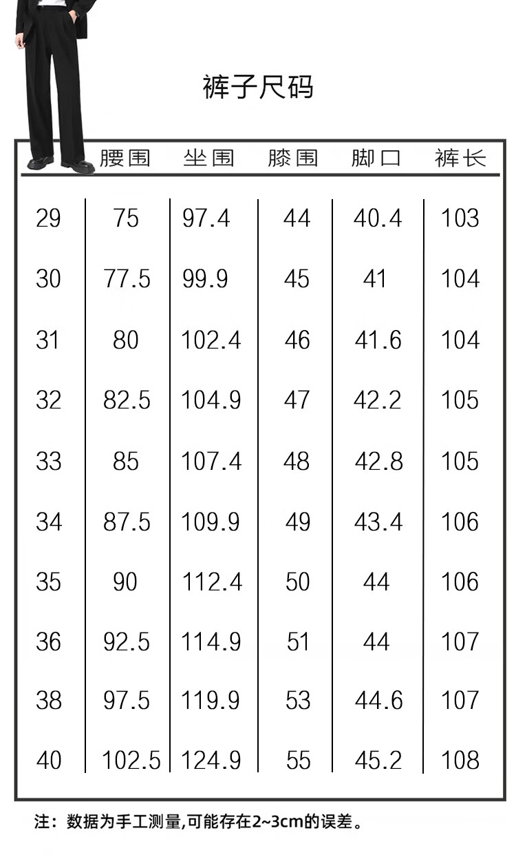 Outseam (cm) 99 cm 101.5 cm 104 cm 106.5 cm 109 cm