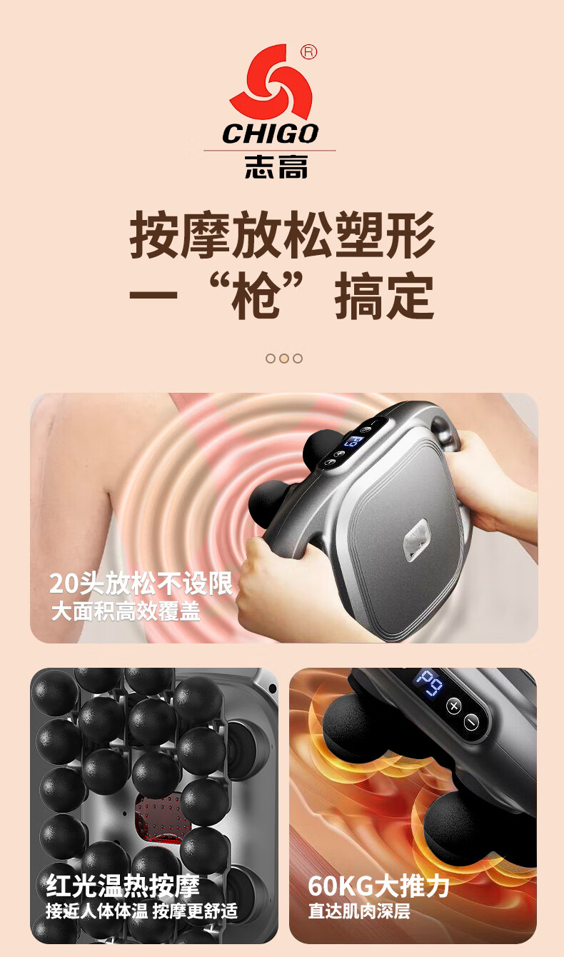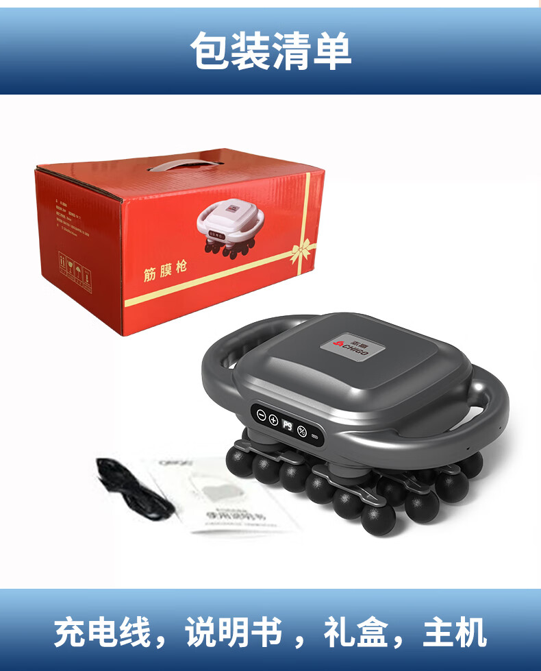 Chigo 24-head fascia gun professional-grade abdominal massager cervical spine, shoulder, neck and waist deep muscle relaxation massager fitness equipment gift box gift box 16-head gift box model - gray