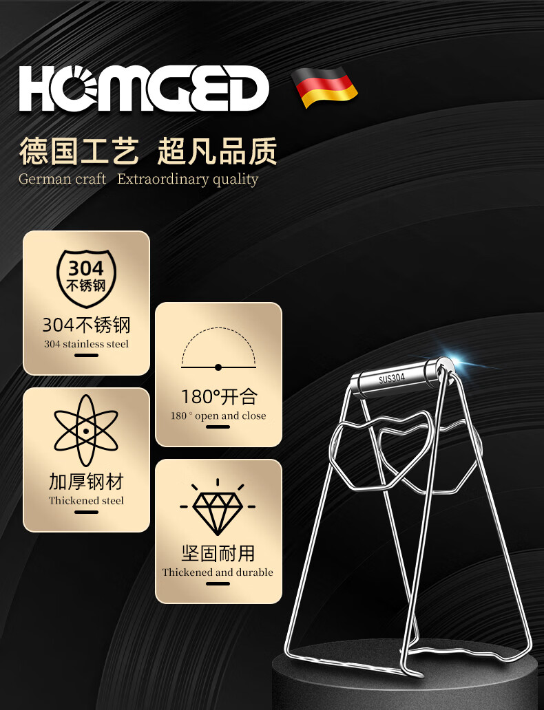 Mengyier 304 stainless steel anti-scald bowl clamp, steamer steamer clamp, plate clamp, kitchen artifact lifting tray, 1 bowl clamp + 304 steel tall steaming rack