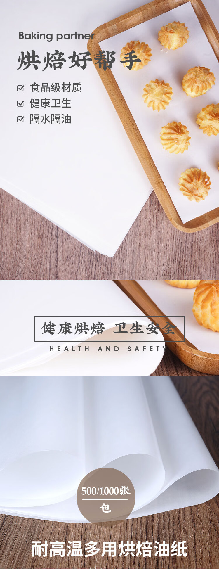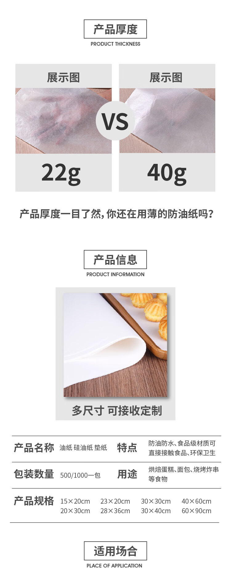 Mengyier (Mengyier) oil paper baking oil-absorbing paper food special commercial kitchen oil-proof grease-proof paper plate paper oven baking paper 42g extra thick baking paper 40*60 cm 500 sheets