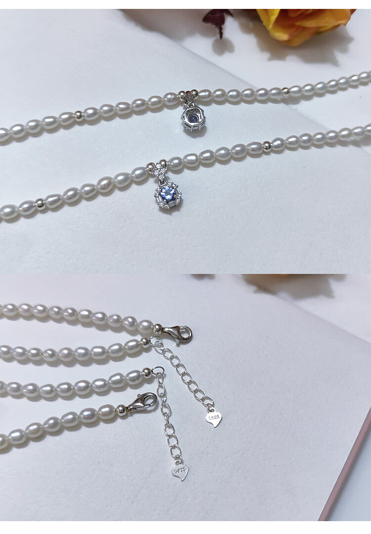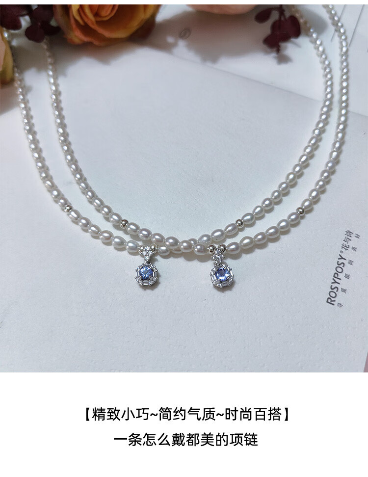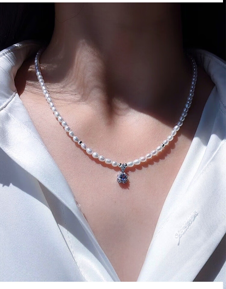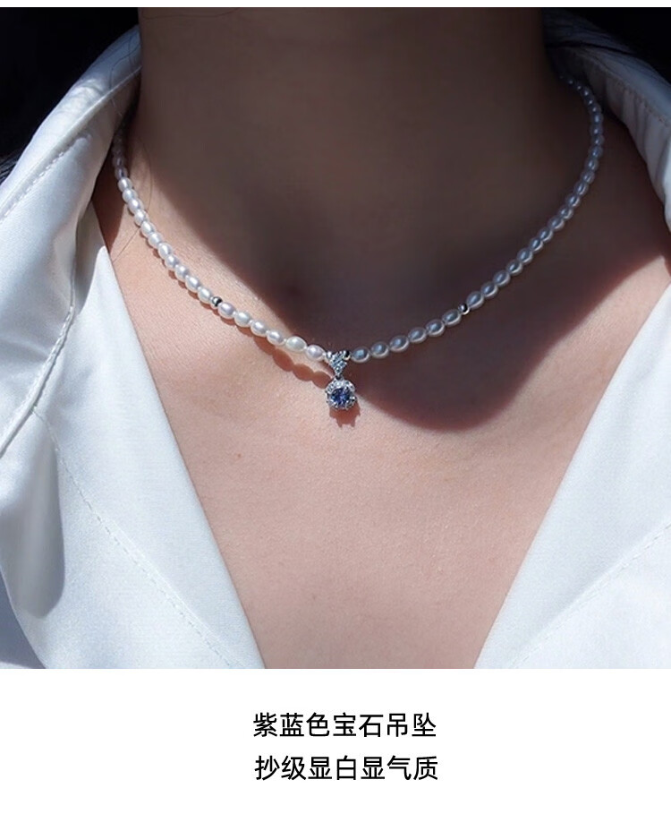 Li Shen's French style tanzanite necklace for women, light luxury niche, non-fading, exquisite natural freshwater rice pearl clavicle chain, tanzanite purple sapphire necklace 40+3 cm extension chain