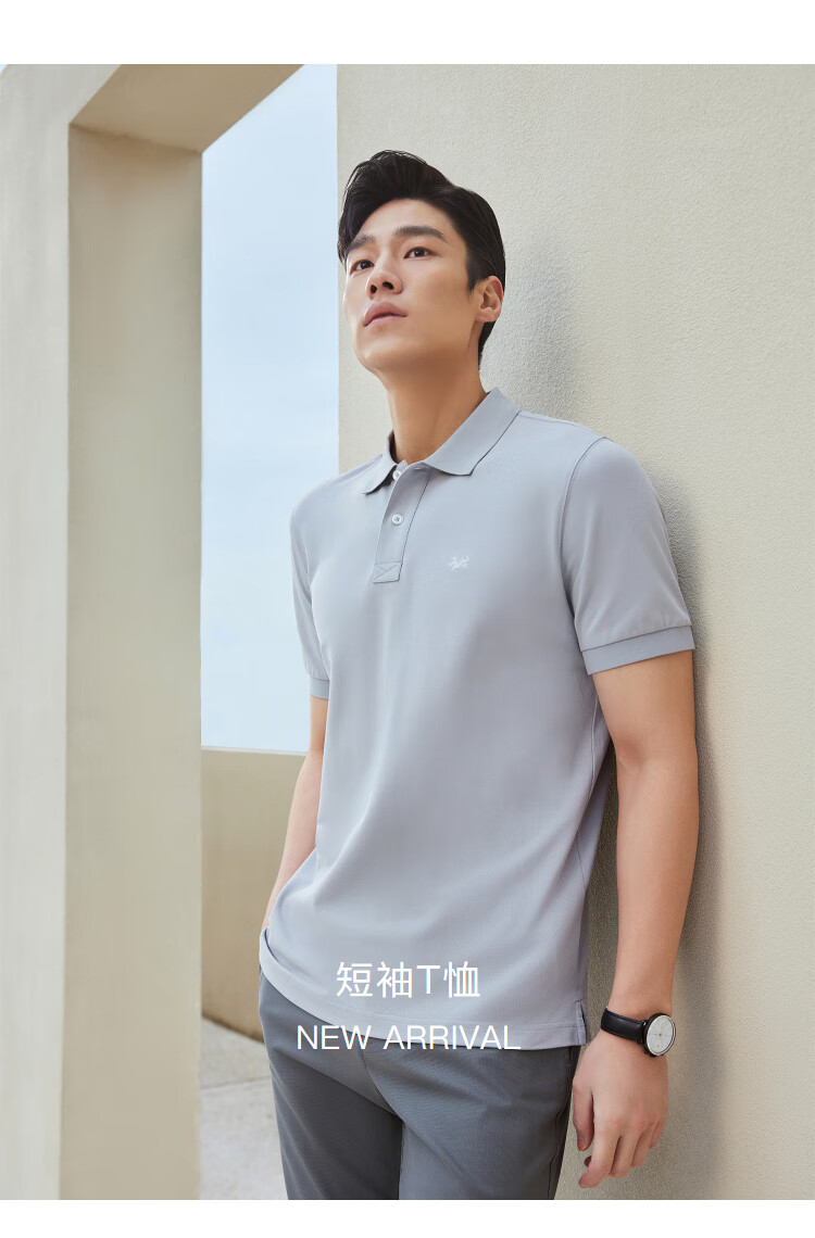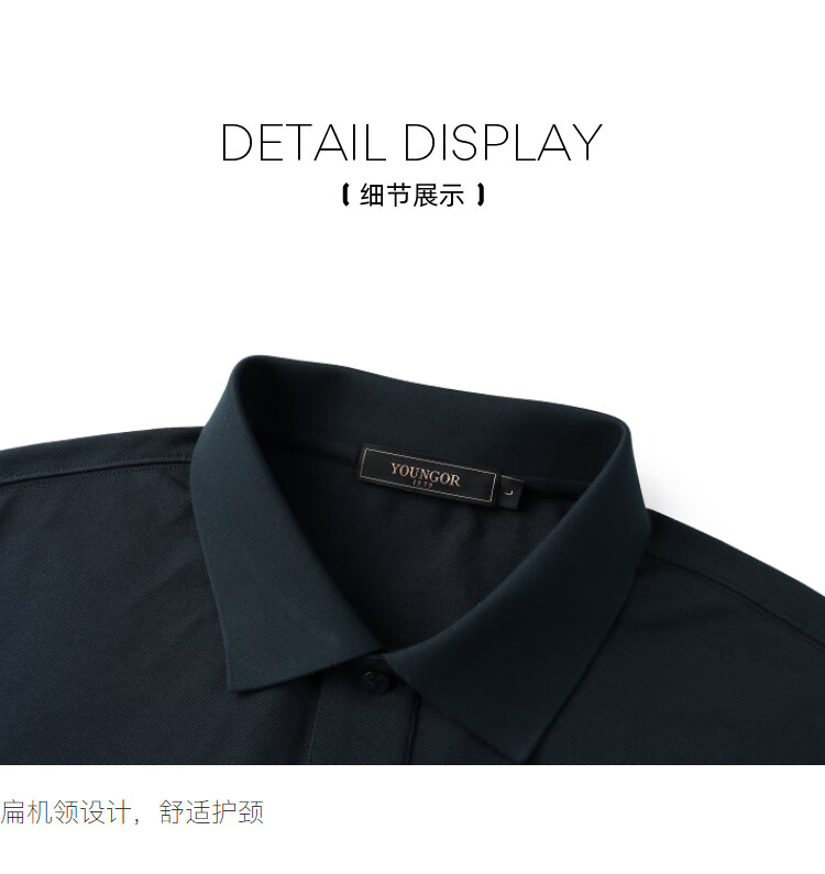 YOUNGOR short-sleeved POLO shirt for men with lapel cotton elastic fabric breathing cotton moisture-absorbent and breathable collar with good shape retention VSPC533011EFA Gray XL