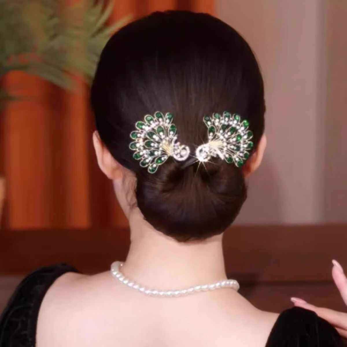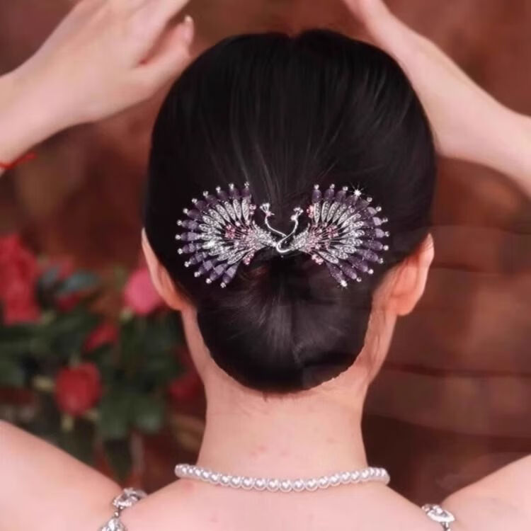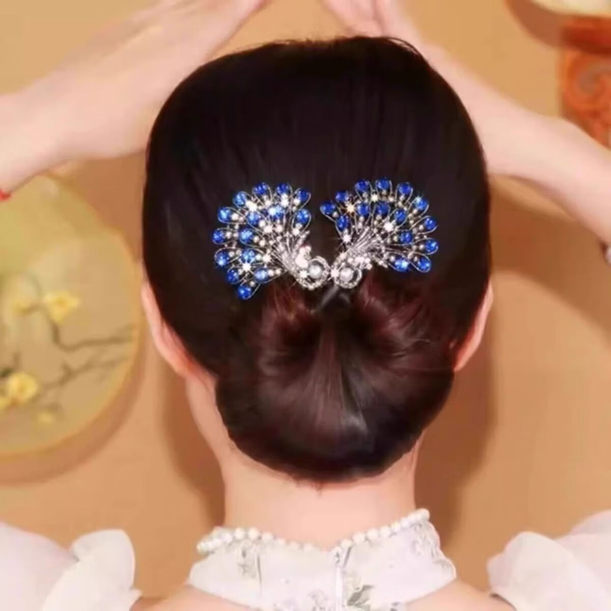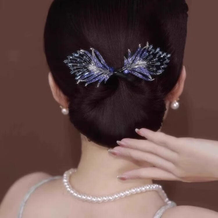 Retro hair twist clip on the back of the head, women's high-end hair ball hair fixing artifact hair clip, ball hair accessory, blue feather hair twist clip