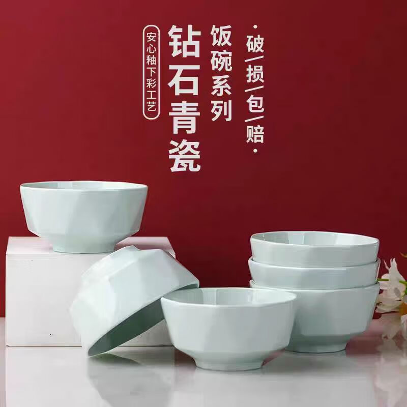 Household tableware minimalist underglaze color celadon solid color bowl 4.5 inch diamond bowl 4 pack