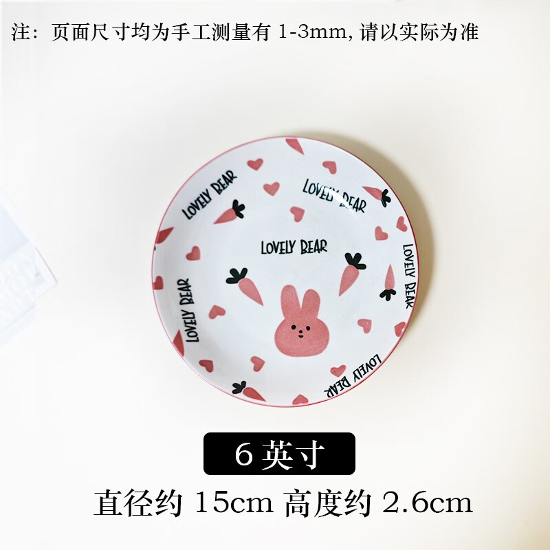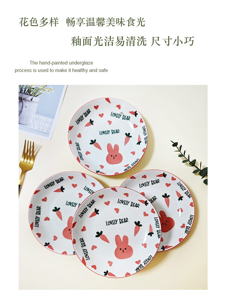 Household tableware underglaze color strawberry serving plate cute radish rabbit 6.25-inch ceramic high-value plate design and color 1 pack