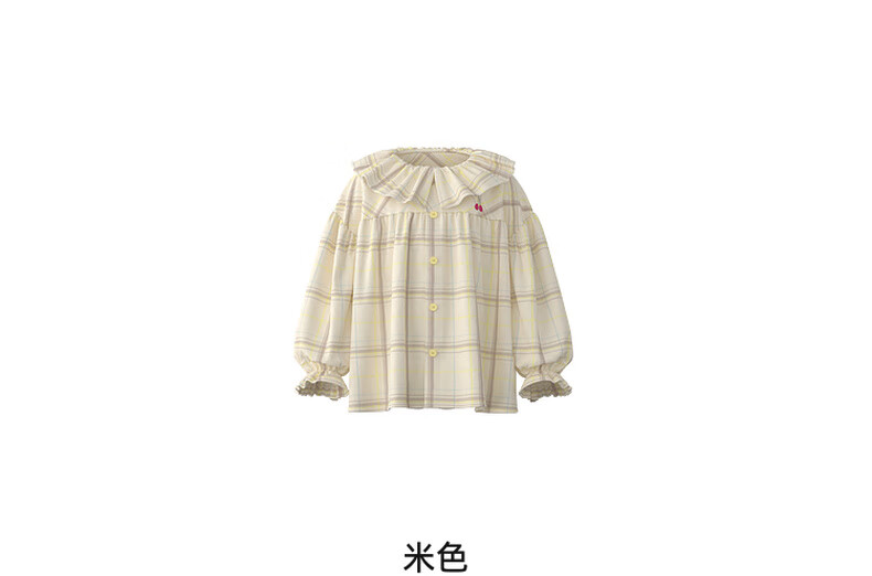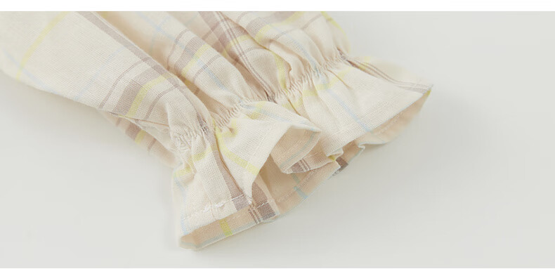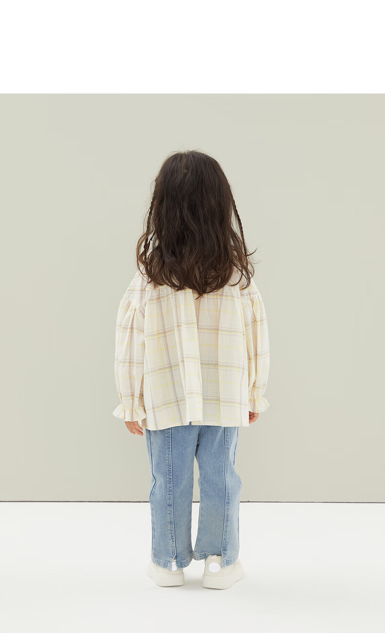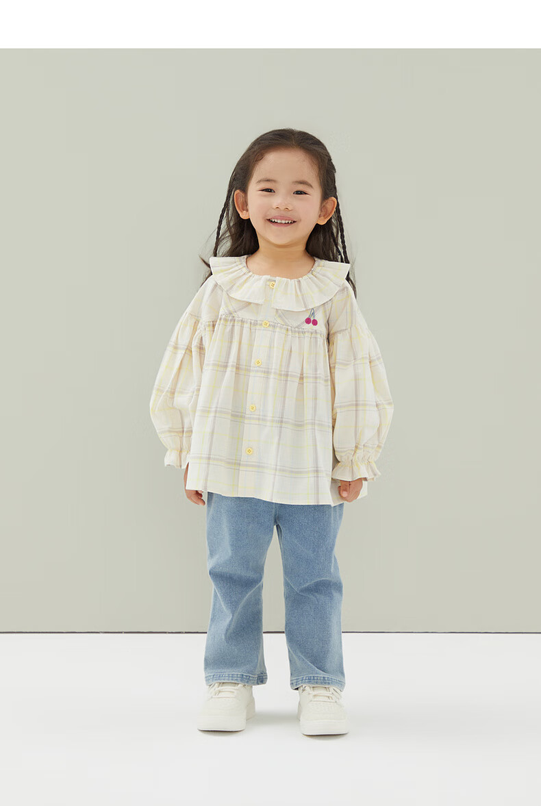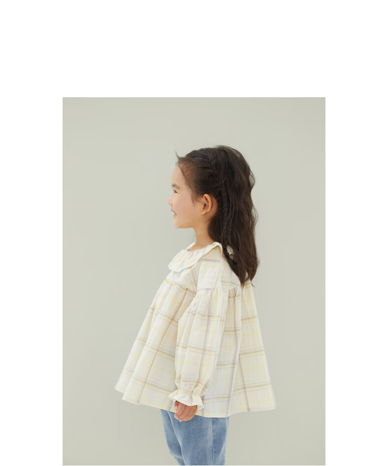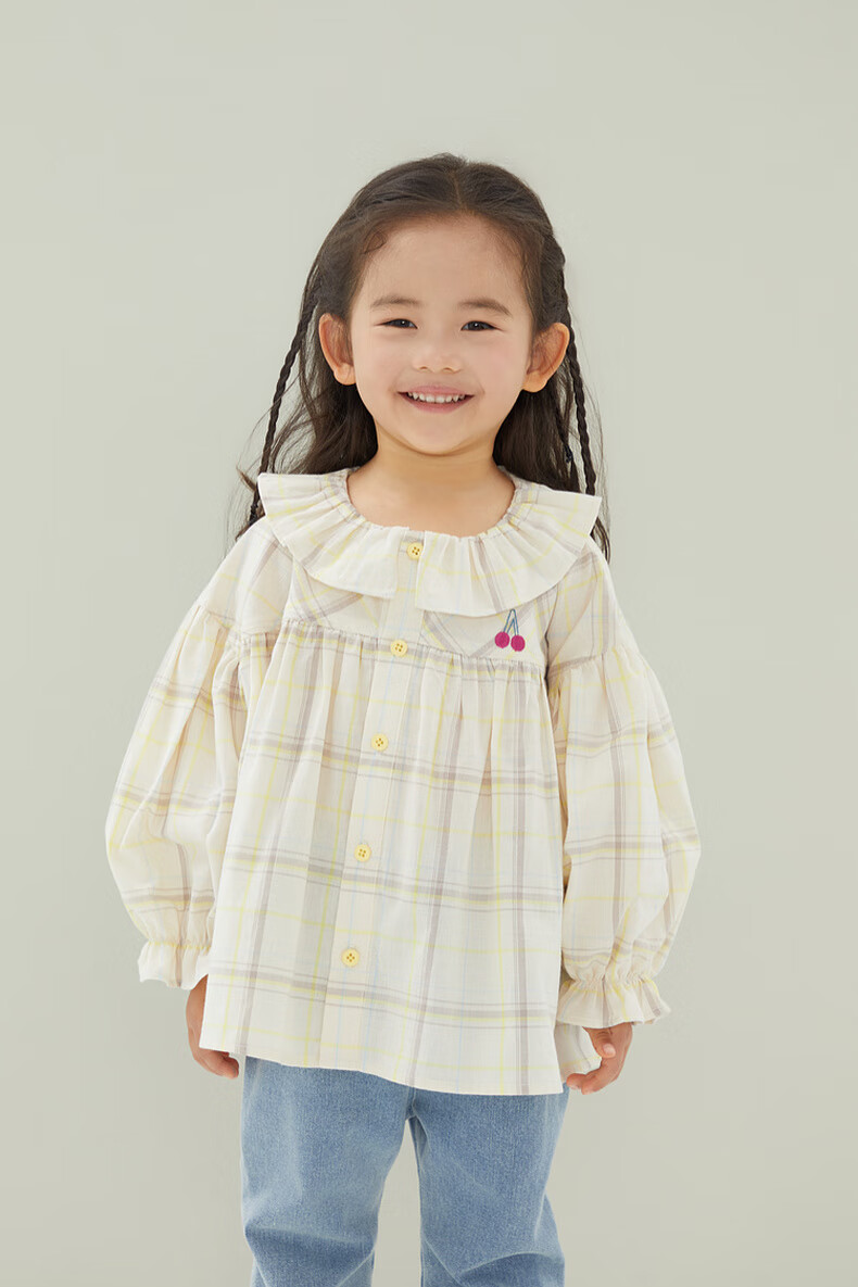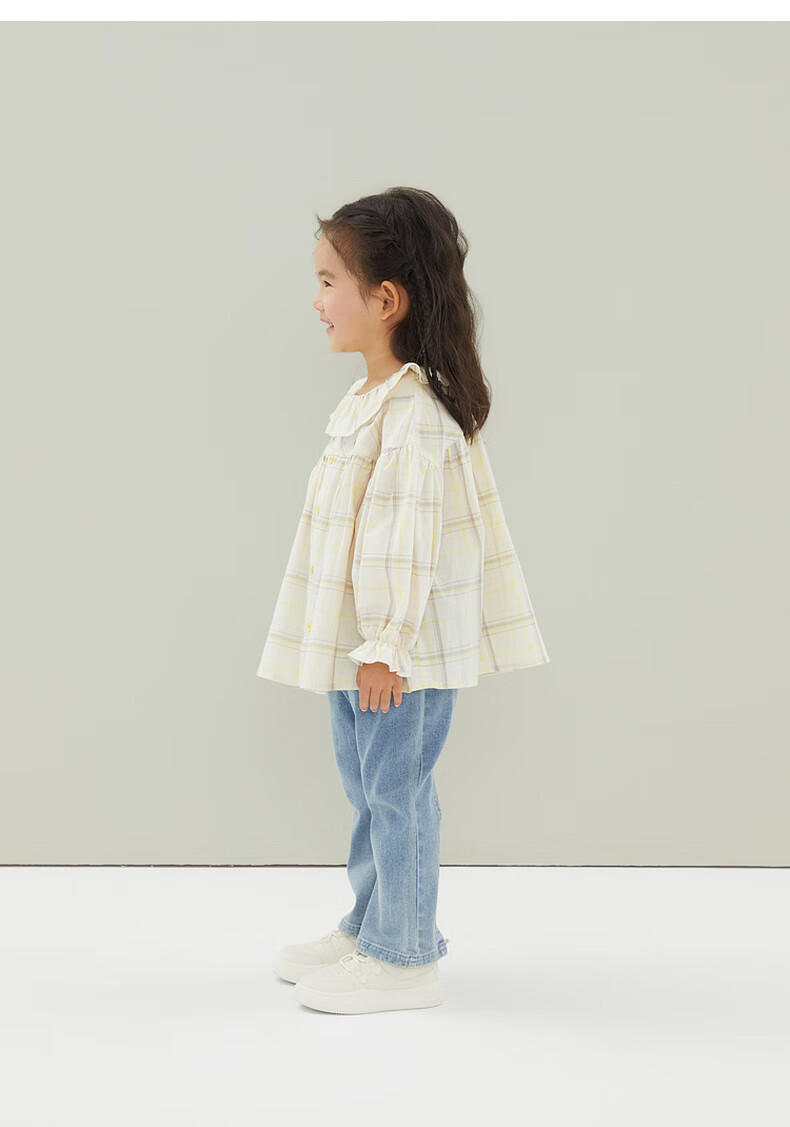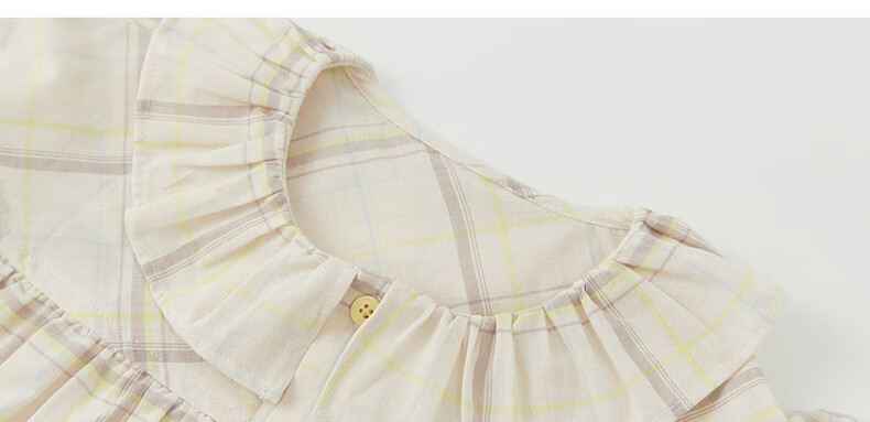 Papa crawling spring children's shirt girls ruffle collar plaid long-sleeved top sweet and cute beige 100 cm