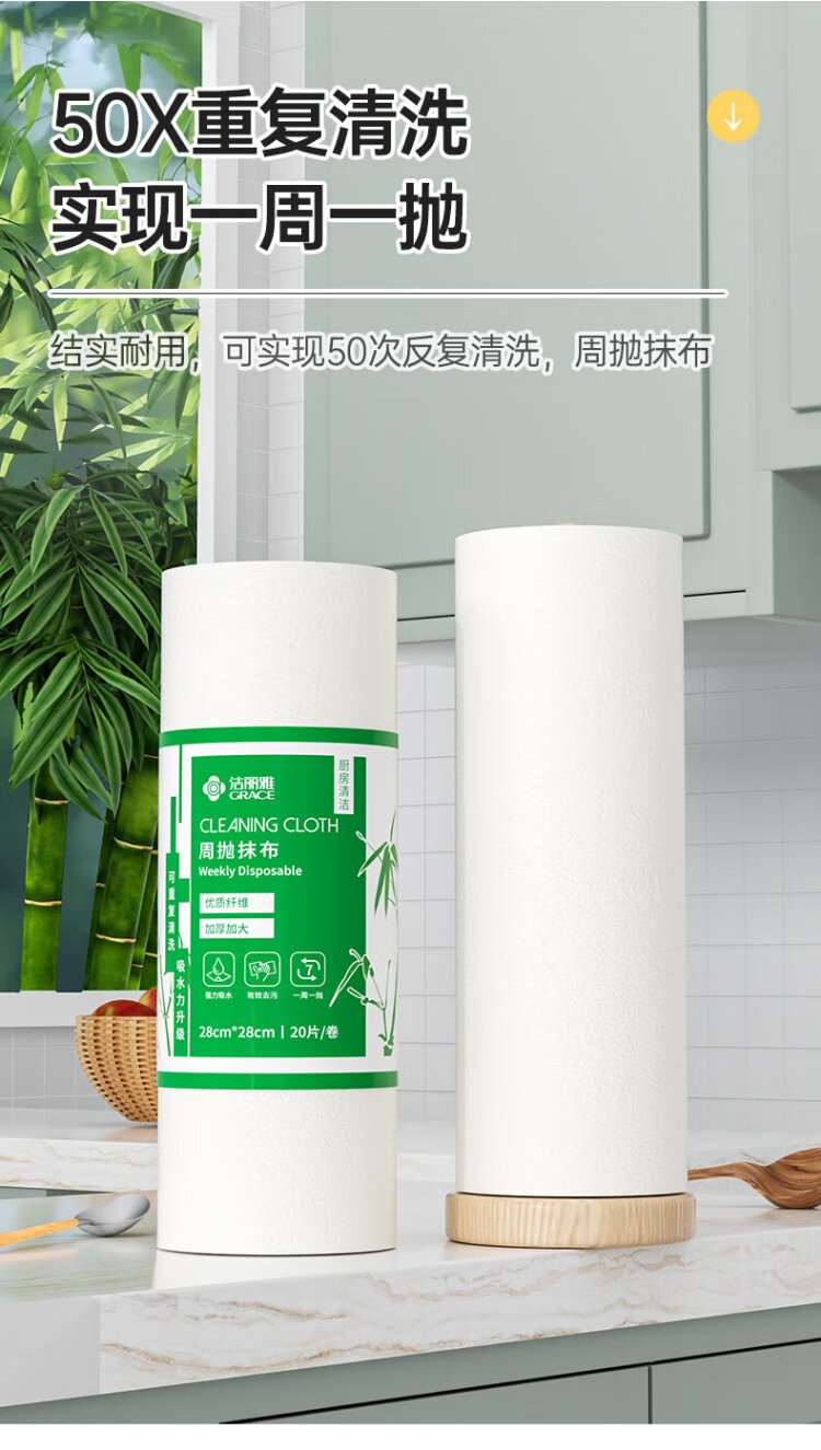 Jieliya Kitchen Lazy Rag Disposable Weekly Disposable Rag Thickened Dishwashing Towel Kitchen Supplies Cleaning Goods 50 Pieces/Roll Disposable Rag 25*25cm