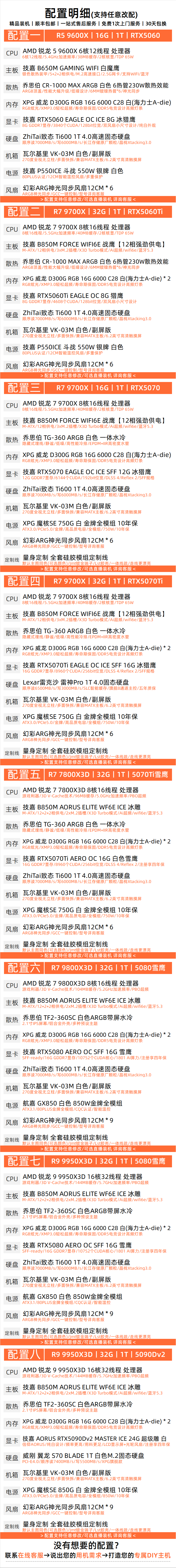 GIGABYTE RTX5070Ti/5080/5090D Snow Eagle/AMD Ryzen 7 9800X3D/9700X e-sports network game water-cooled white sea view room secondary screen desktop computer host 2 Ryzen 7 9700X丨RTX5060Ti